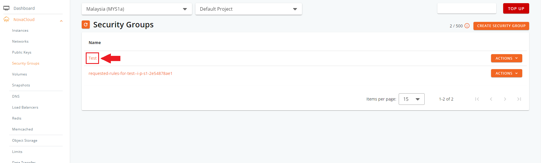 - To verify if the security group if the security group is applied From Dashboard, click on NovaCloud and click dropdown to Instances. Select the region your instances are located. Proceed to click on Instances Name.