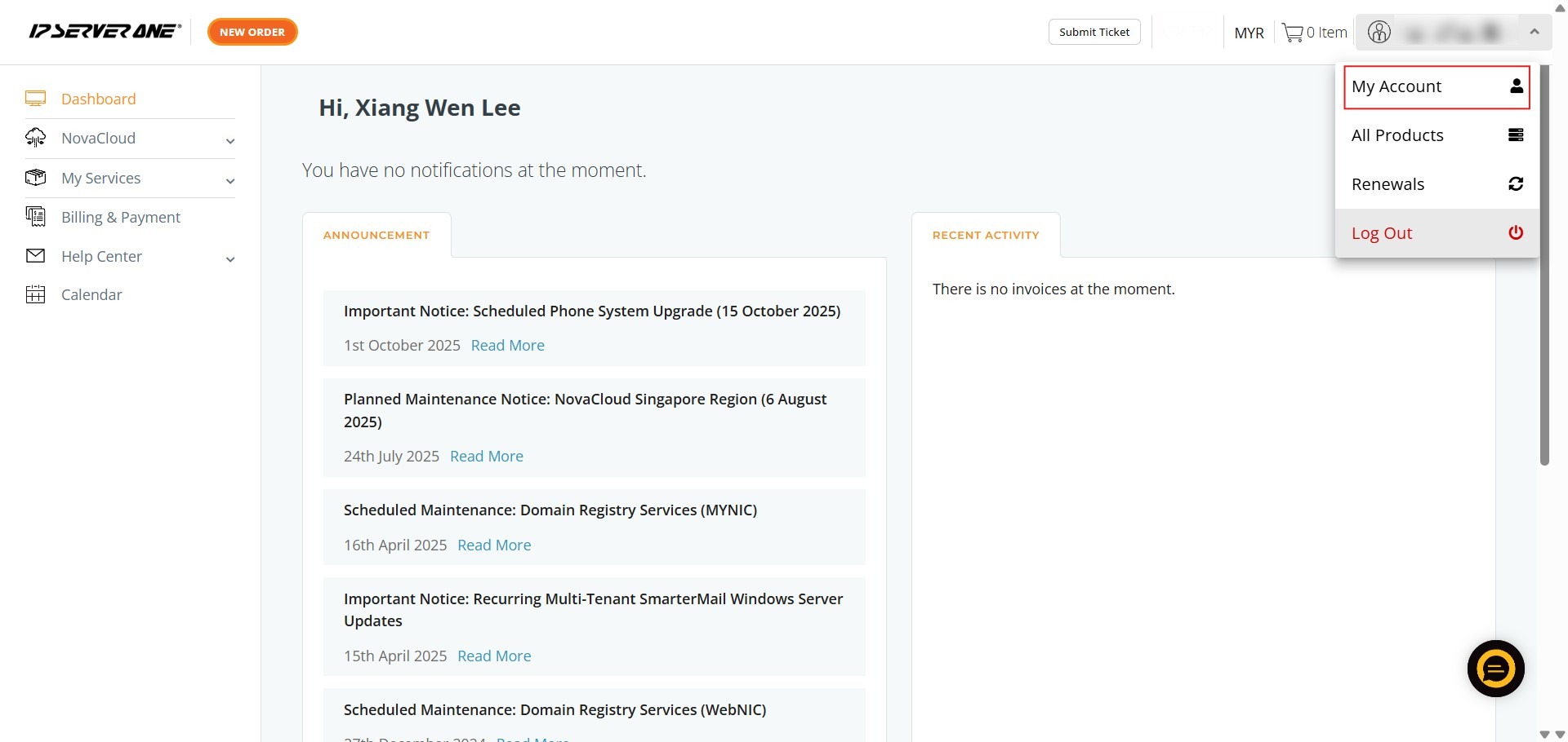 - A success message will appear; the IP ServerOne team will also send a confirmation email to your registered address.