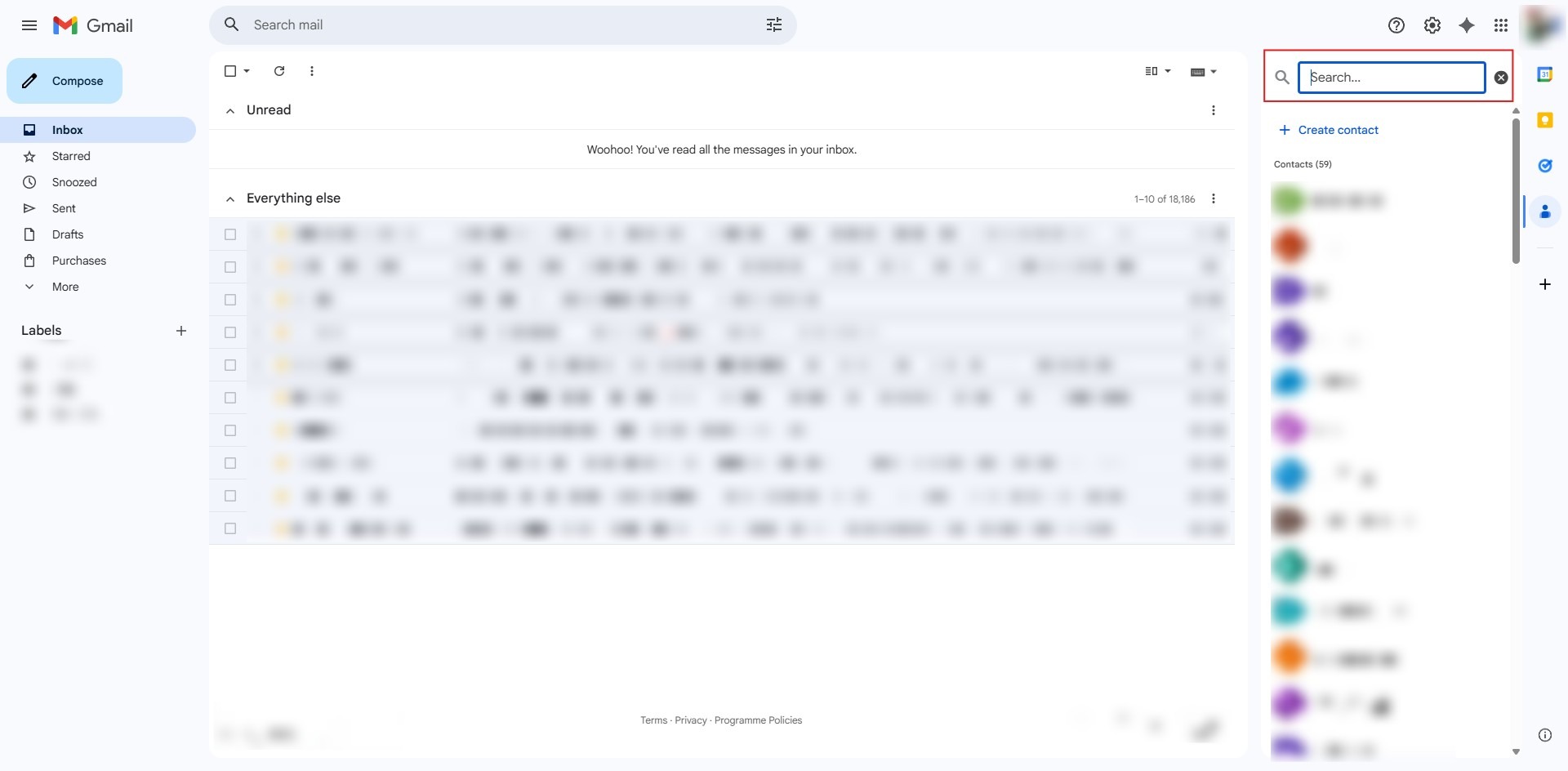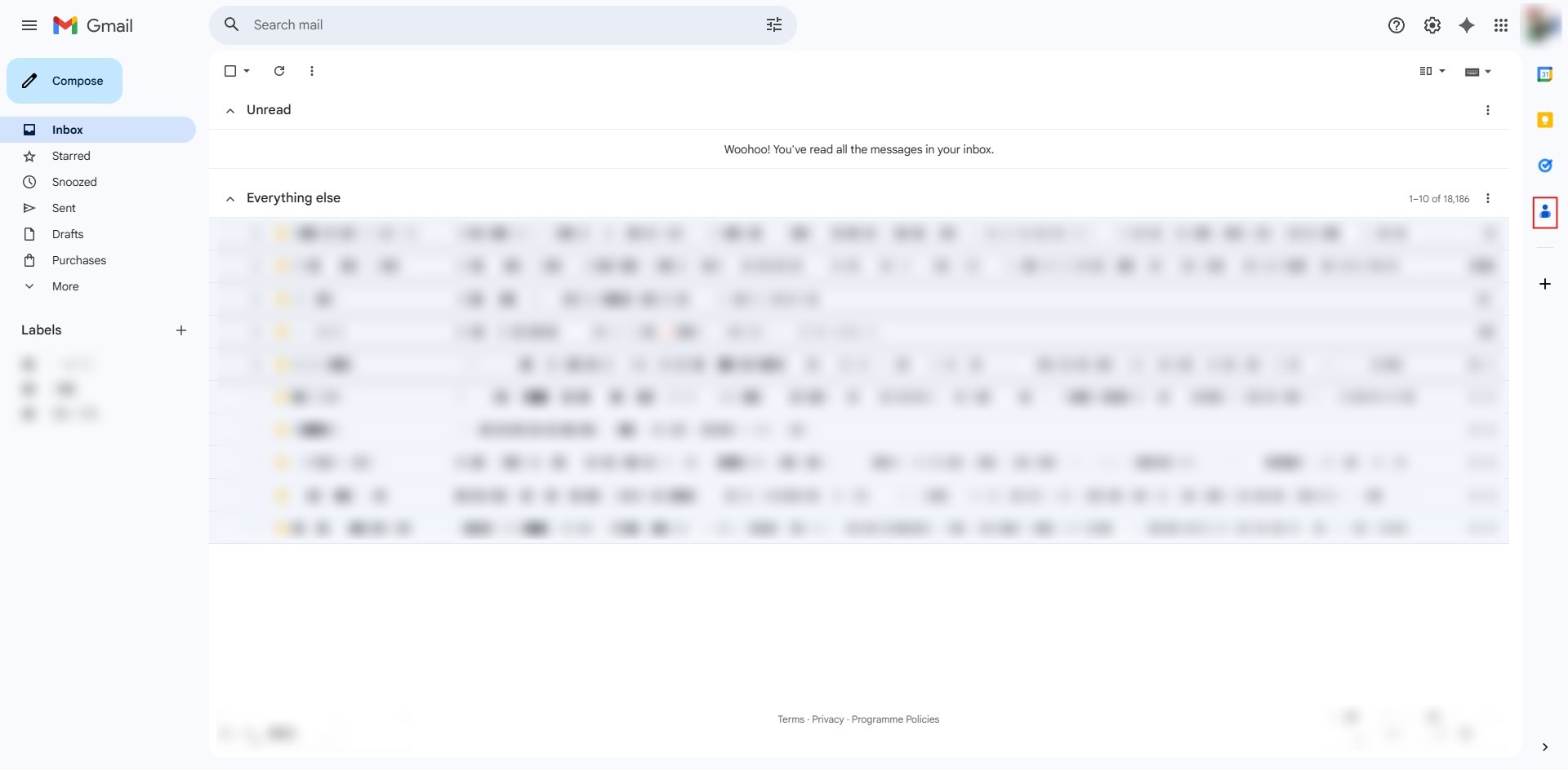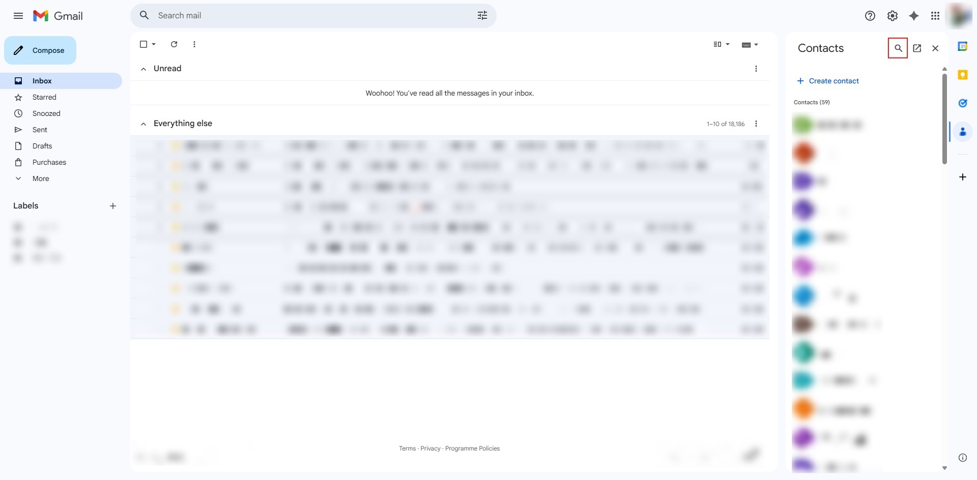 - From your Gmail inbox, locate and select the Contacts icon in the right-side panel.