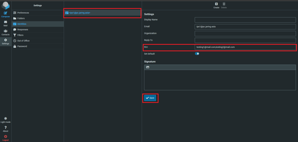 - Choose which profile you want to add the BCC. Once chosen, go to Bcc than add the email, If got multiple emails, use comma to separate those emails. Once done click on the Save.