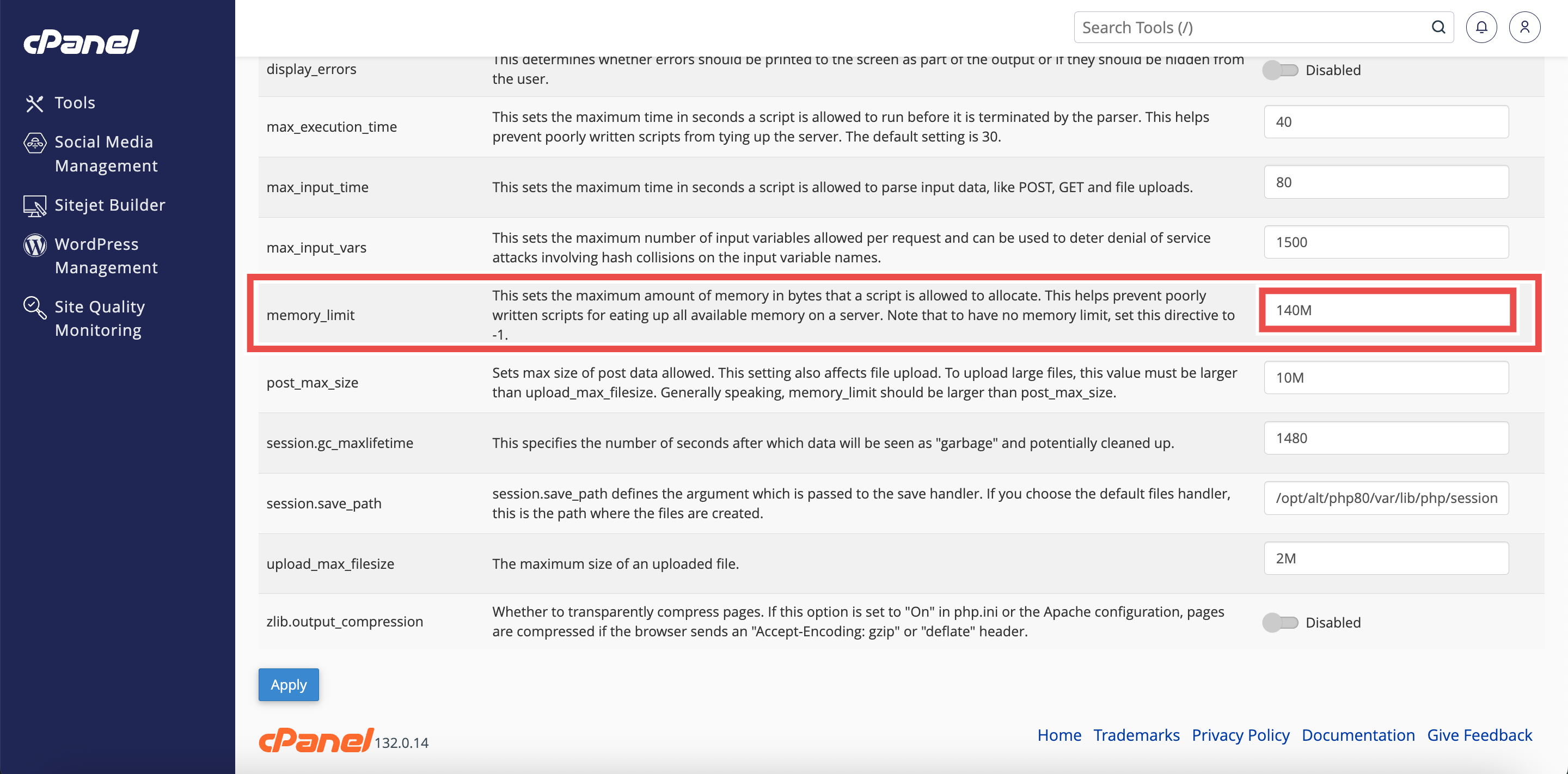 How to Adjust PHP Memory Limit for a Specific Website using MultiPHP INI Editor in cPanel