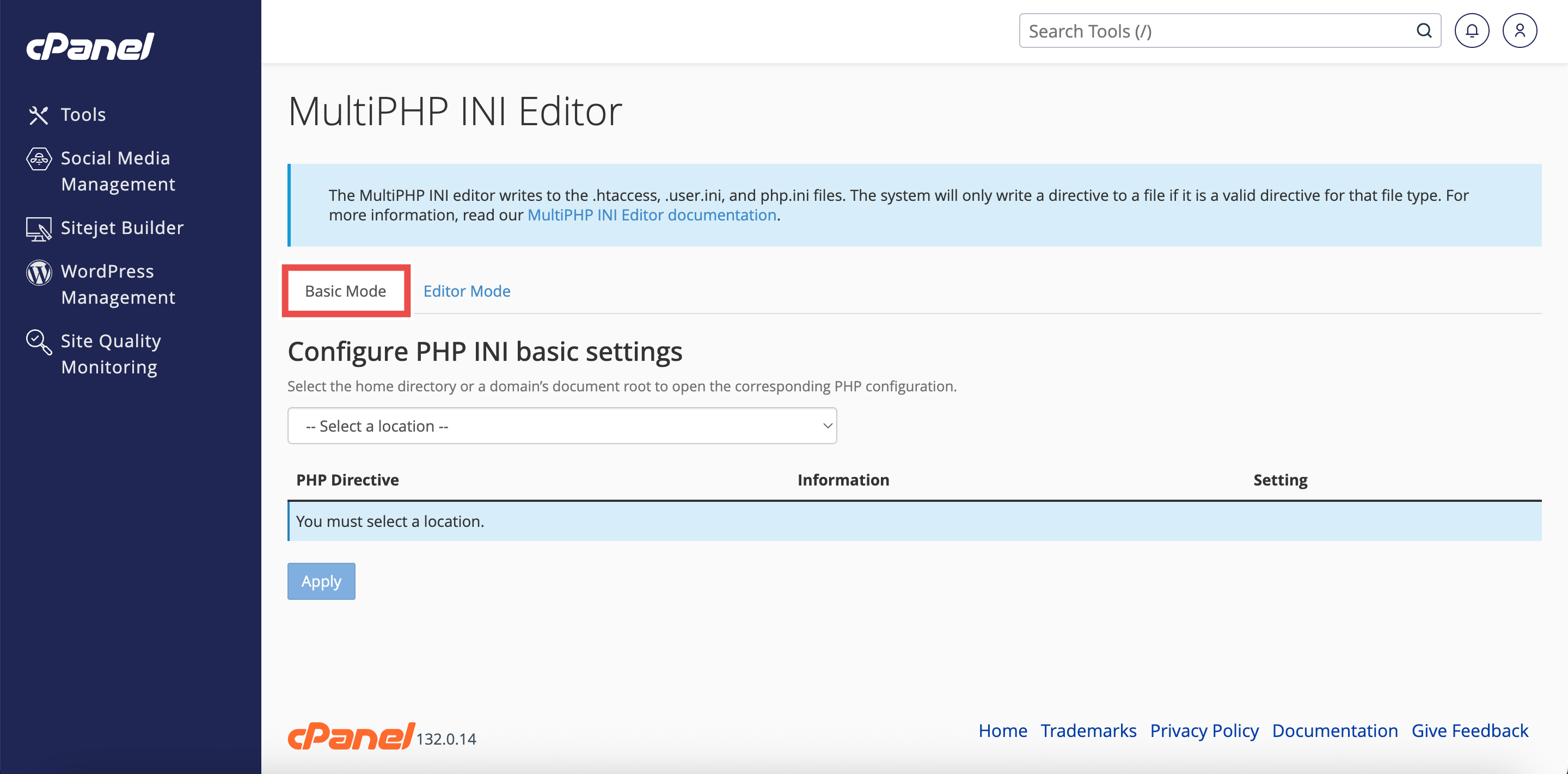 - In the Home page, under Software, click MultiPHP INI Editor.