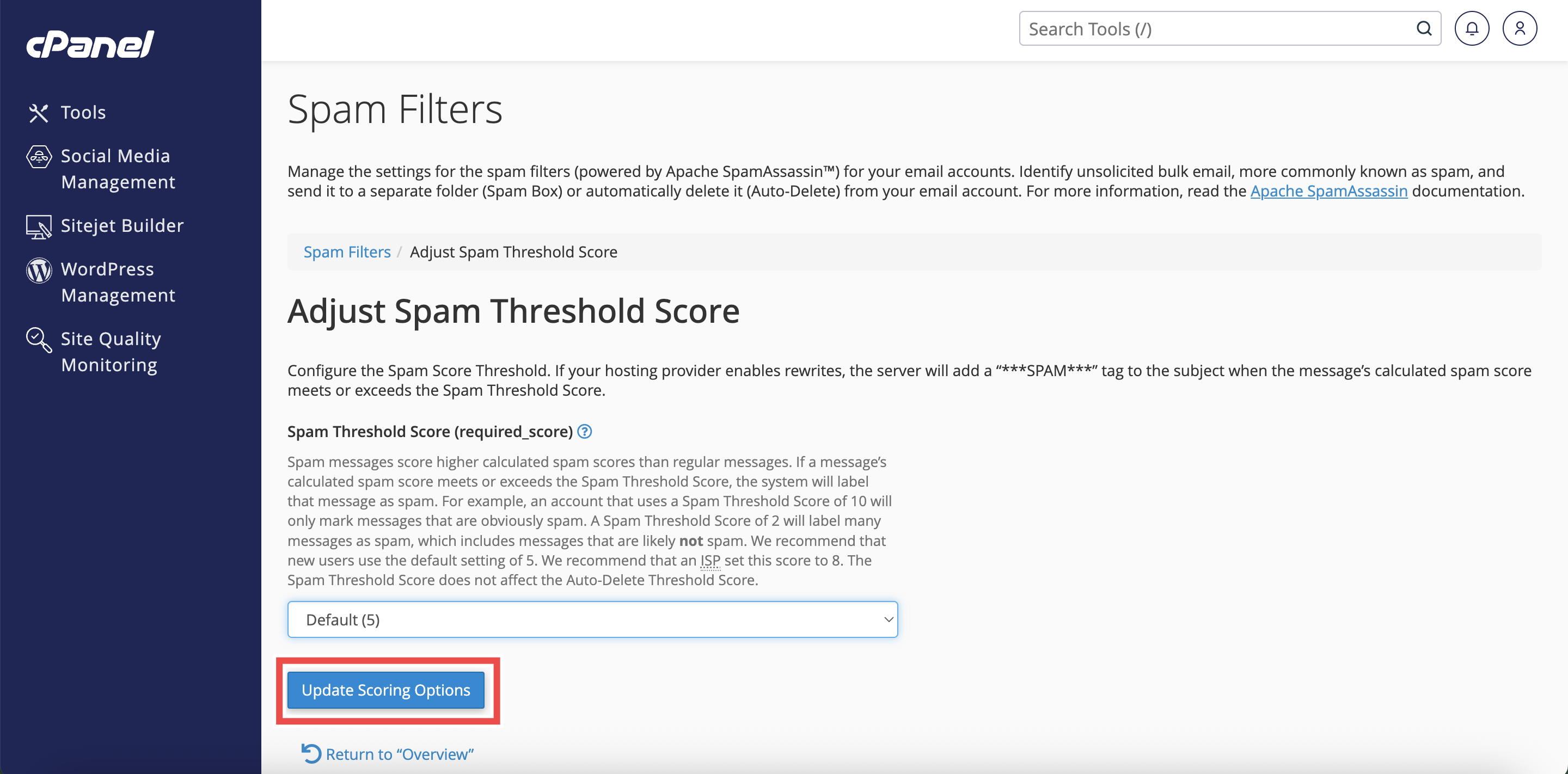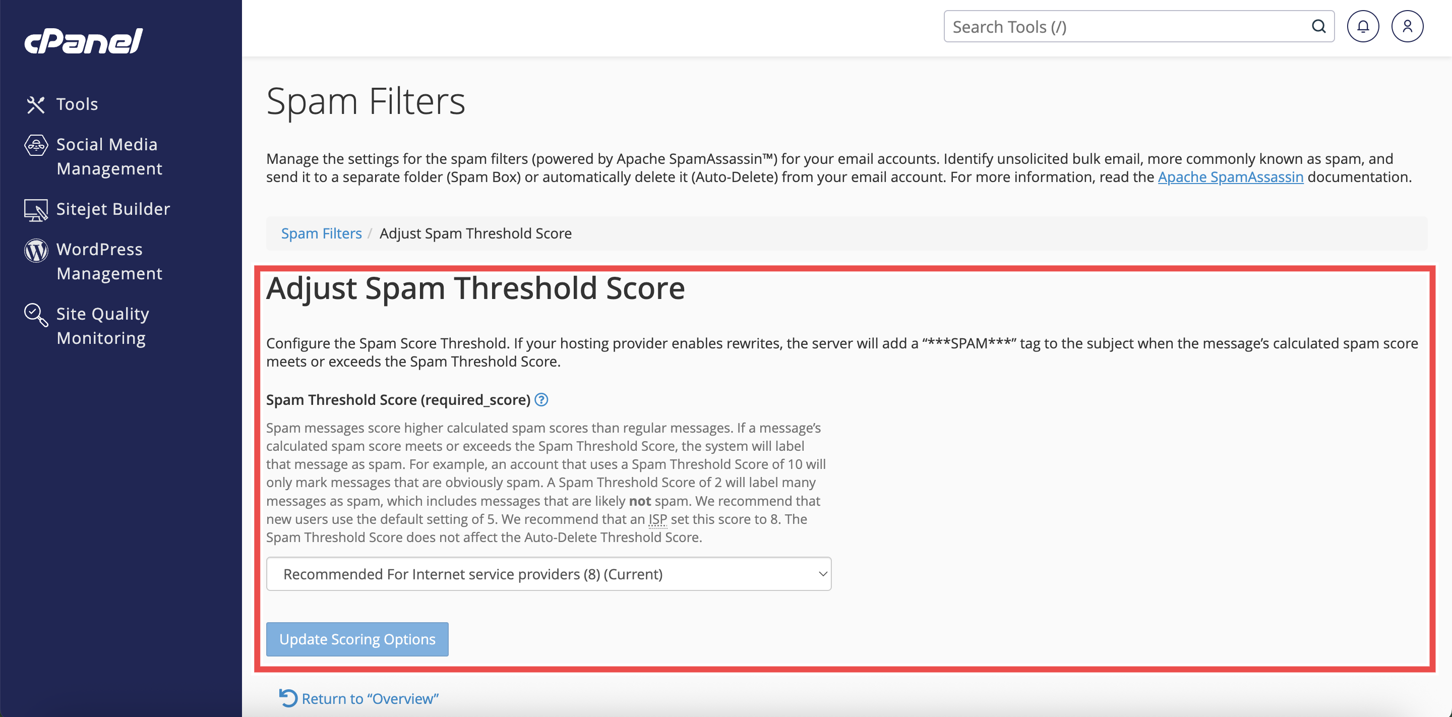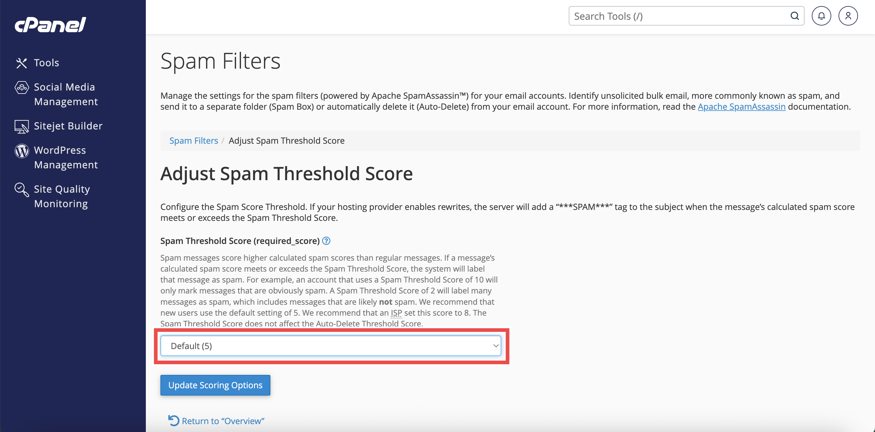 How to Adjust Spam Threshold Score using Spam Filters in cPanel