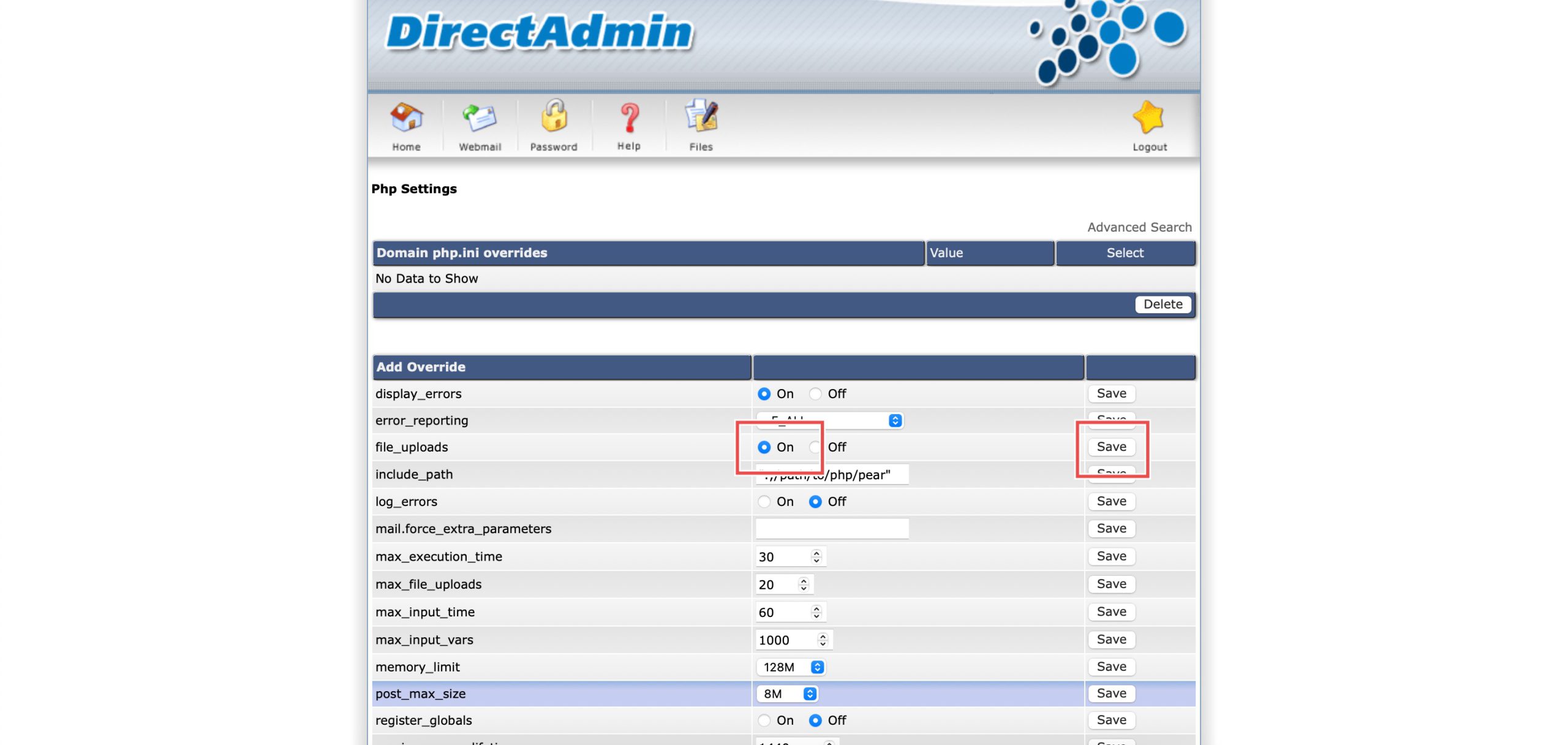 How to Allow File Uploads by PHP Scripts in DirectAdmin (Enhanced Skin)