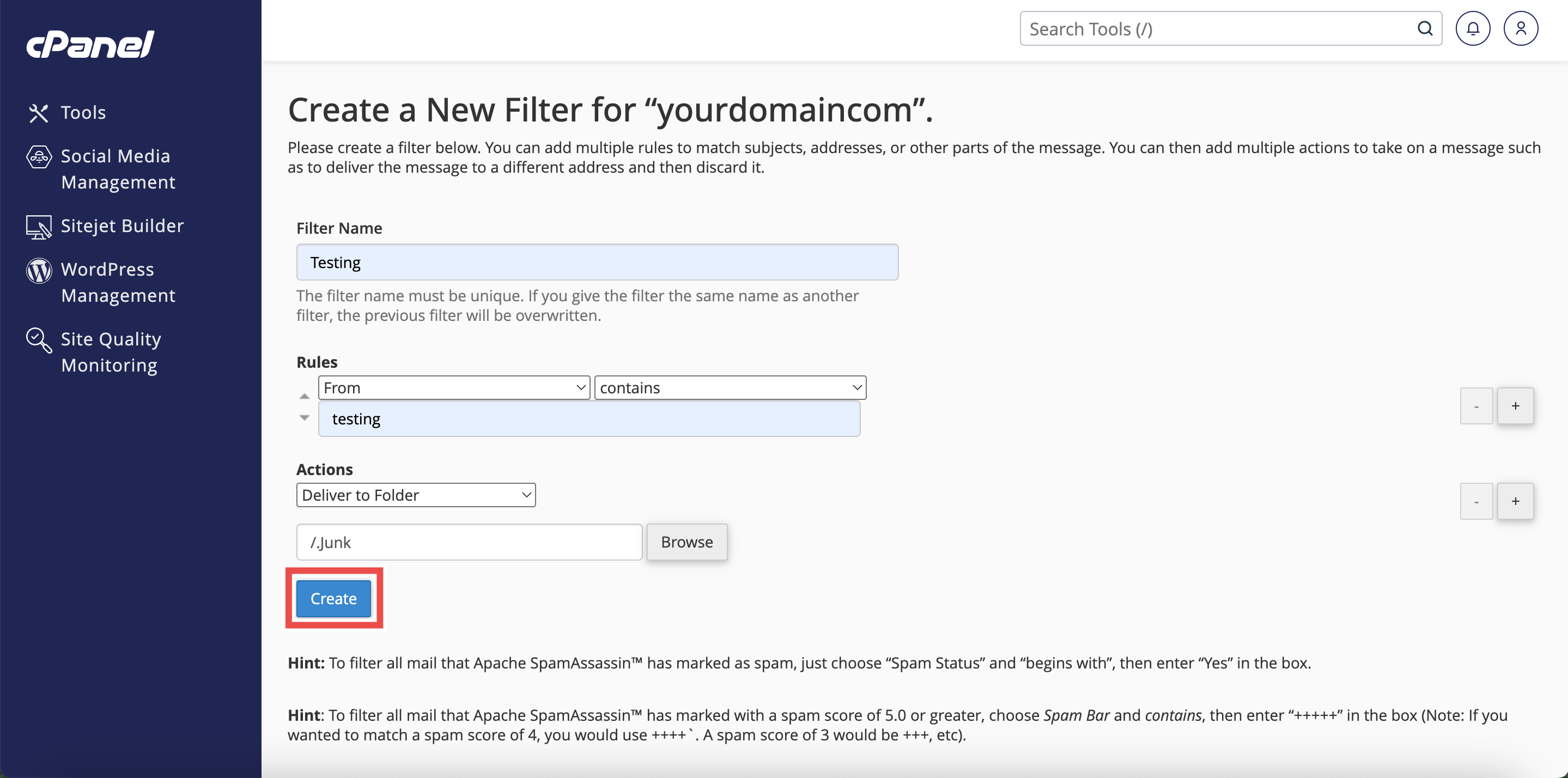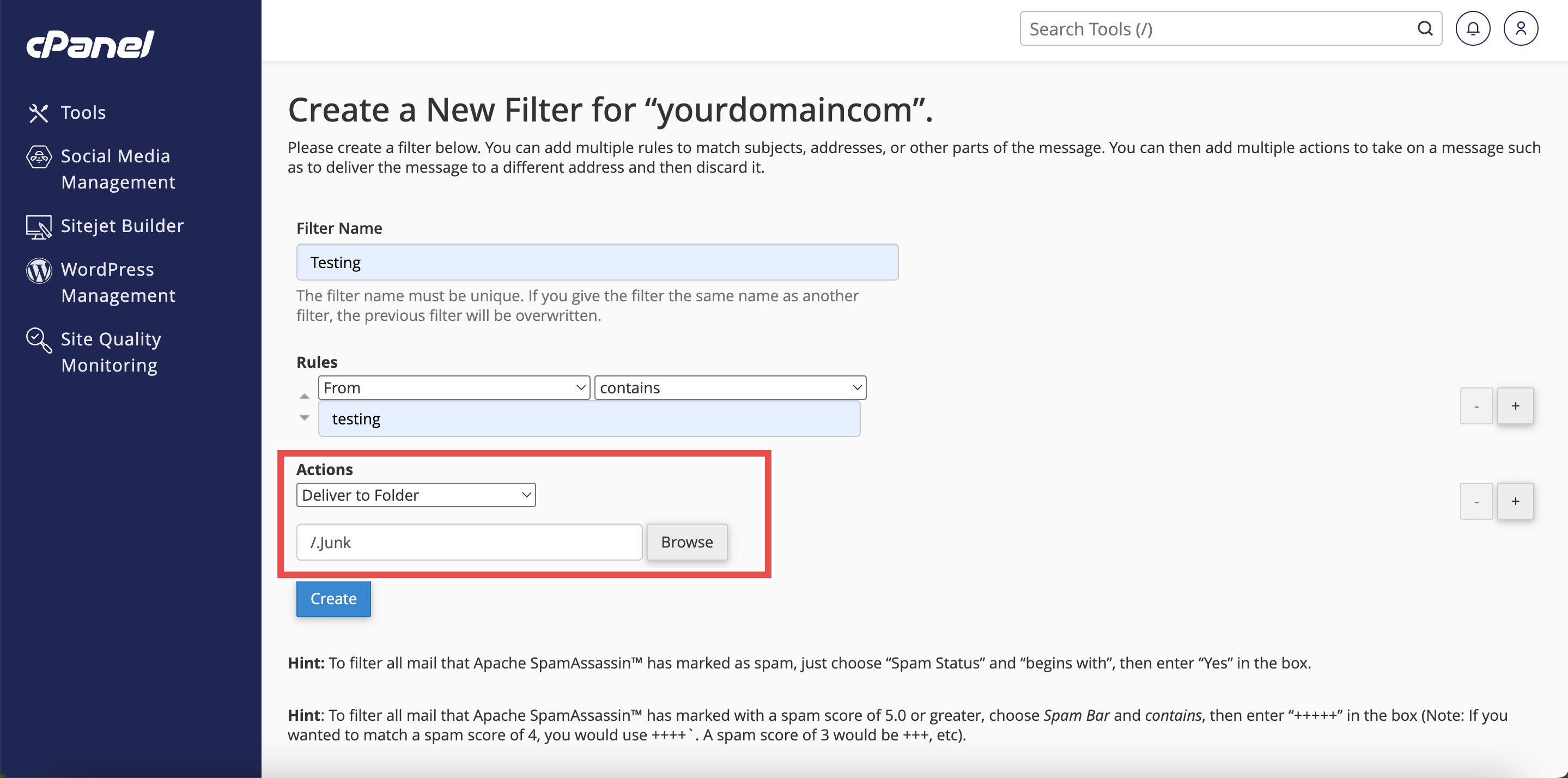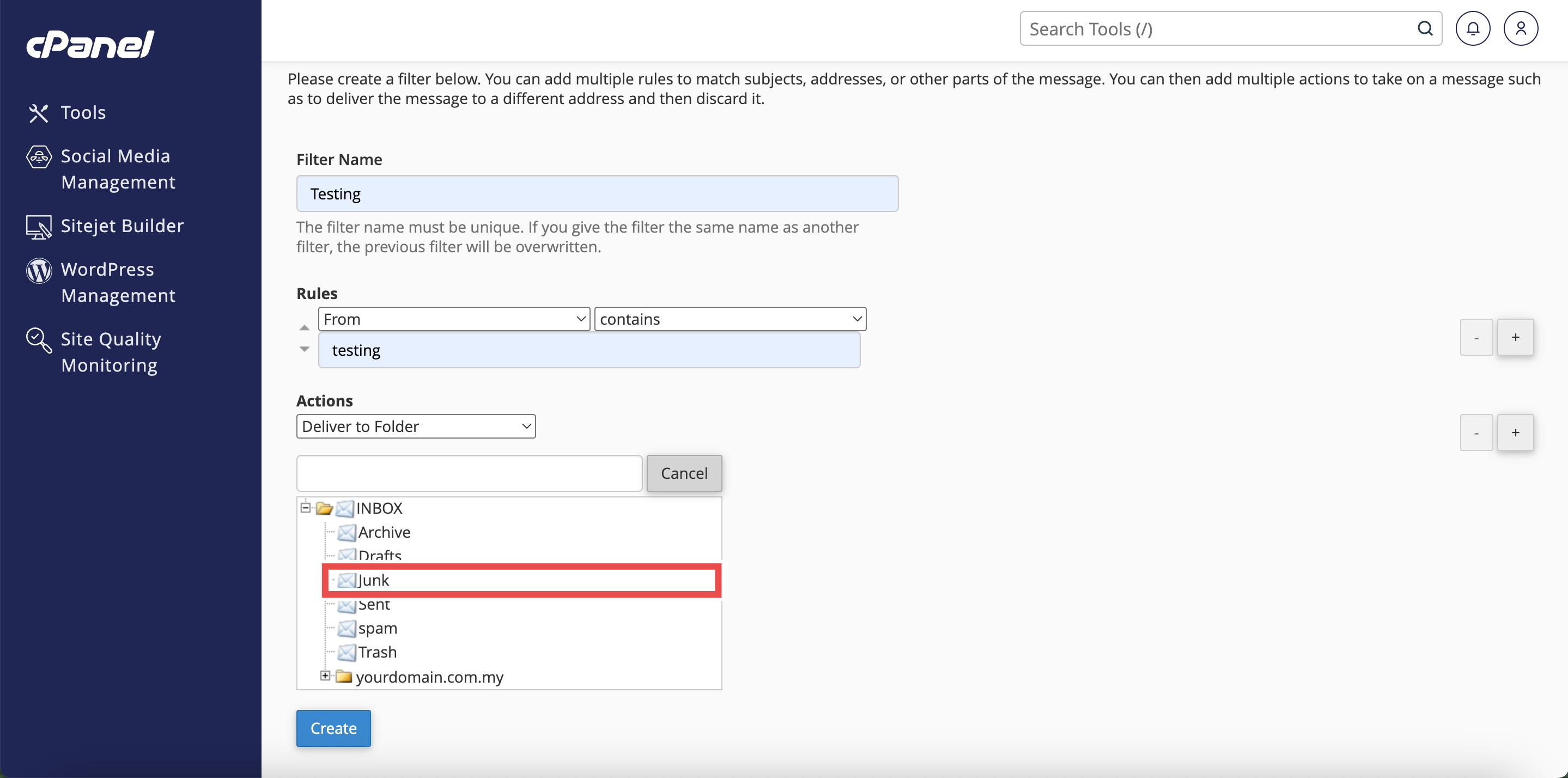 How to Automatically Move Emails to Junk Folder using Email Filters in cPanel