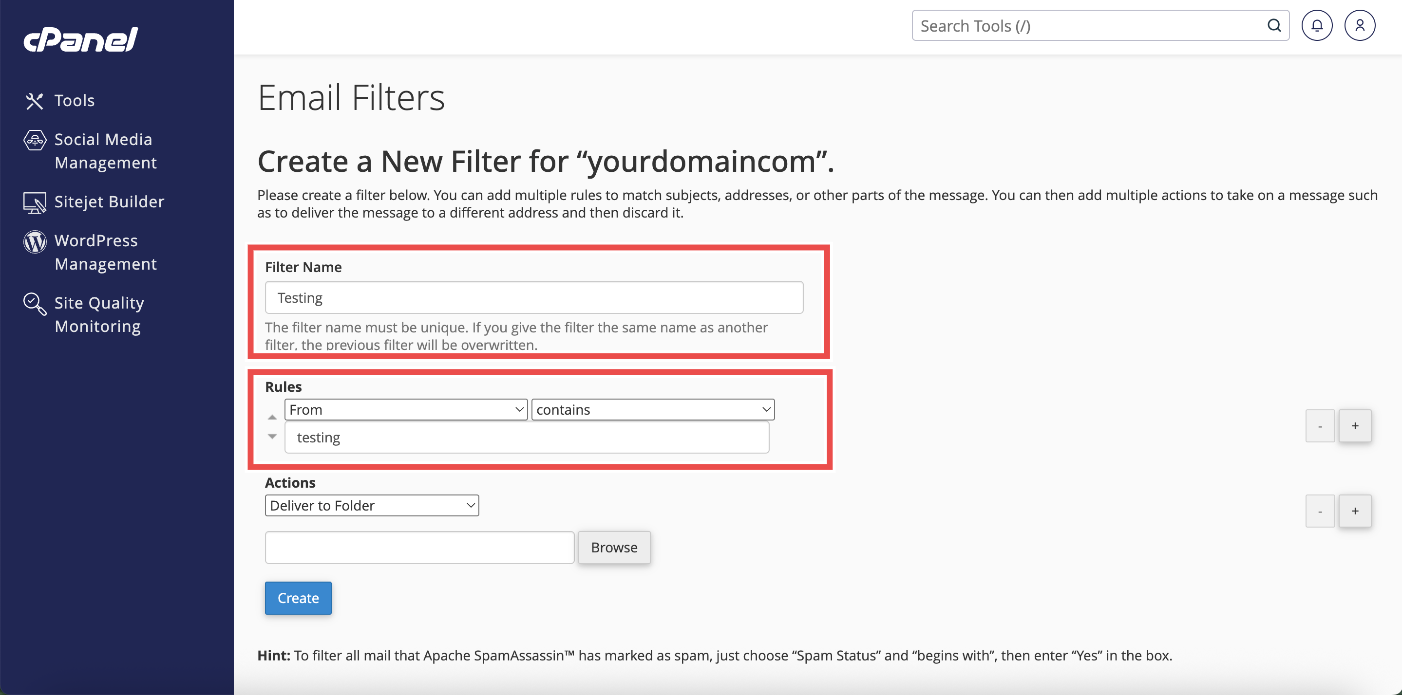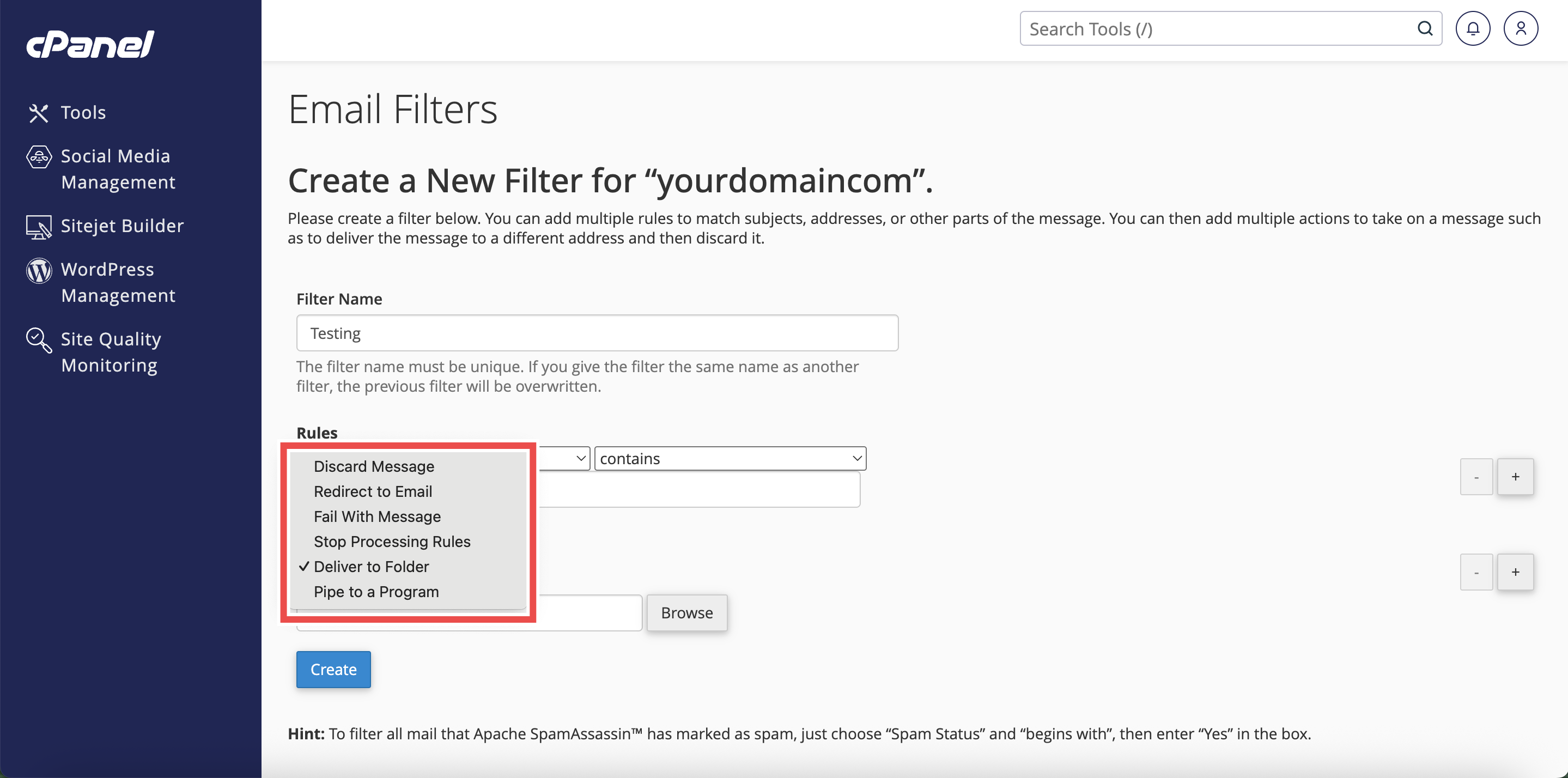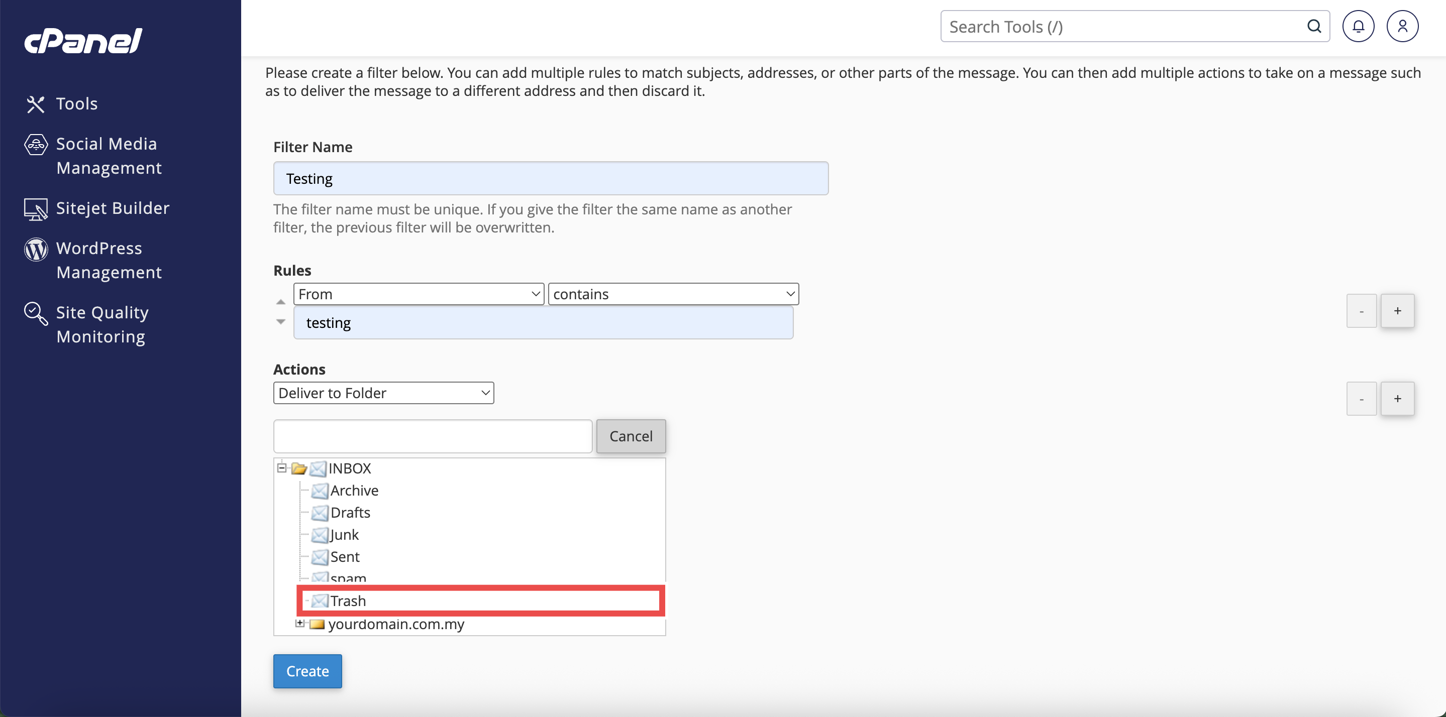 How to Automatically Move Emails to Trash Folder using Email Filters in cPanel