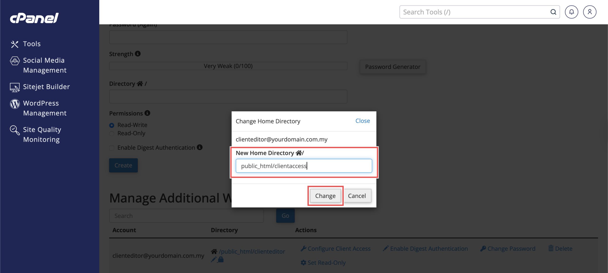 How to Change Additional Web Disk Account’s Assigned Directory in cPanel