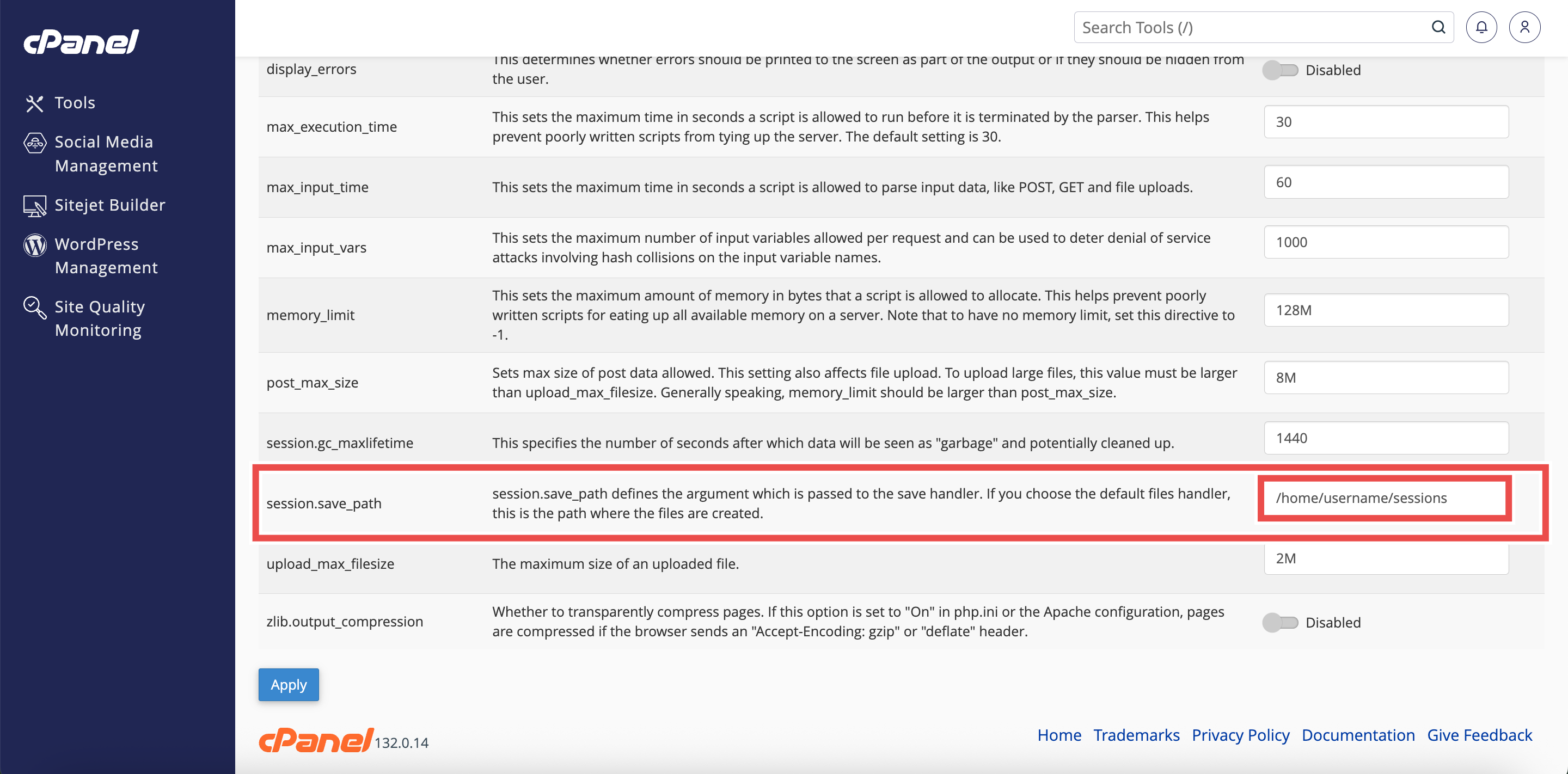 How to Change Session Save Path for a Specific Website using MultiPHP INI Editor in cPanel