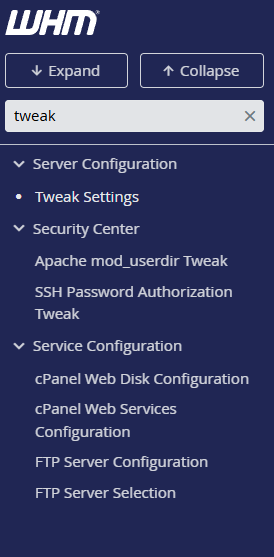 From the WHM home screen, go to: Home » Server Configuration » Tweak Settings and click the System tab.