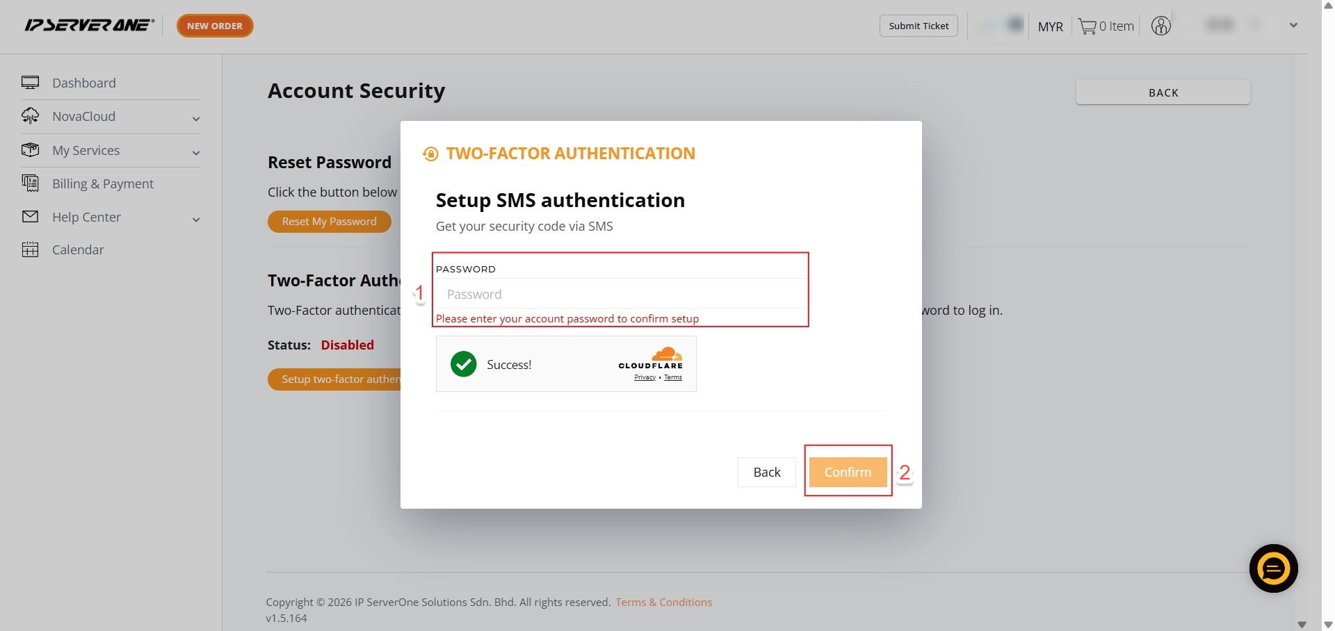 - A success message will appear; the IP ServerOne team will also send a confirmation email to your registered address.