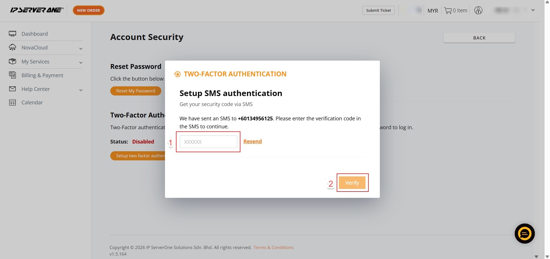 - Key in the time-sensitive verification code sent to your active mobile device and click “Verify”.