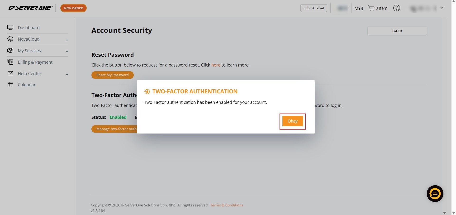 - A success message will appear; the IP ServerOne team will also send a confirmation email to your registered address.