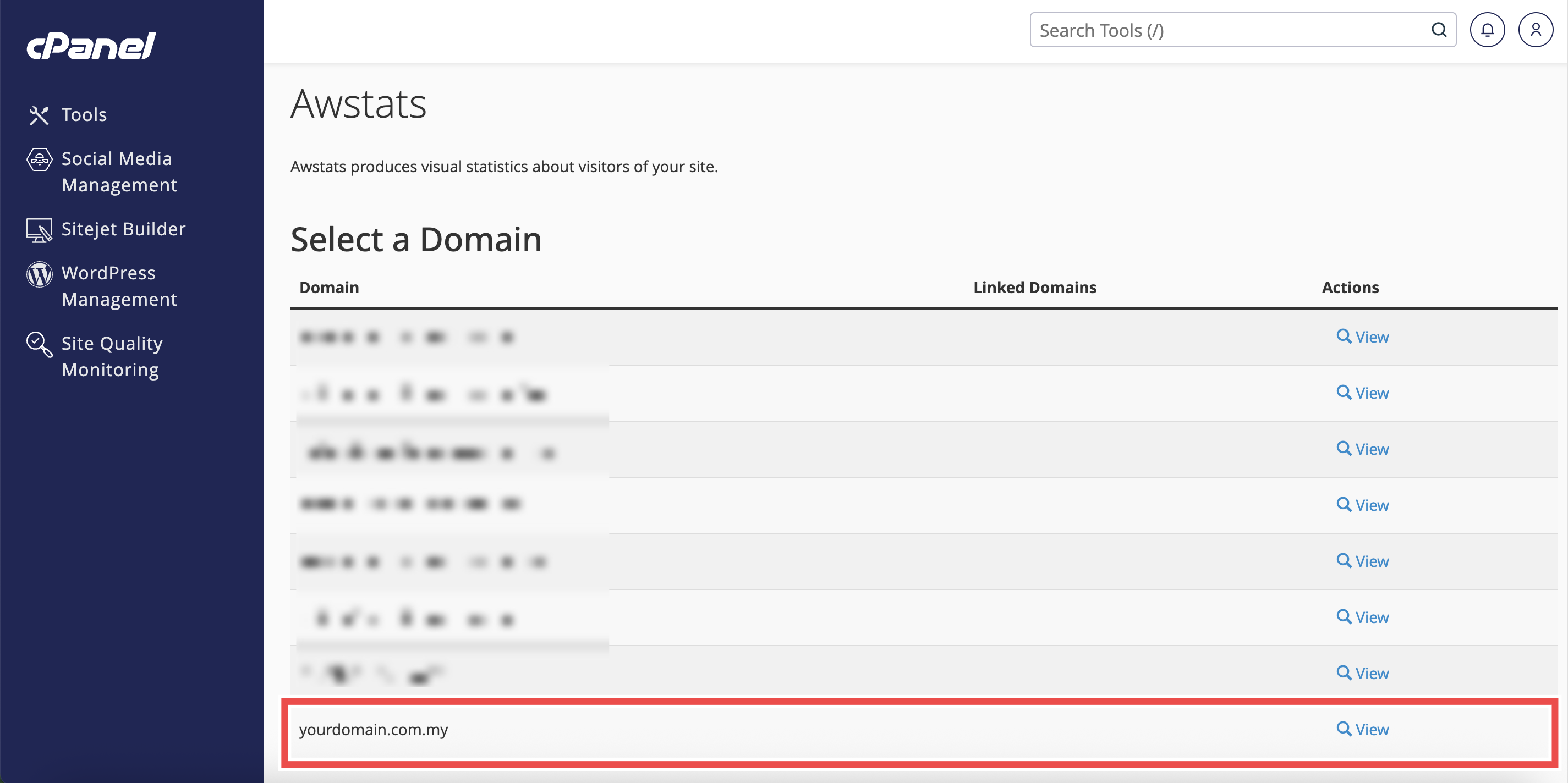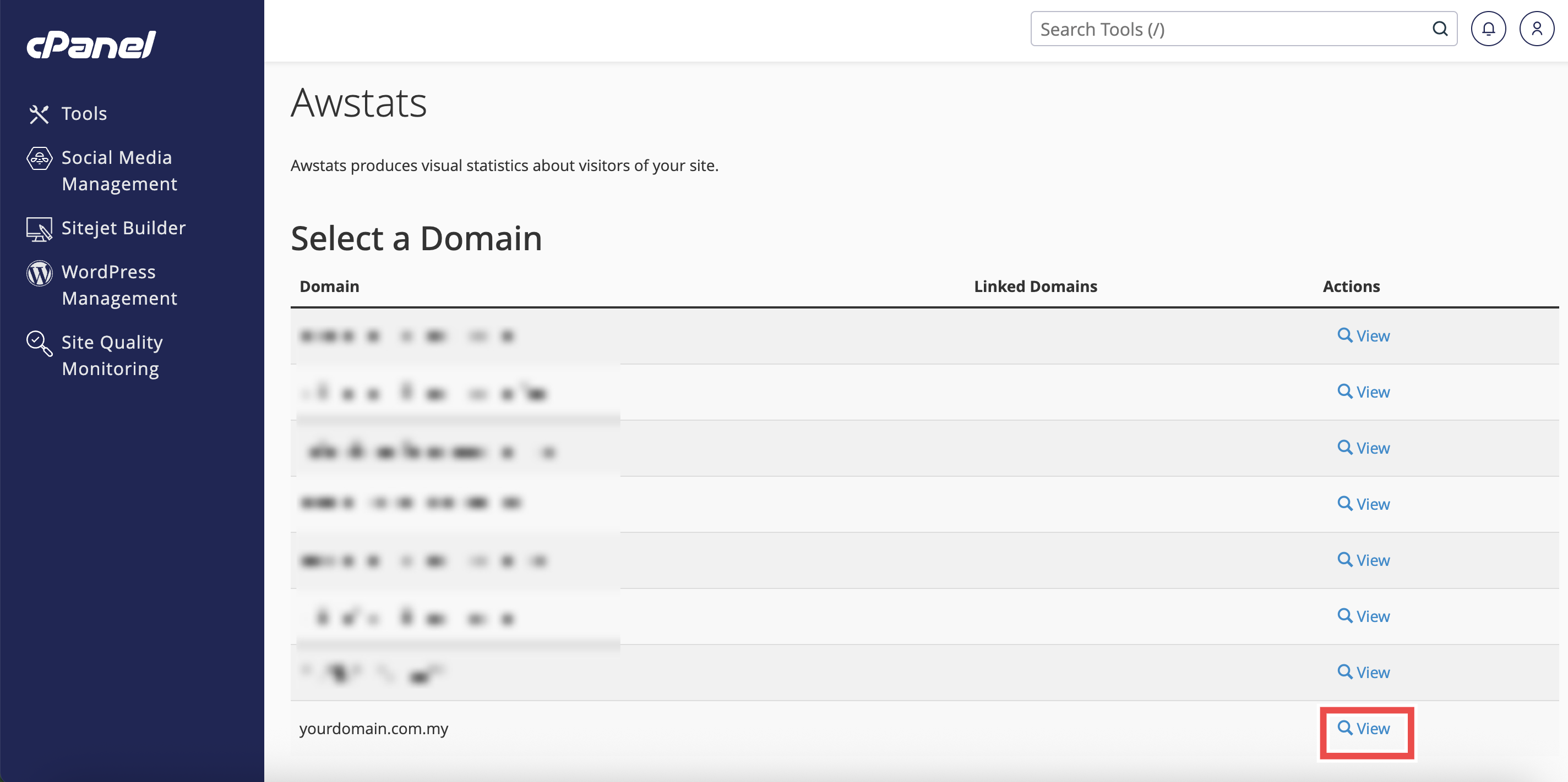 - Click View next to the domain name.