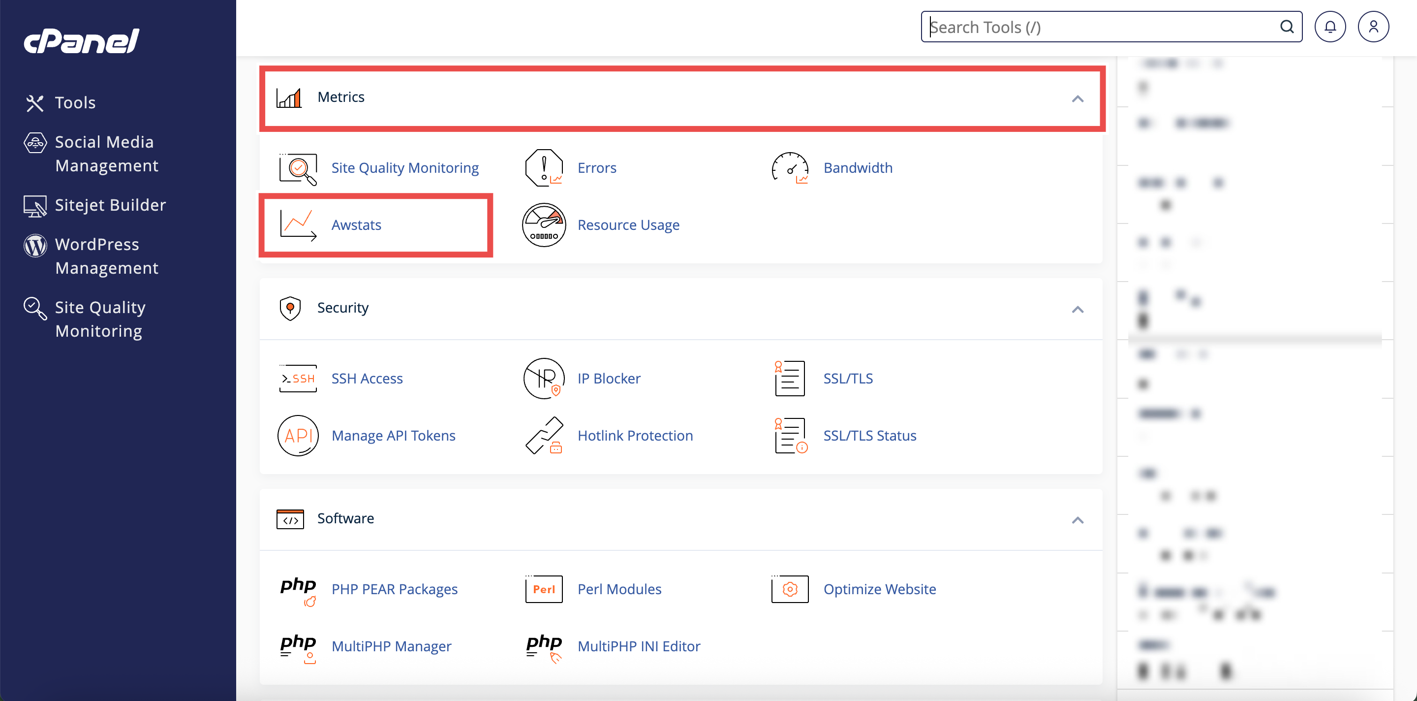 - In the Home page, under Metrics, click AWStats.