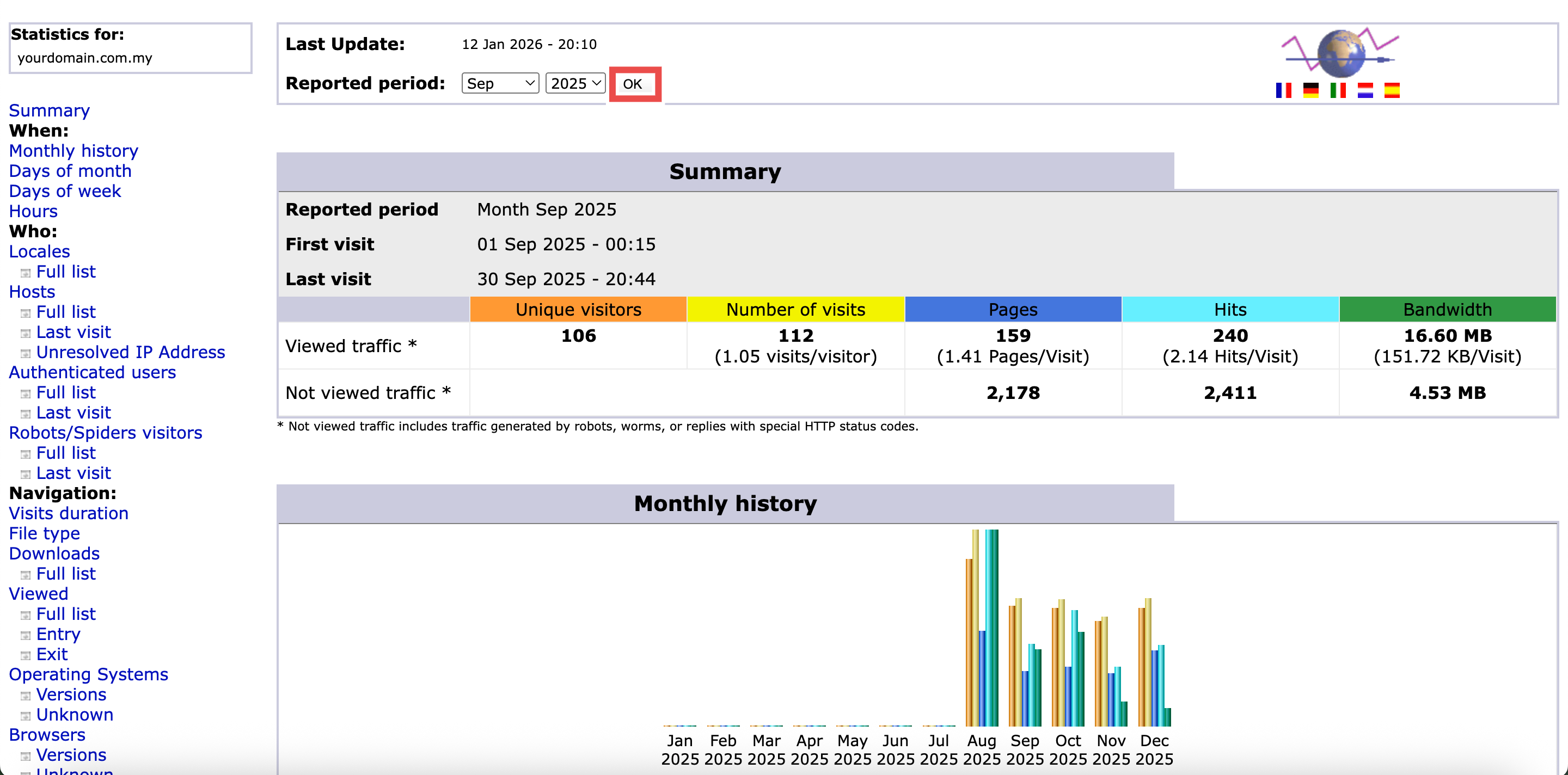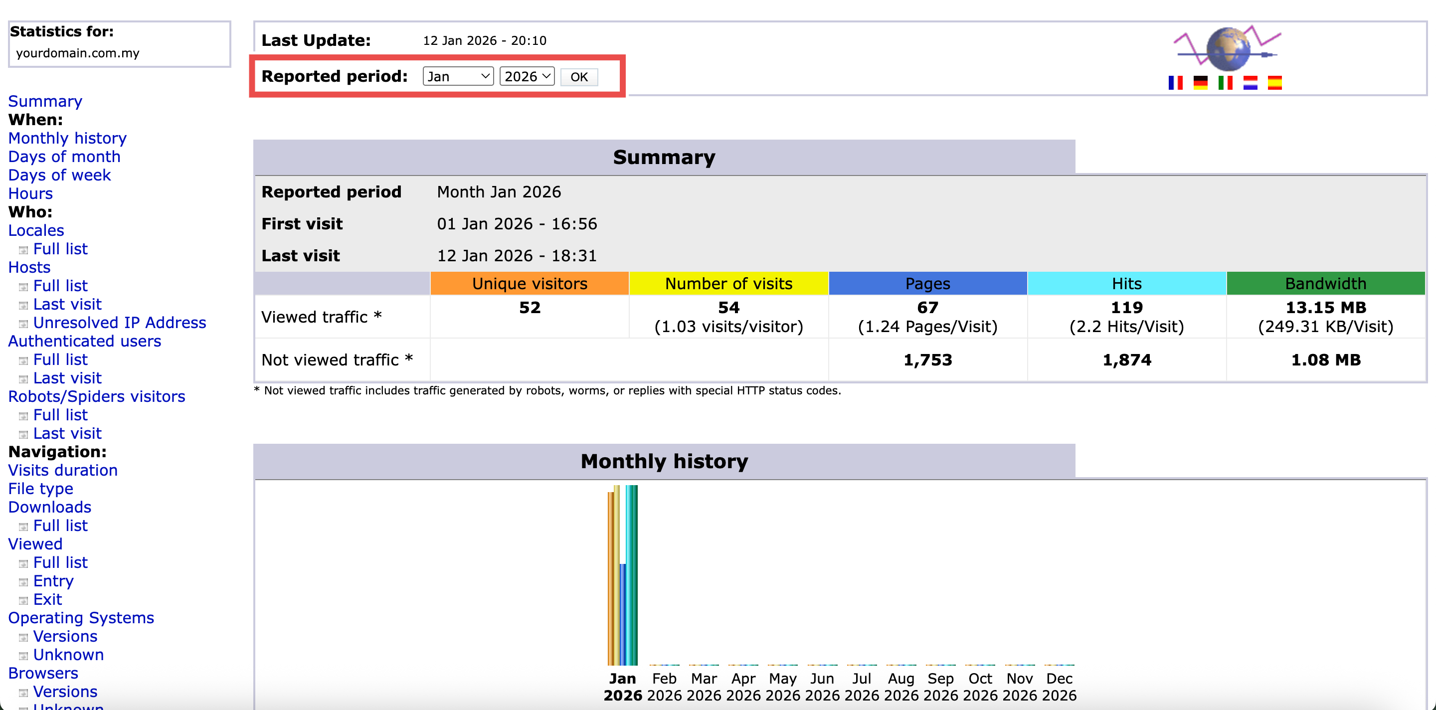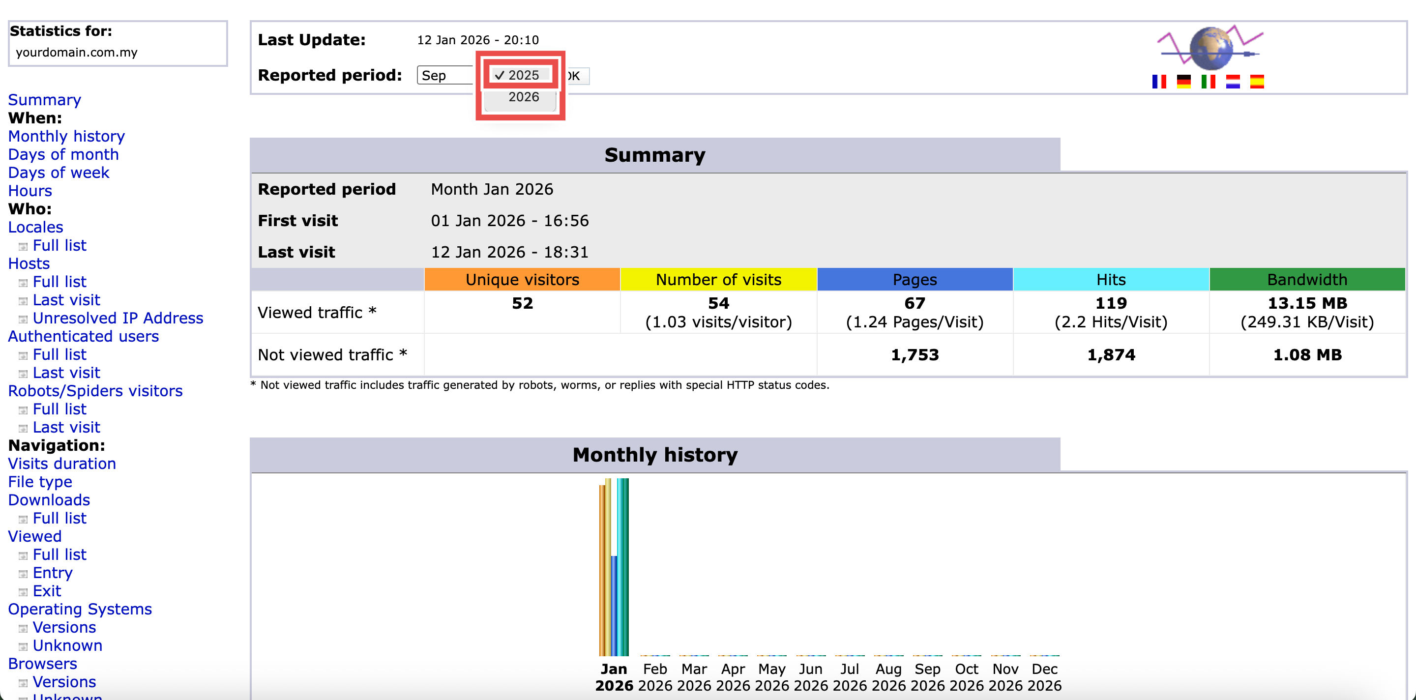 - The AWStats interface will open in a new window or tab.