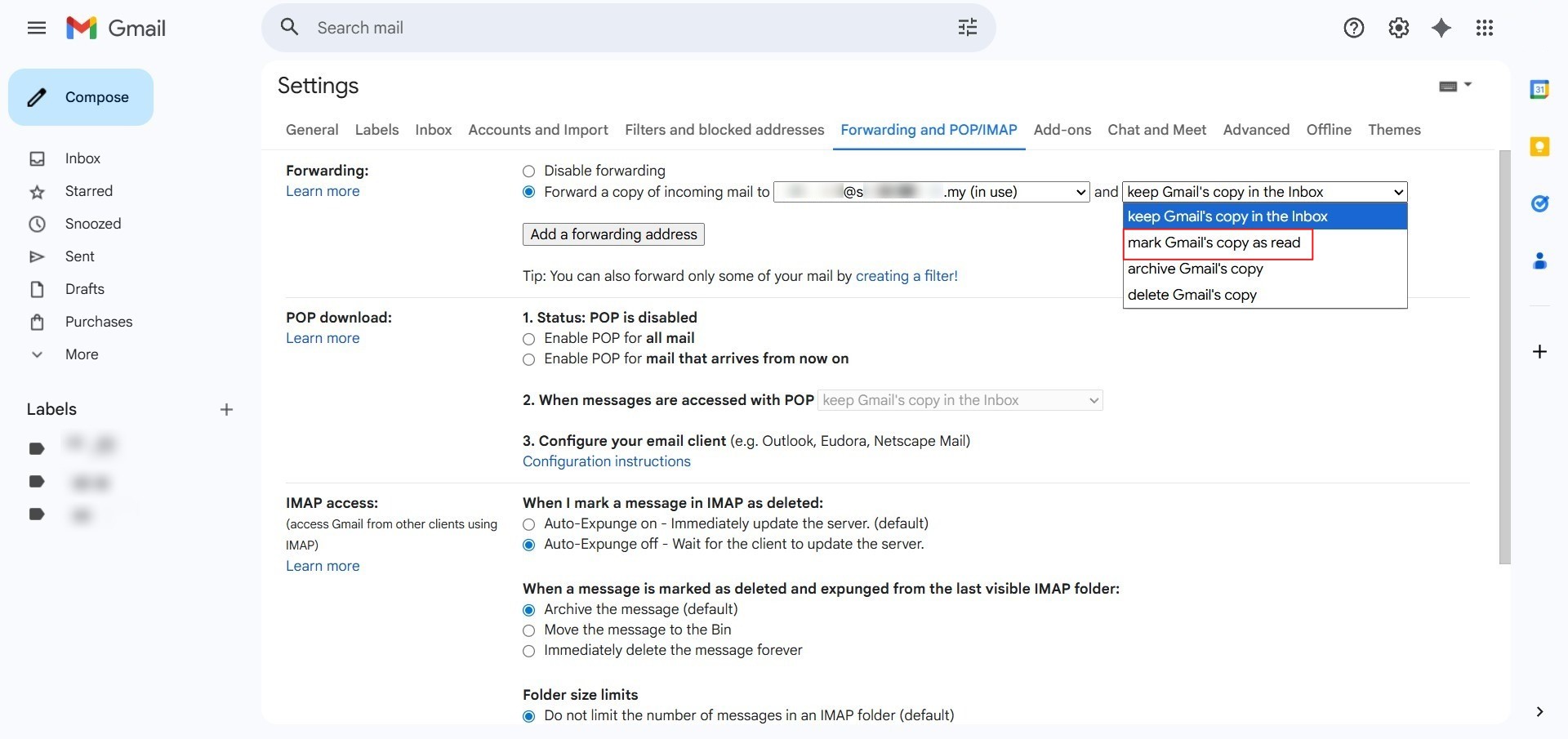 How to Configure Forwarding Option: “Mark Gmail’s Copy as Read” in Gmail Web