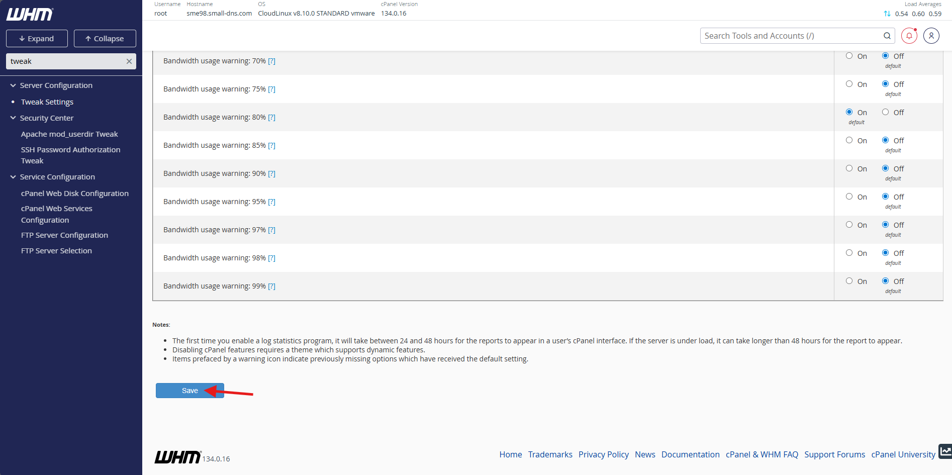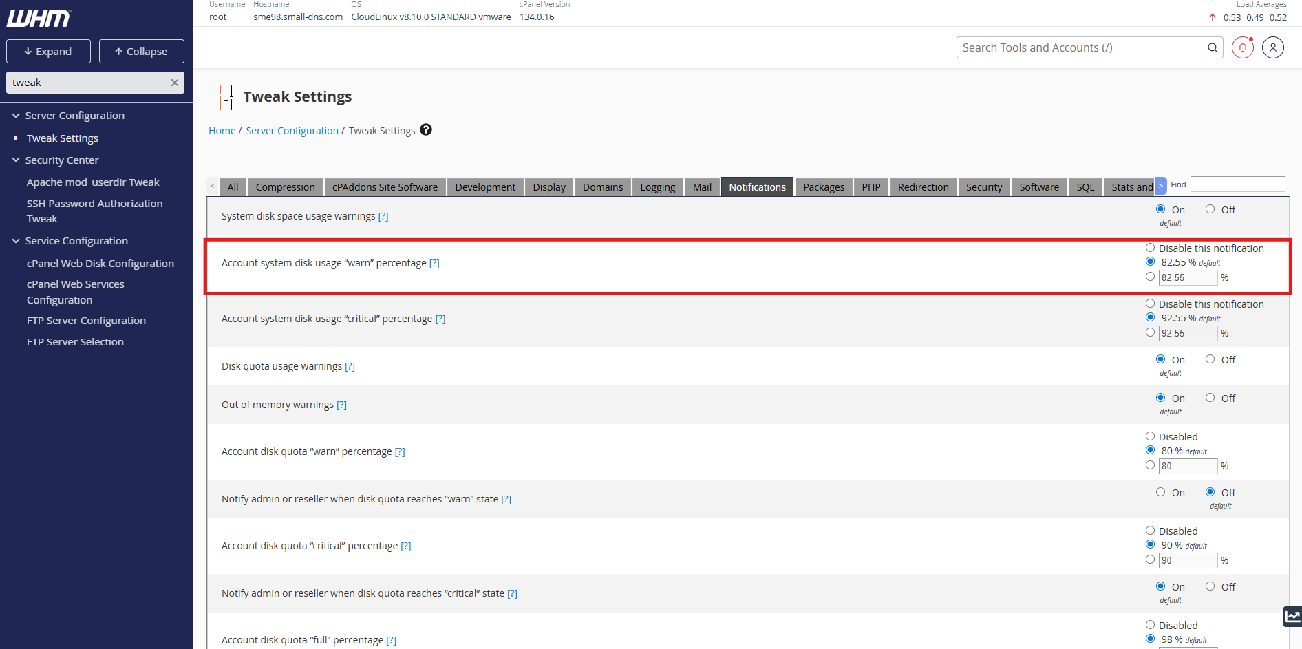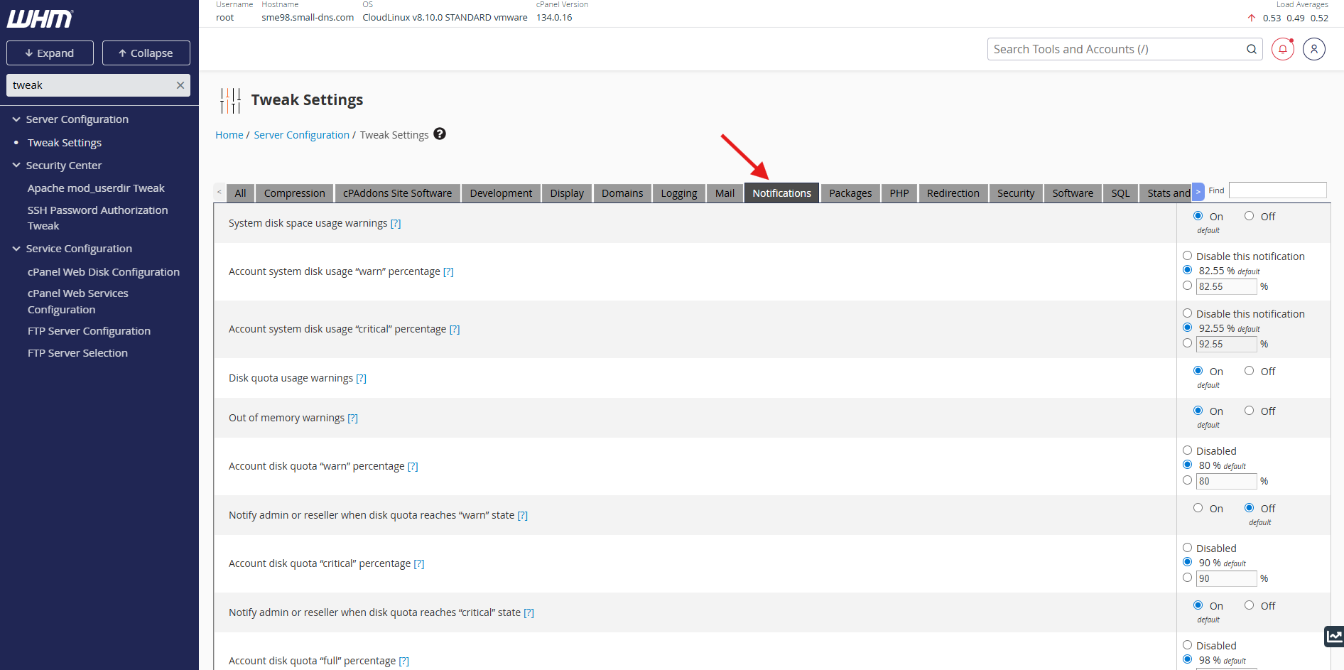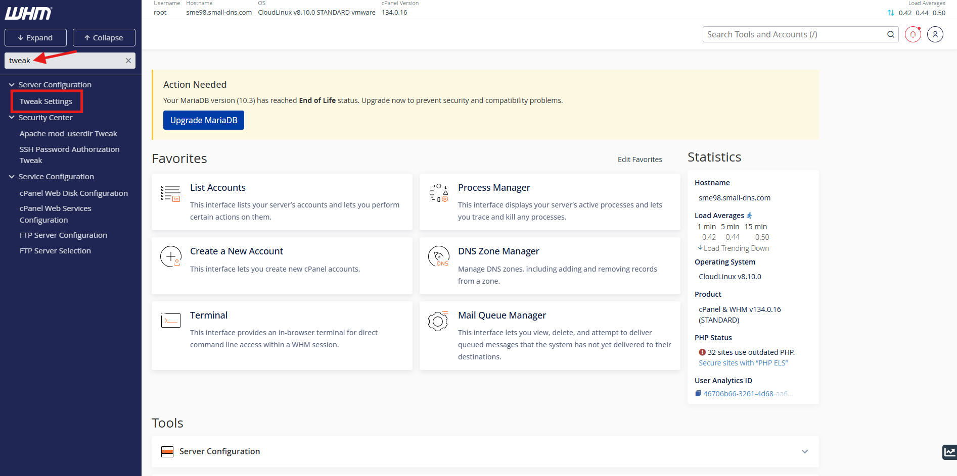 Step 1: Access Tweak Settings in WHM