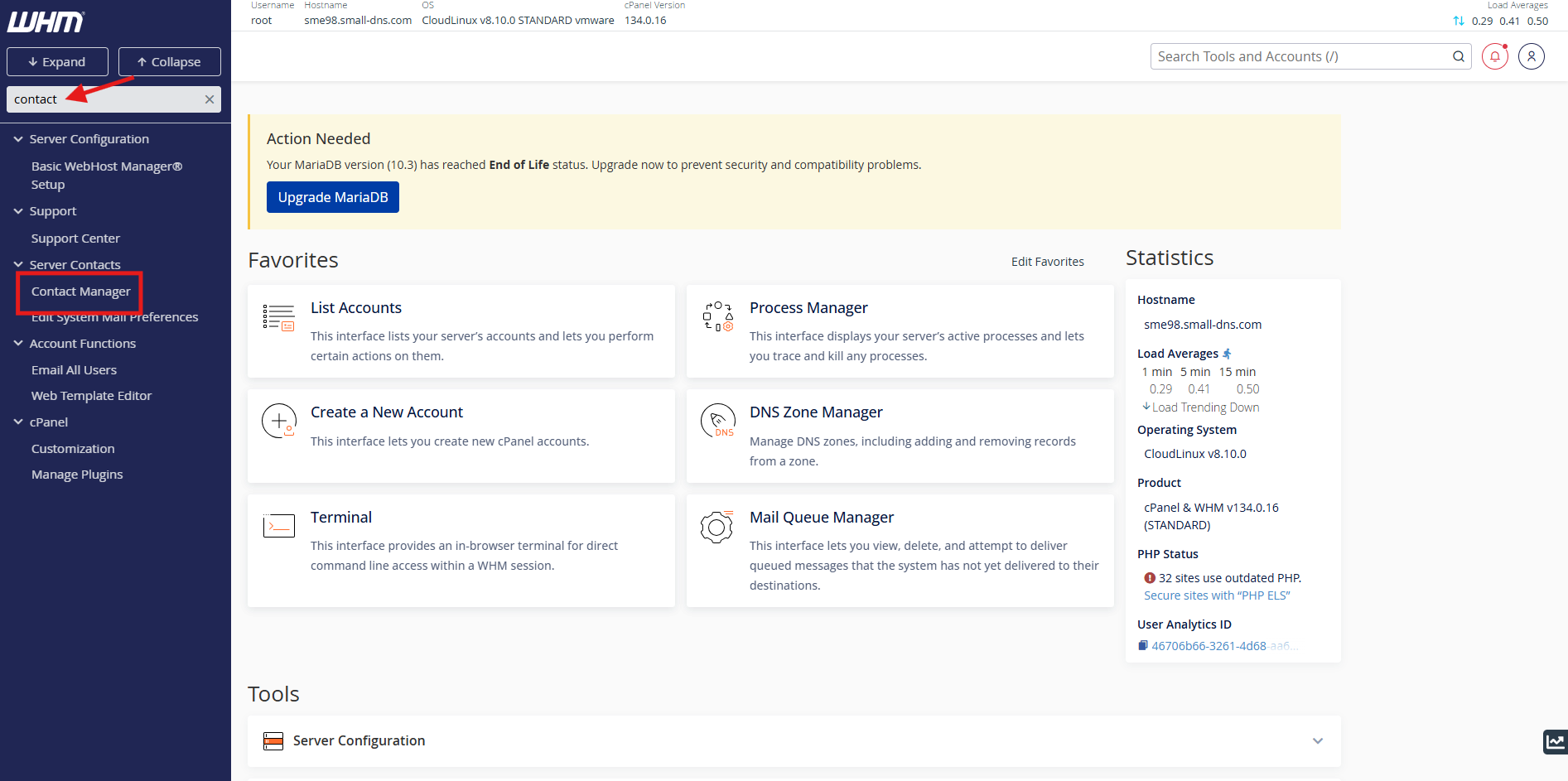 Access to WHM with root privileges