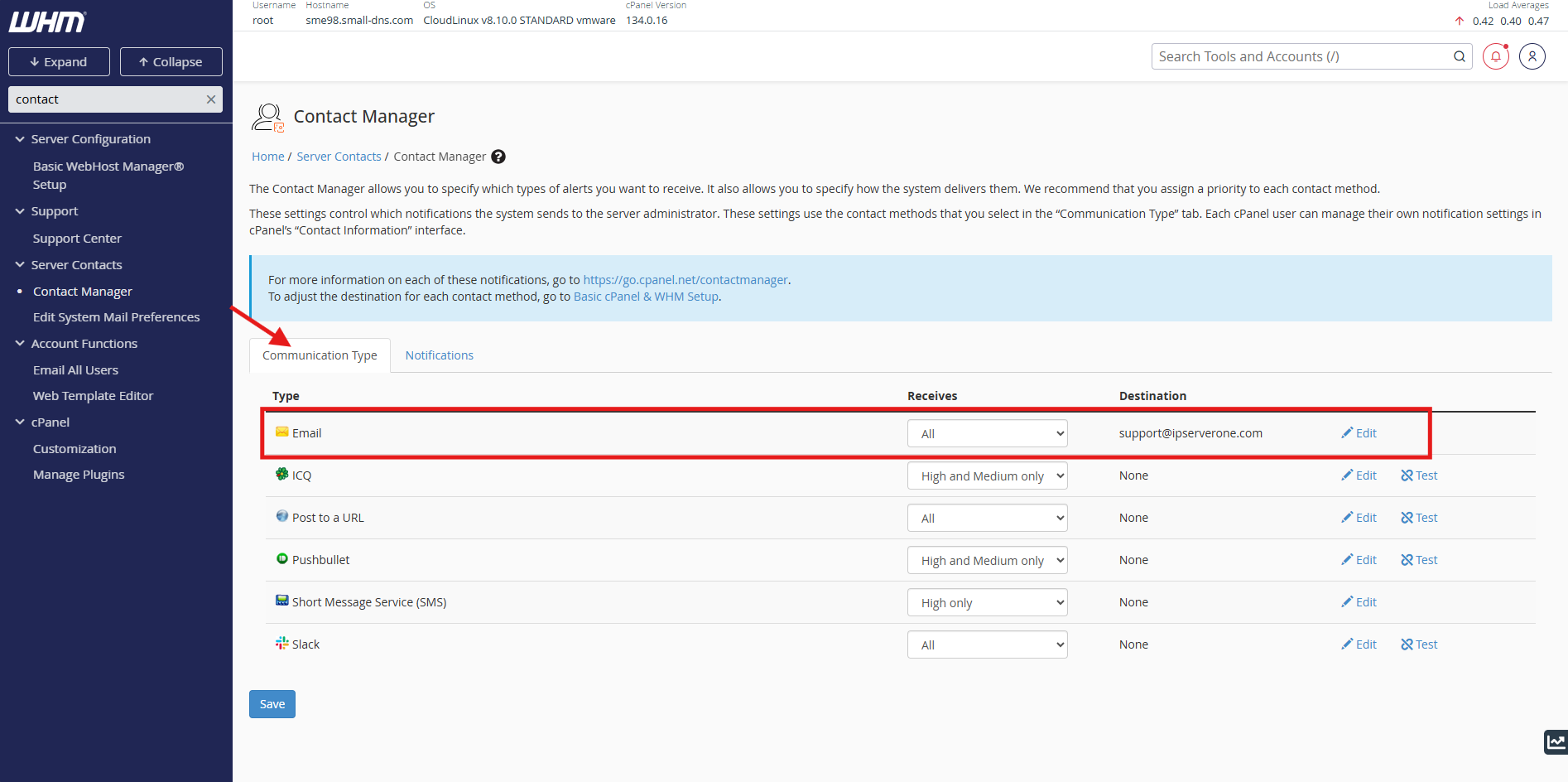 - On the Communication Type. Locate the Email and edit the email address you wish to receive the alert. **Take note that this will navigate to another page.