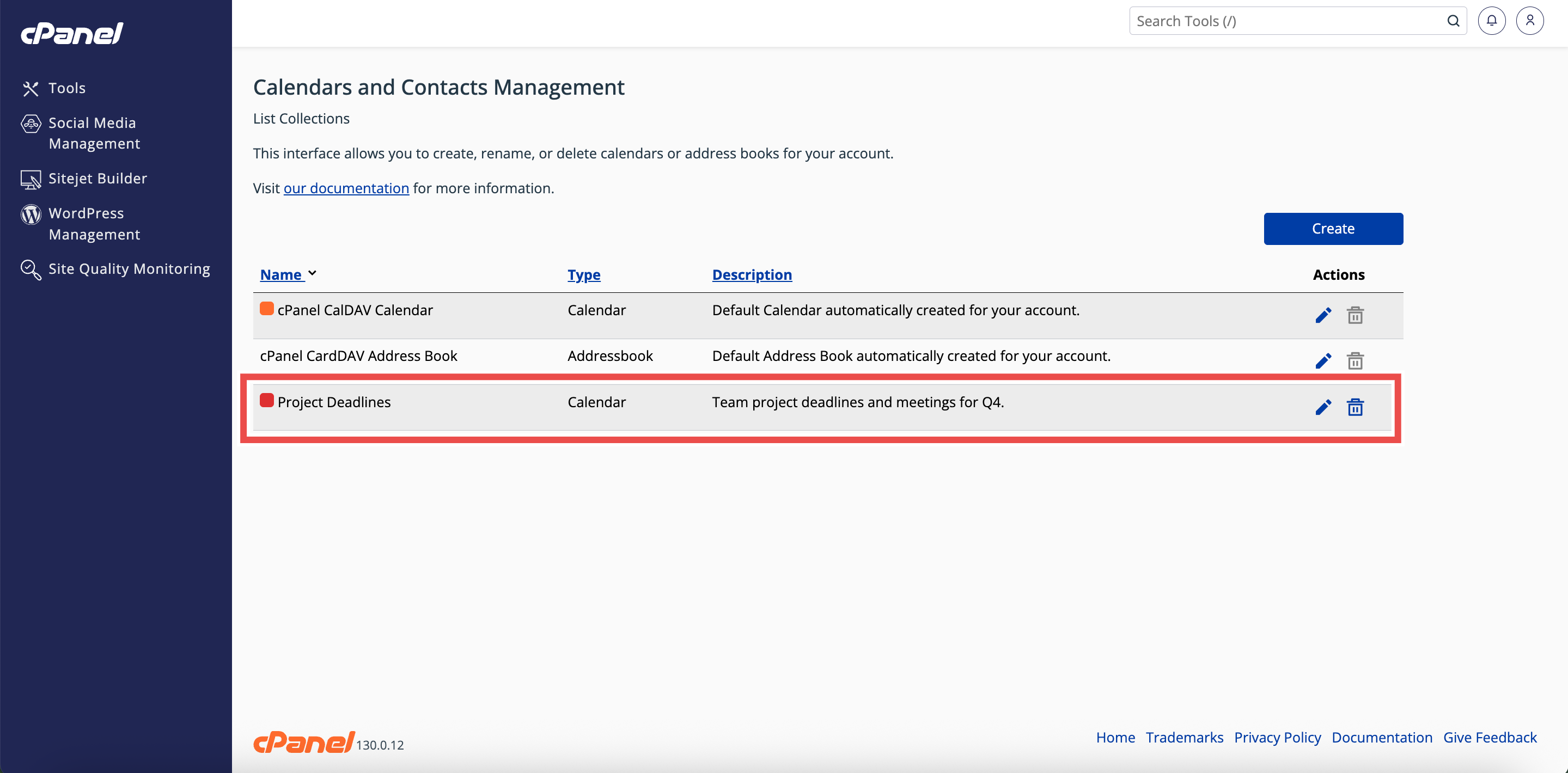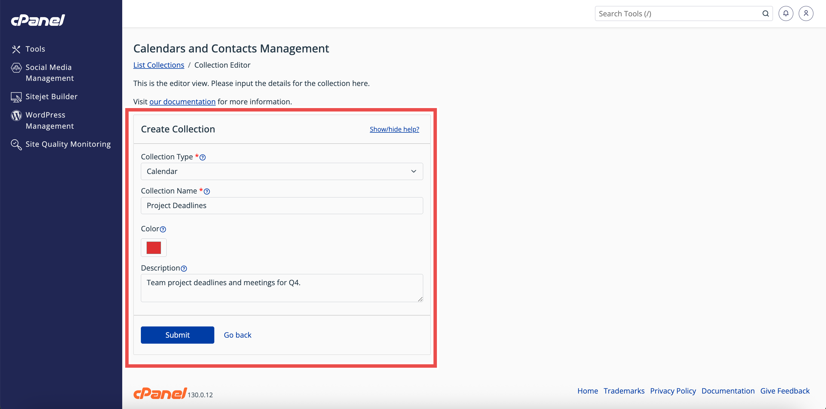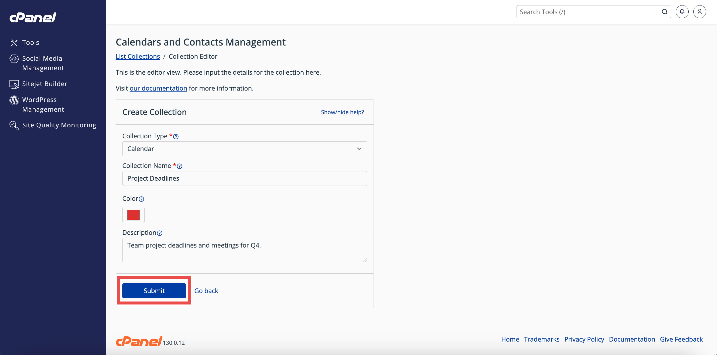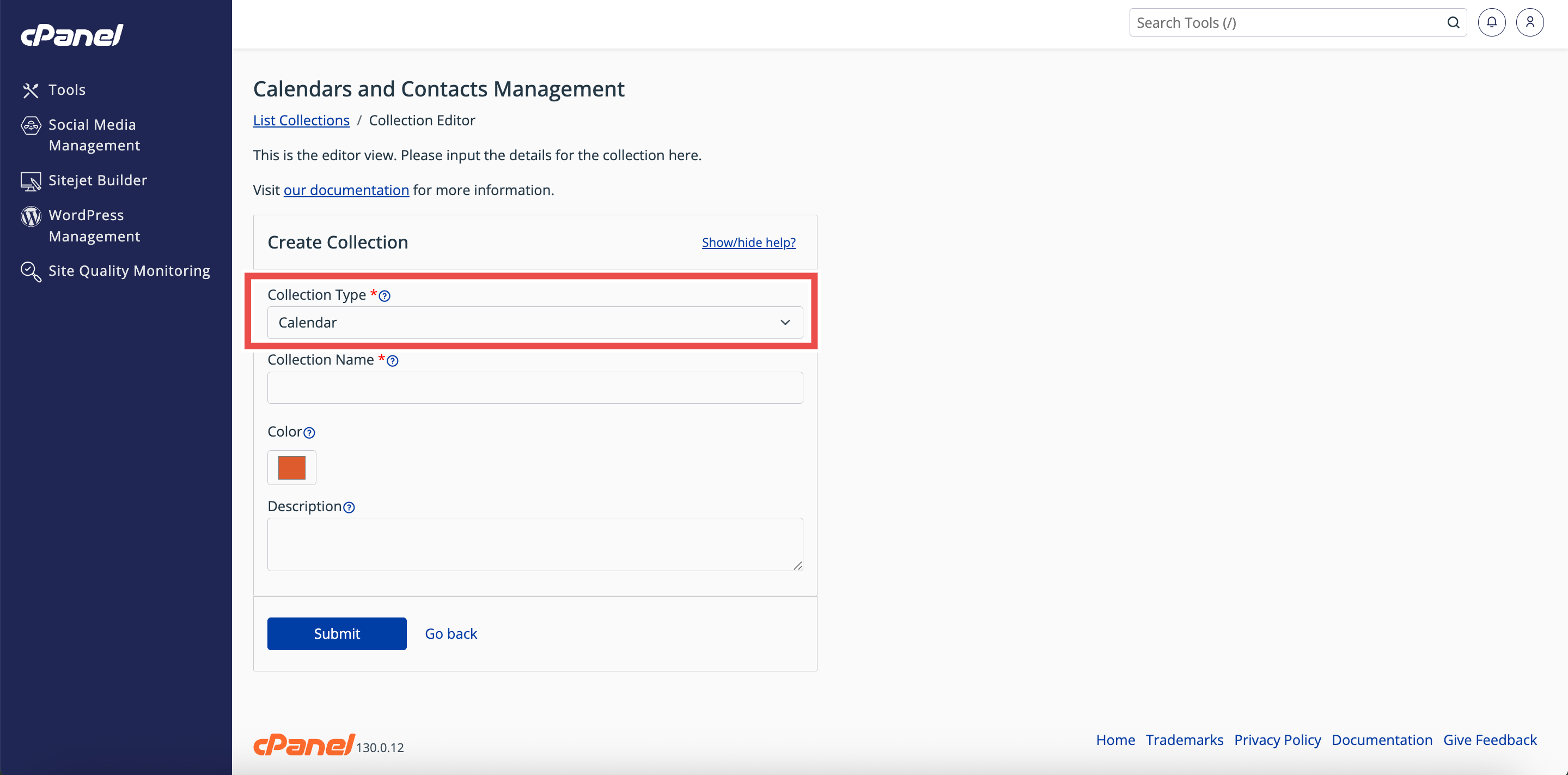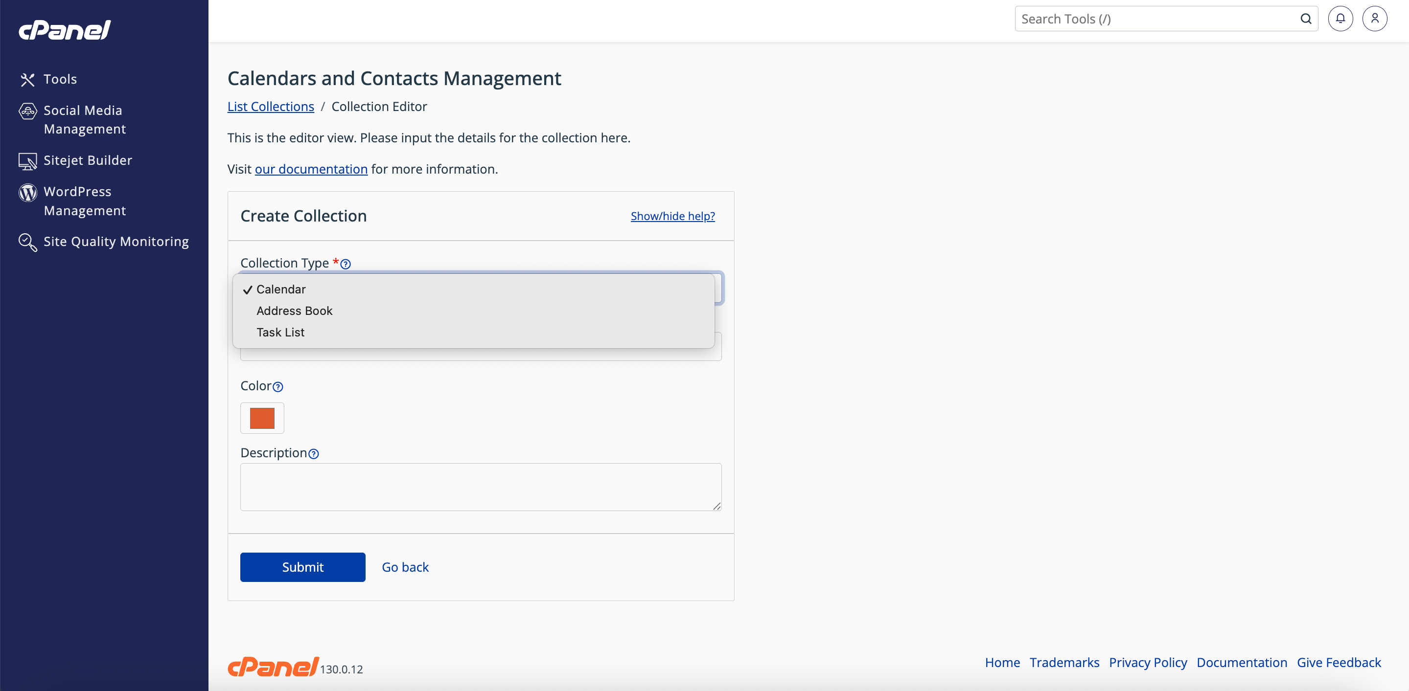 By following these steps, you can easily create a new calendar in cPanel using the Collection Editor. Always verify that the calendar appears in the Calendars and Contacts Management table to confirm successful creation. Once the calendar is set up, you can manage events, edit details, or share access as needed.