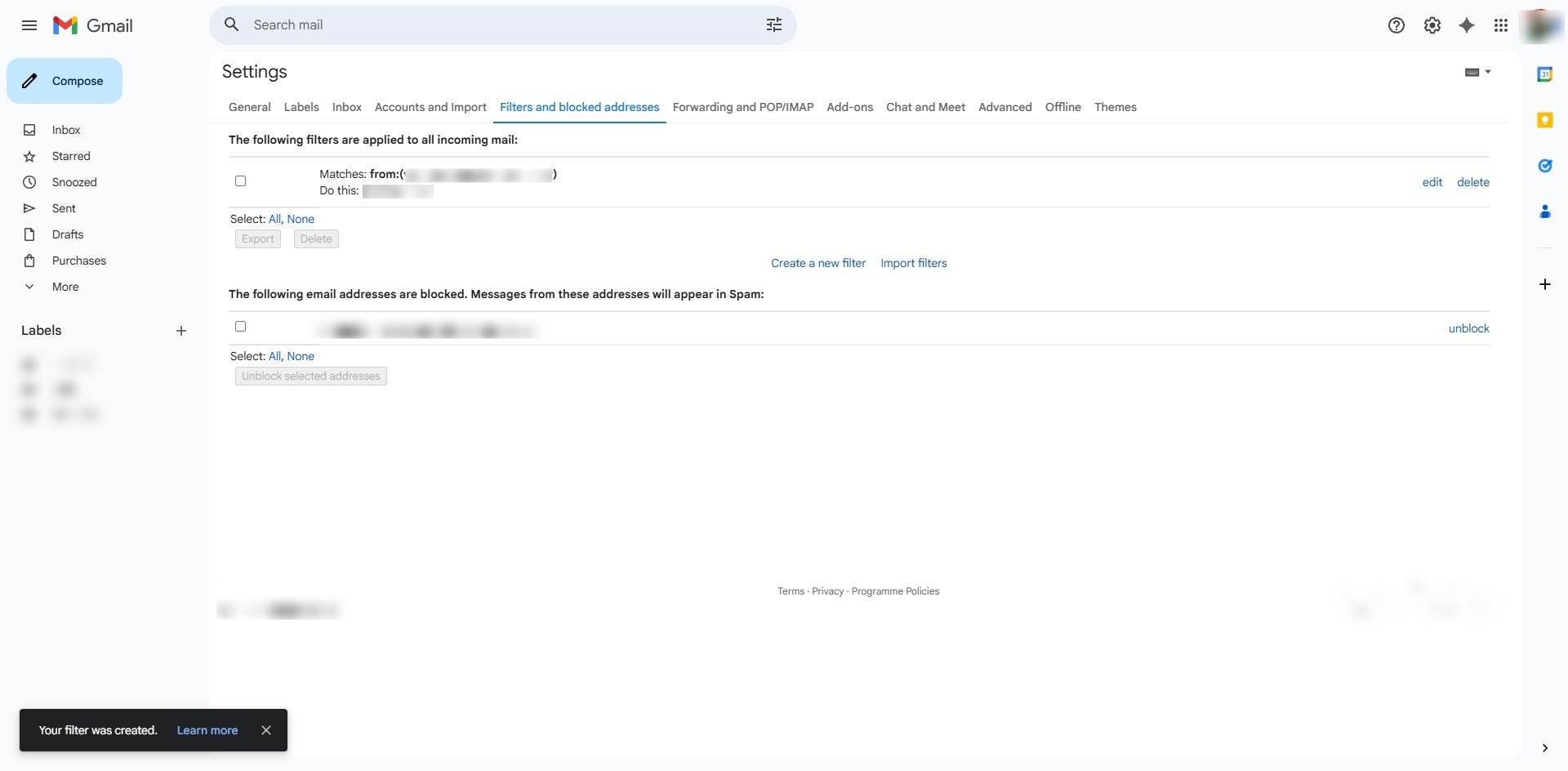 How to Create a New Filter and Blocked with Specific Email User in Gmail Web