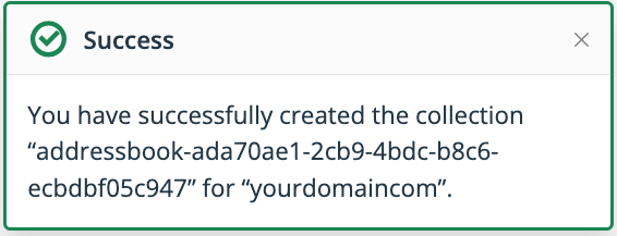 - Check the Calendars and Contacts Management table to ensure the newly created address book is listed in the table.