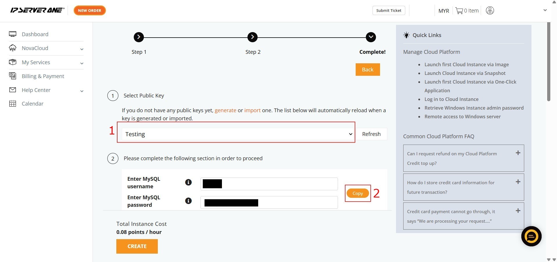 - The user must select an existing Public Key during the creation process. If you do not have any keys yet, you are required to generate or import one before proceeding.