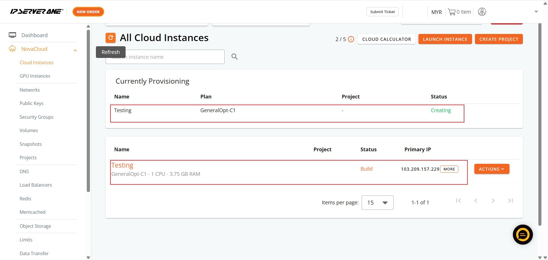 - Your request to launch the instance has been queued, and the provisioning process is underway (status “Creating” or “Active”).