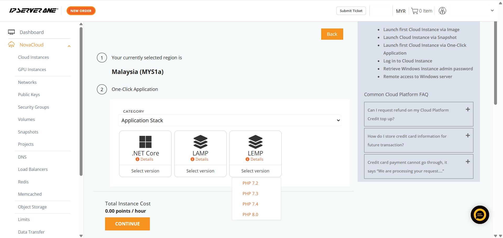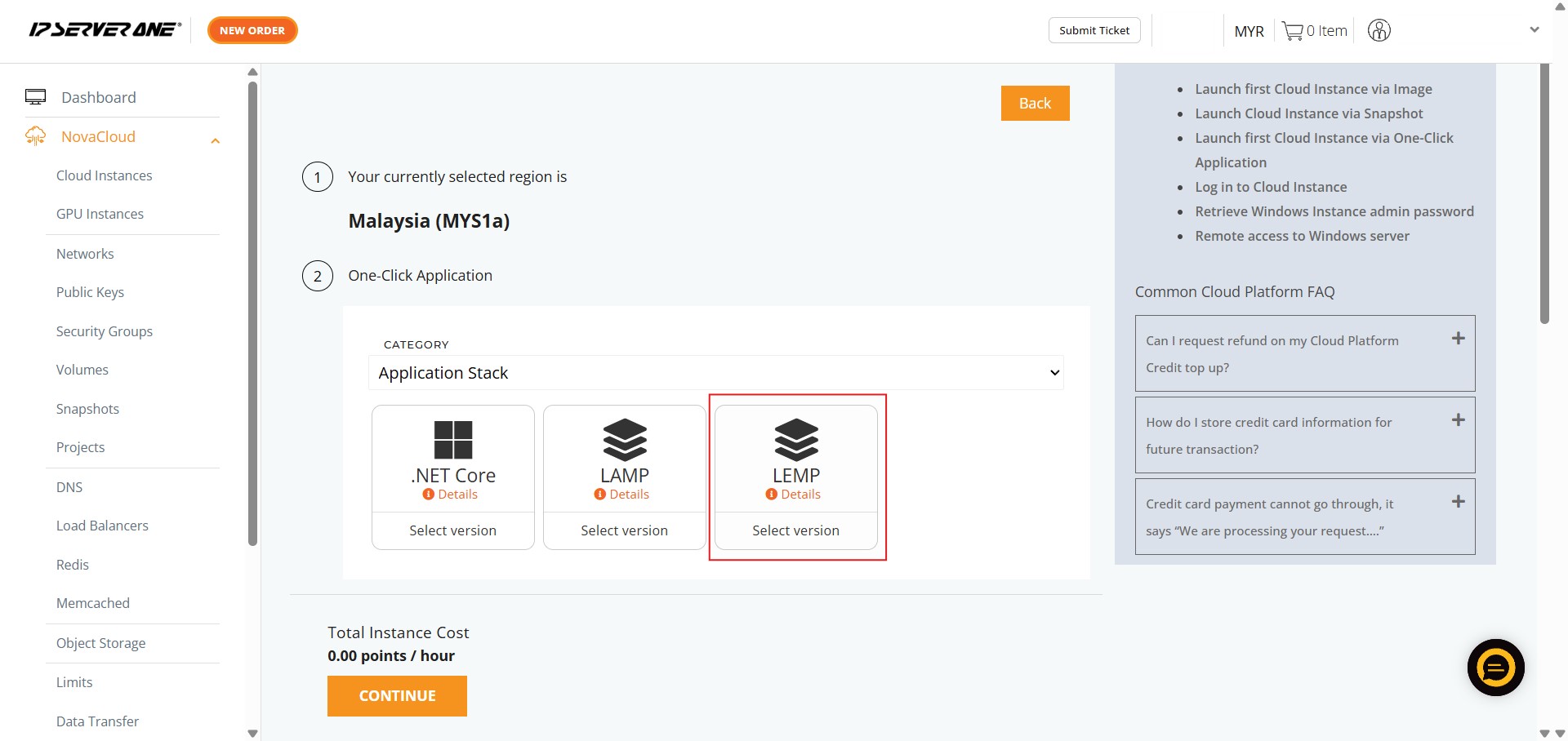 How to Create LEMP with Create Instance from One-Click Application in Customer Portal
