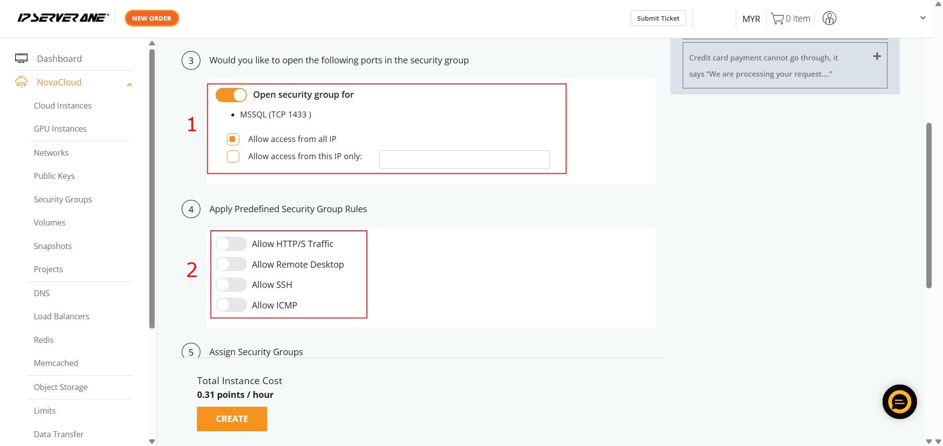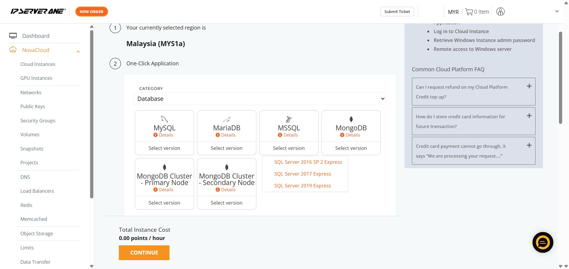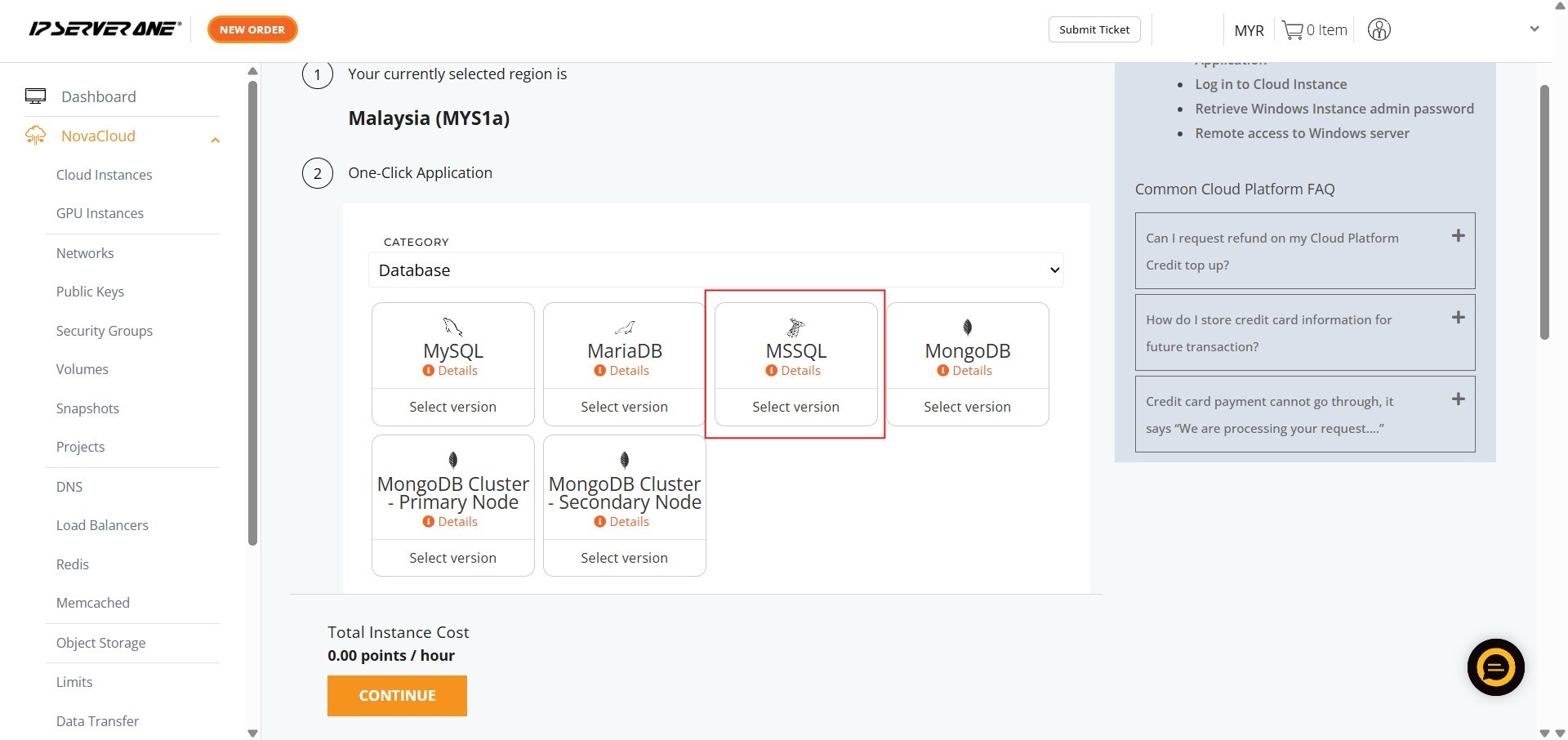 By successfully completing the detailed process, you have efficiently utilized the Create Instance from One-Click Application feature to provision a specialized database environment (specifically MSSQL) within the NovaCloud Customer Portal. This streamlined deployment method ensures your new Cloud Instance is pre-configured with your selected database and version.