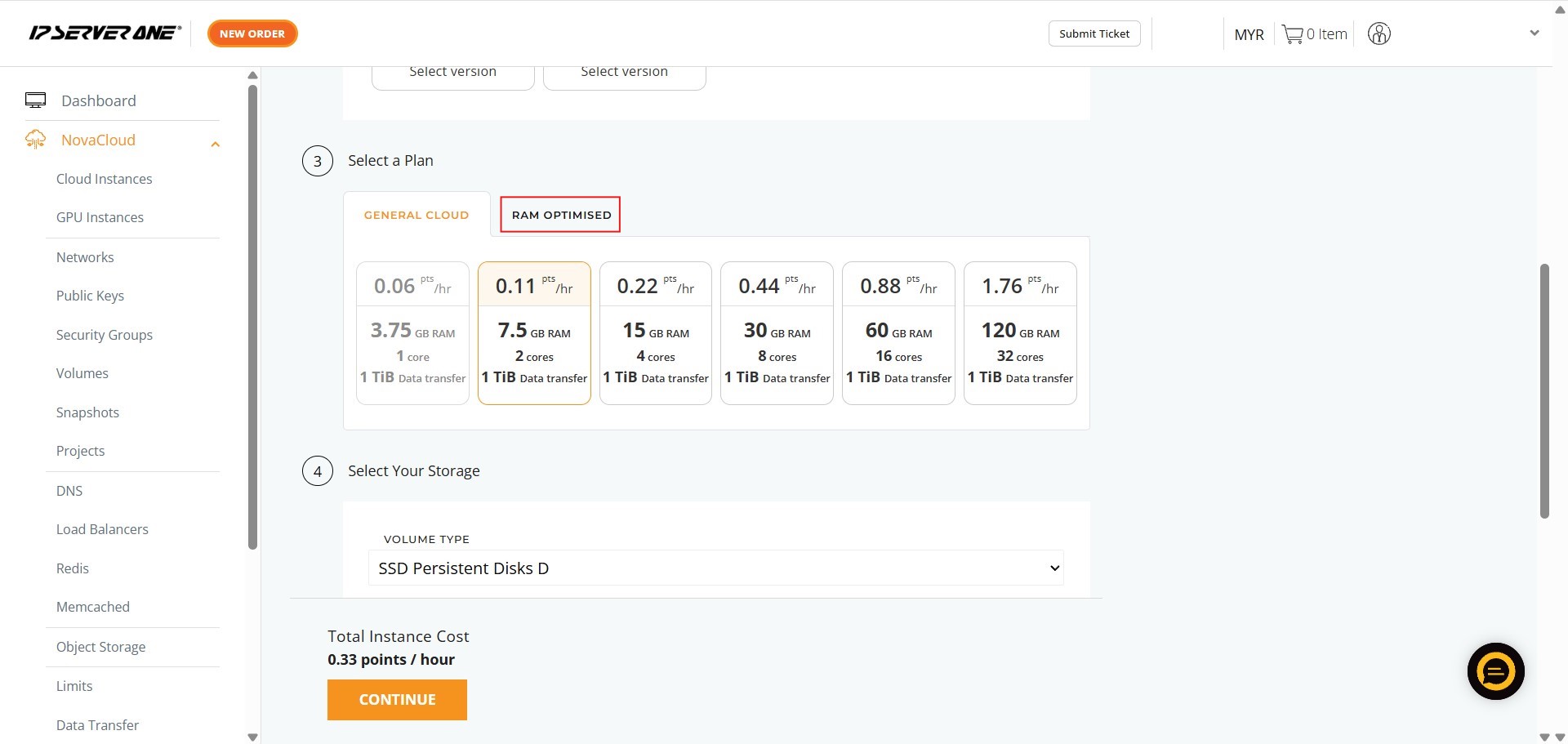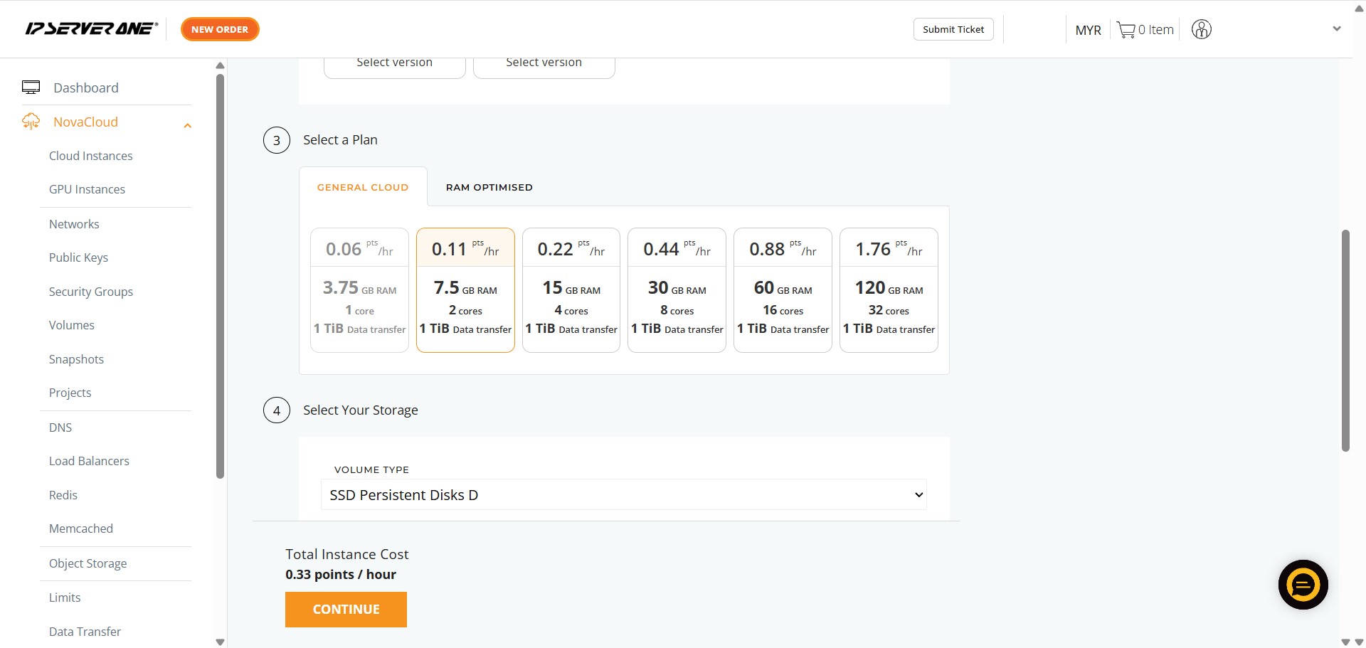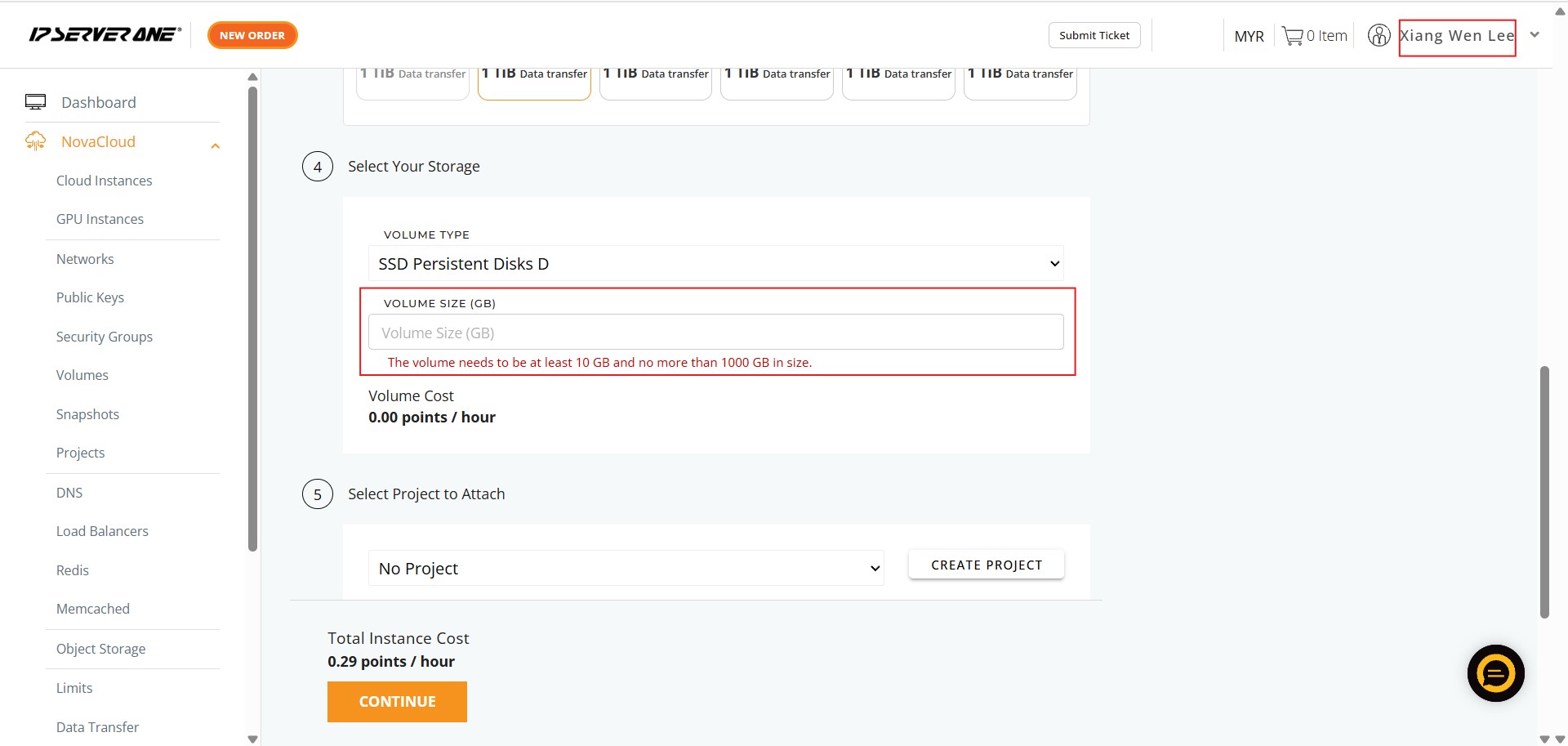 - Locate and click on the NovaCloud section in the left-hand navigation menu to access cloud resources.