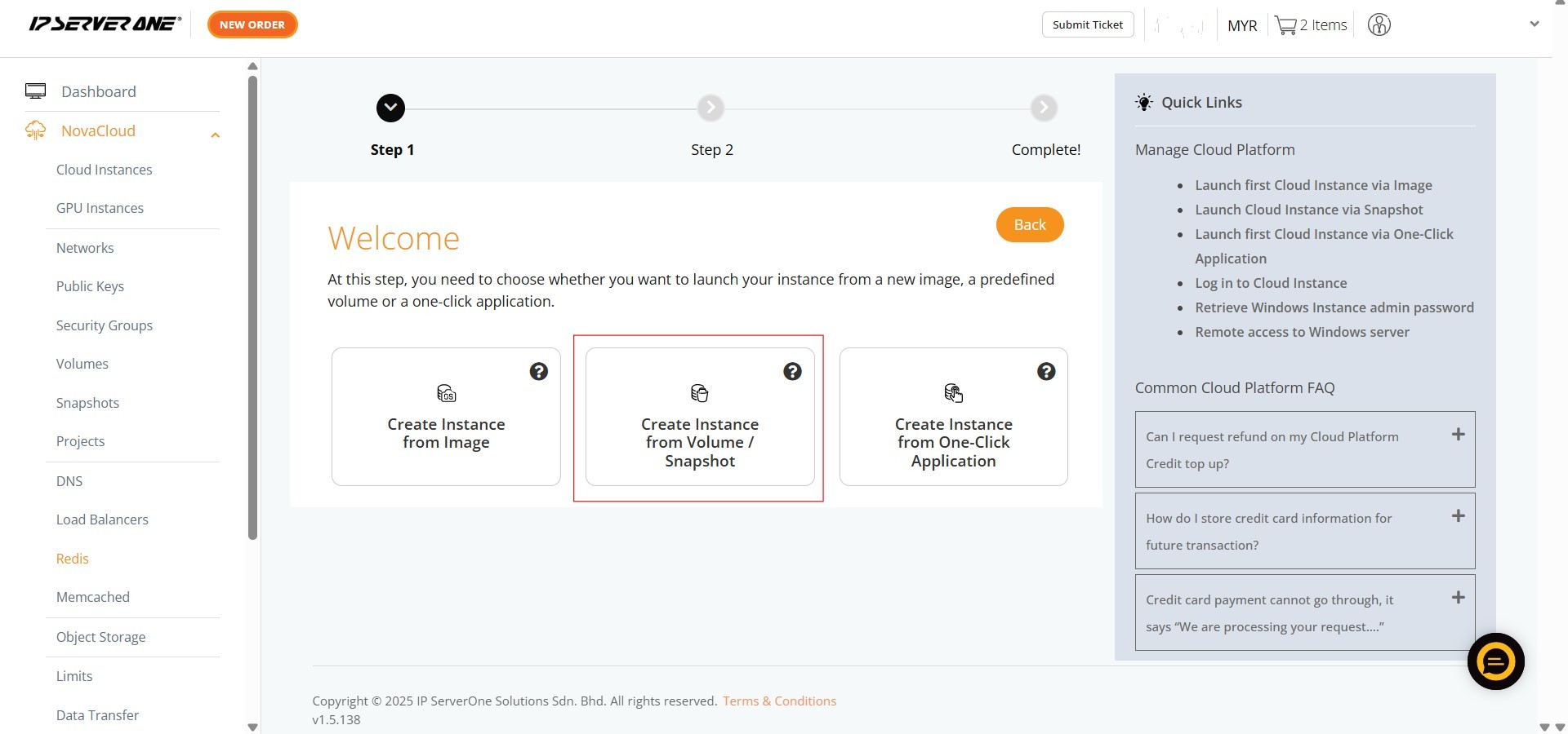 Step 3: Initiating Instance Creation from Volume / Snapshot
