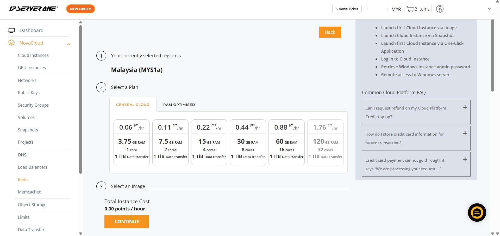 - Next, you will need to select a plan for your instance. You can choose a “General Cloud” plan, depending on your performance requirements.