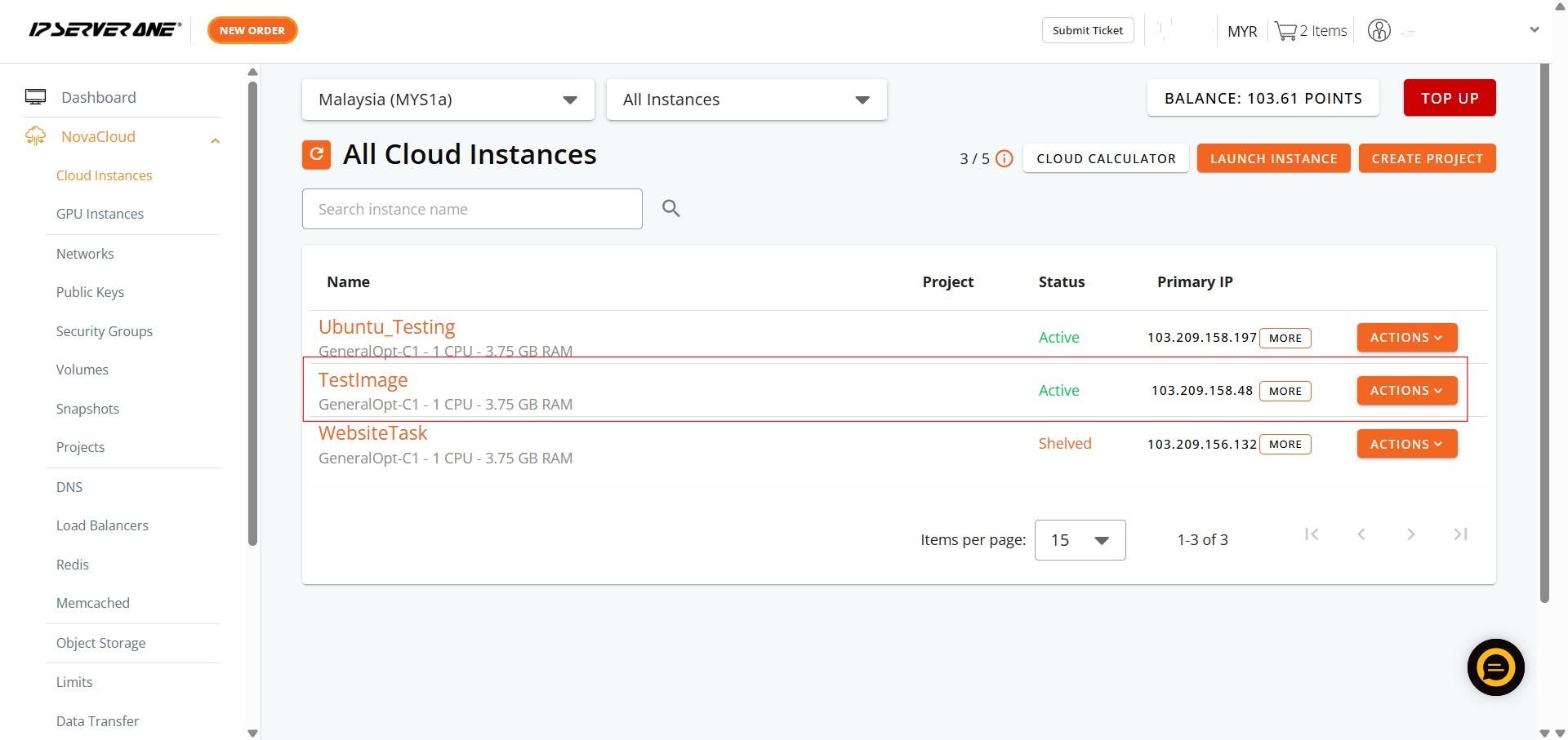 - Once logged in, on the left-hand side menu, locate and click on “NovaCloud” to expand its sub-menu.