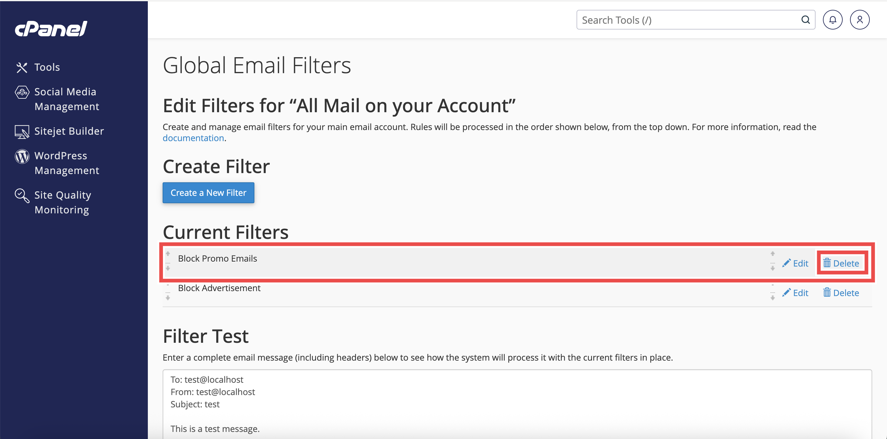 By following these steps, you can easily delete a Global Email Filter in cPanel when it is no longer needed. Regularly reviewing and cleaning up filters helps maintain effective email management.