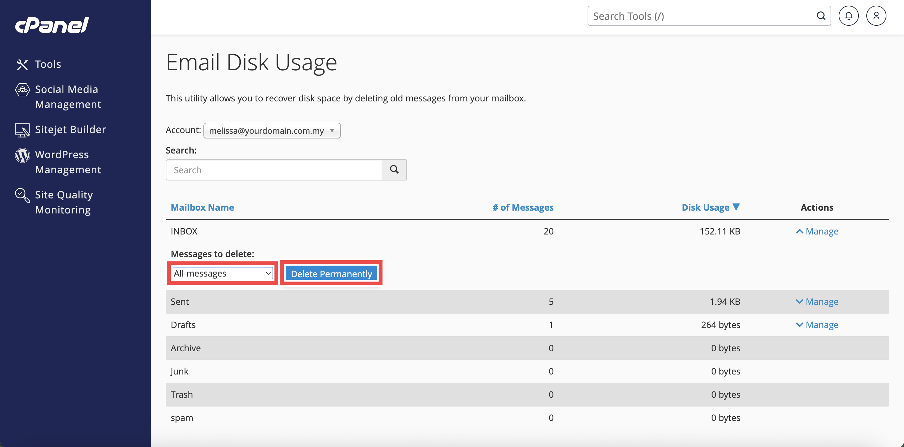 How to Delete All Emails from Inbox Folder using Email Disk Usage in cPanel