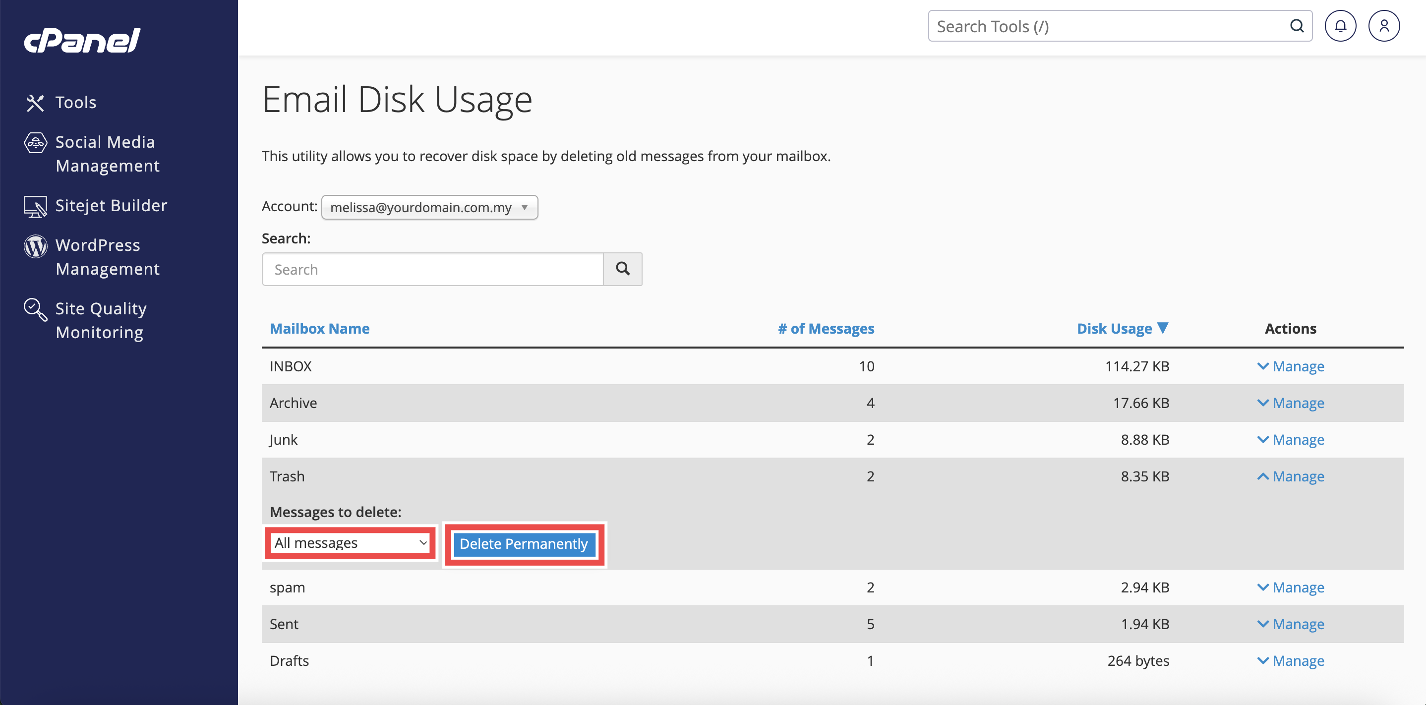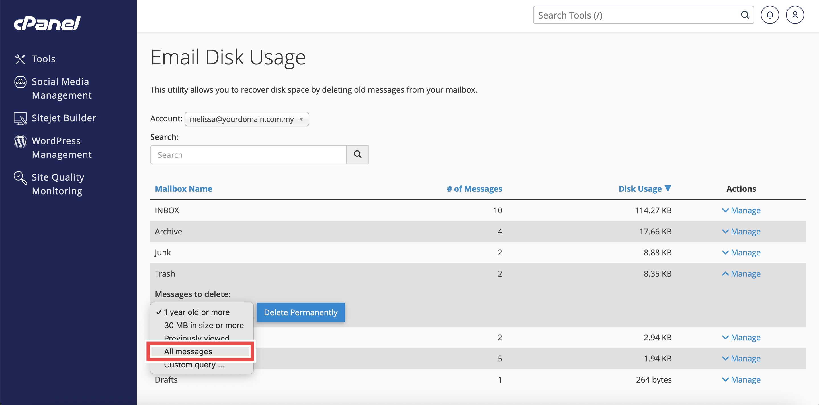 How to Delete All Emails from Trash Folder using Email Disk Usage in cPanel
