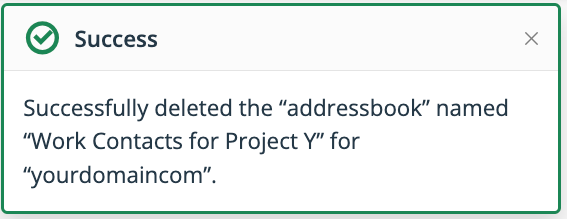 - Check the Calendars and Contacts Management table to ensure the deleted address book no longer appears in the table.