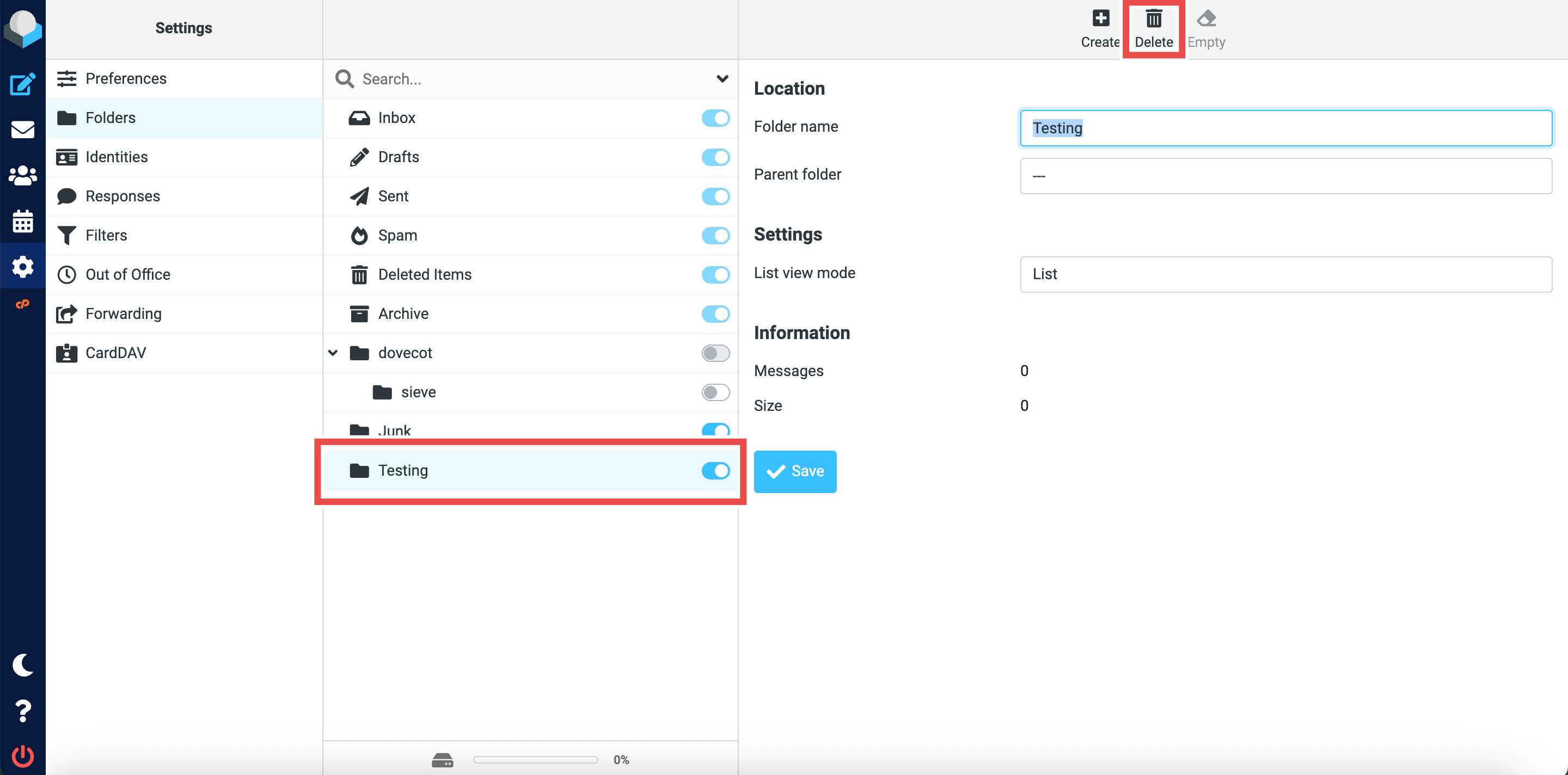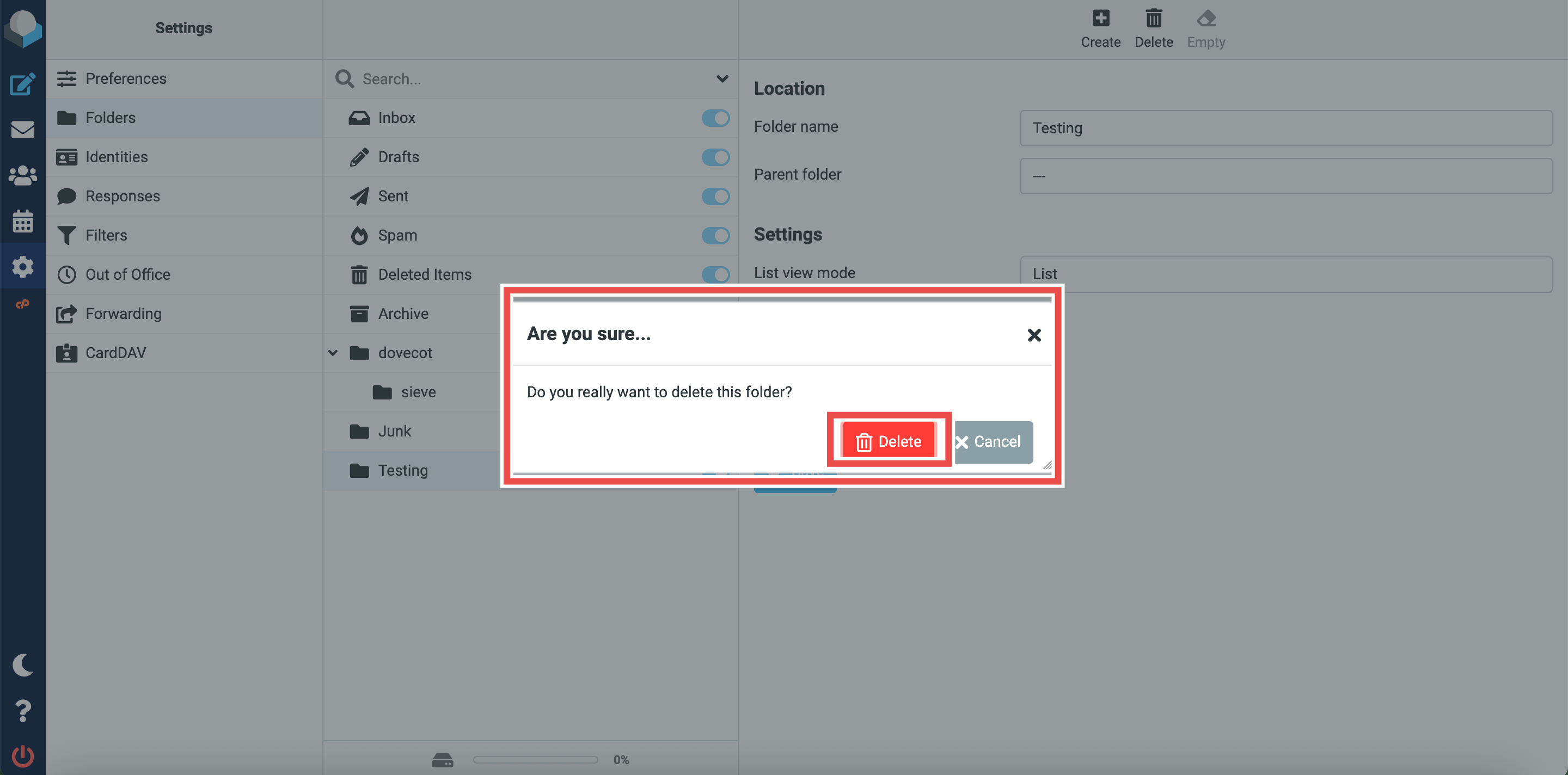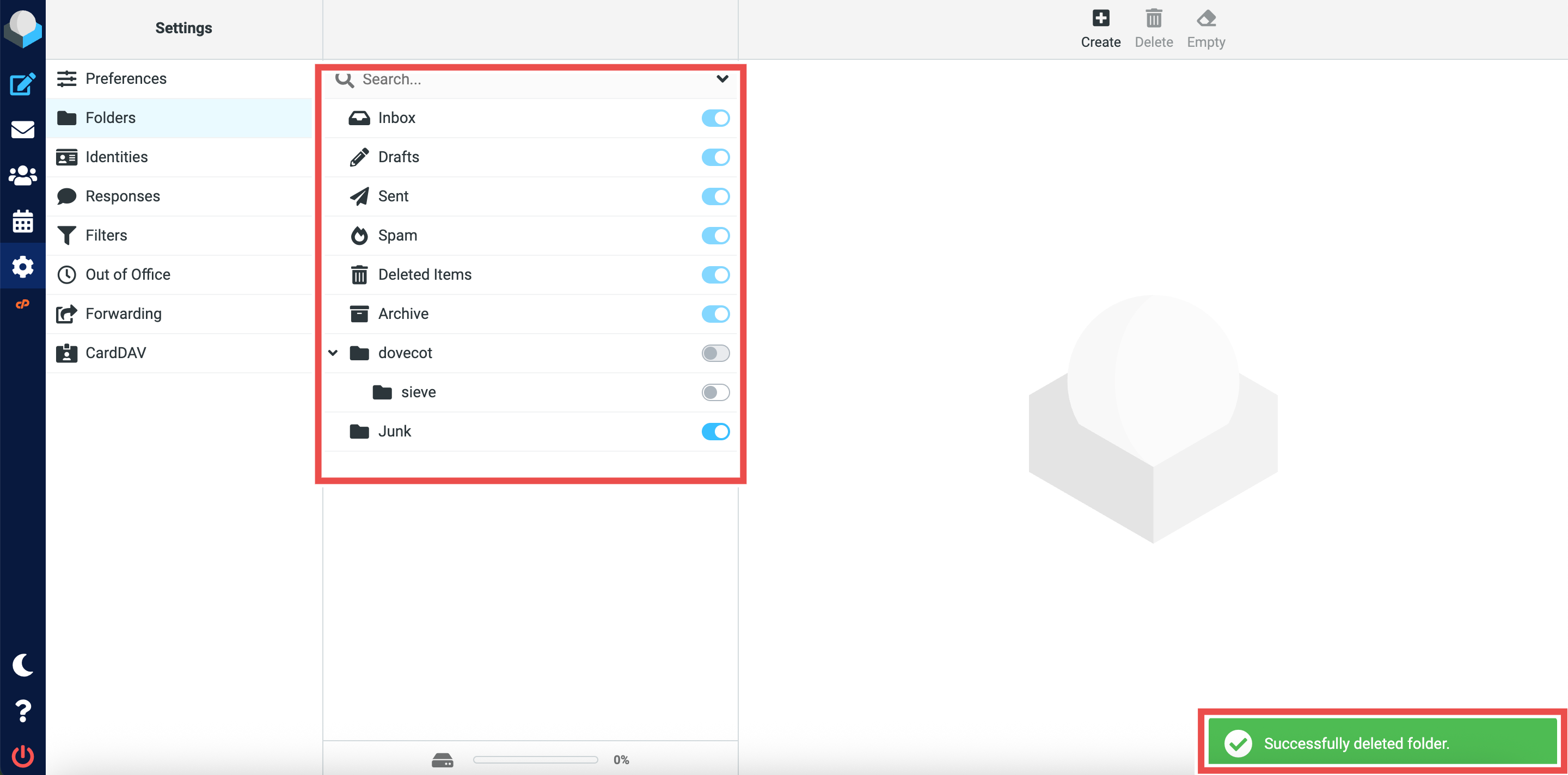 By following these steps, you can delete email folders in Roundcube Webmail to keep your email structure clean and organized. Be careful when deleting folders as this action will permanently remove the folder and all emails within it. Always make sure you have backed up or moved important emails before deletion.