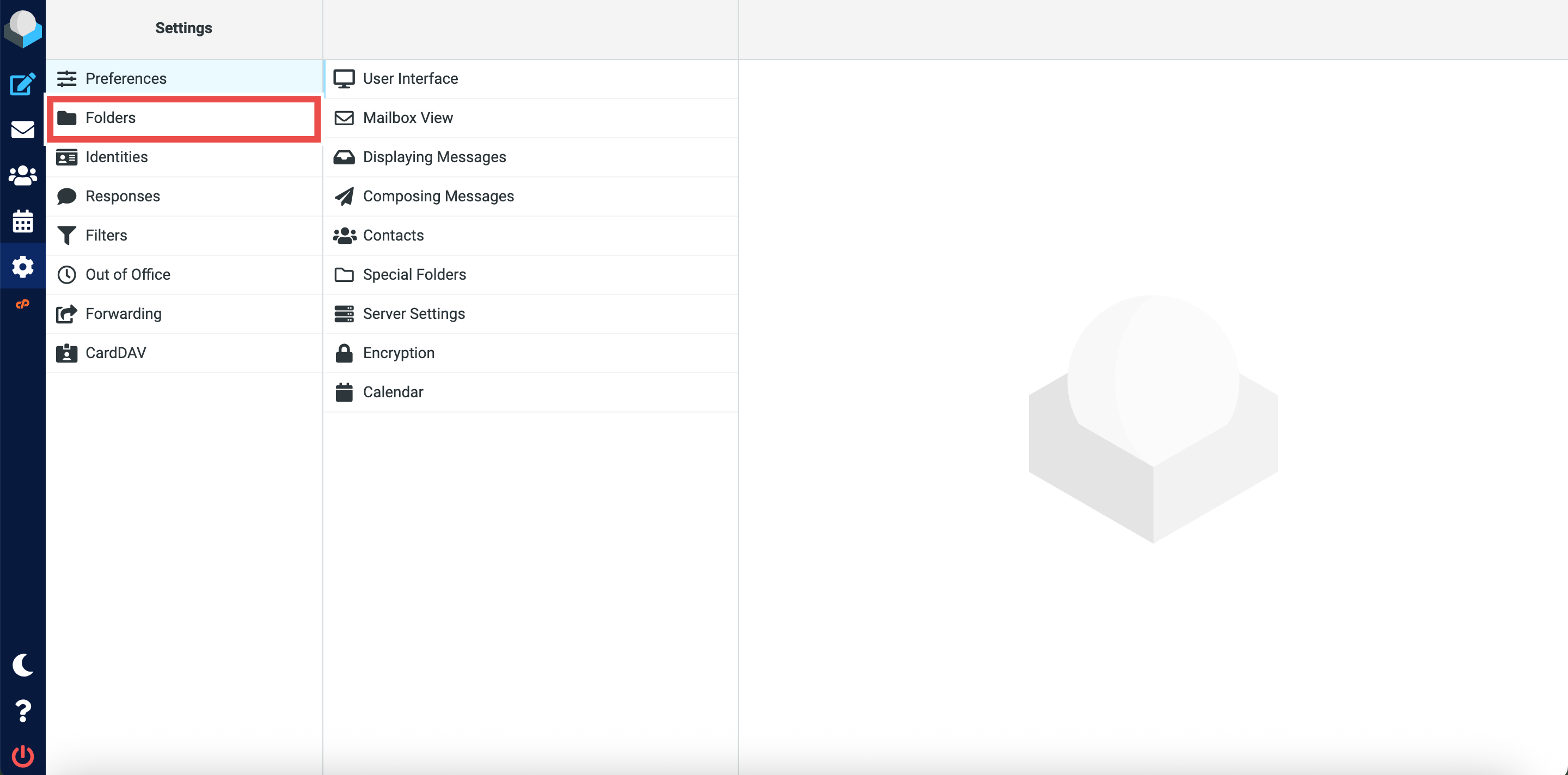 - In Roundcube Webmail, click the gear icon (Settings) in the left side of the page.