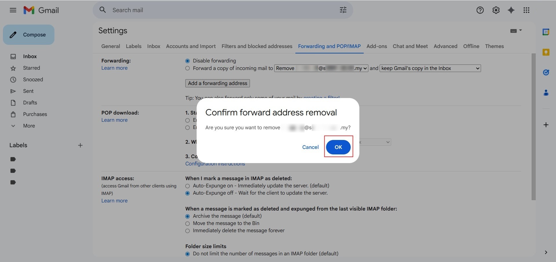 Located under the “Forwarding and POP/IMAP” tab in your account settings, this administrative process ensures that sensitive data regarding your virtual data centers is only relayed to active, monitored mailboxes. By removing outdated addresses, you streamline your account’s configuration and reduce the risk of critical information being sent to an abandoned destination, allowing you to focus on the active management of your IP ServerOne infrastructure.