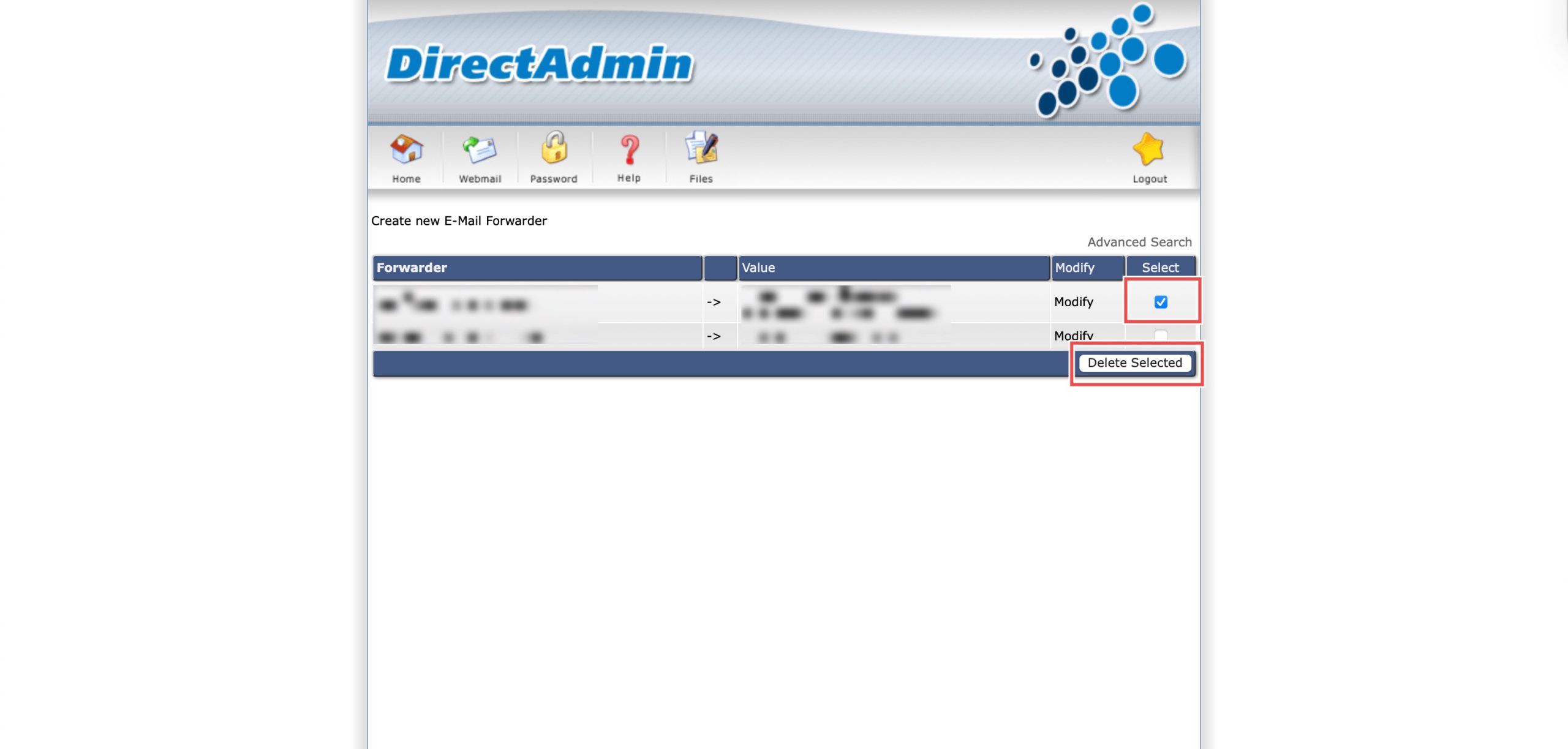 How to Delete Forwarder in DirectAdmin (Enhanced Skin)