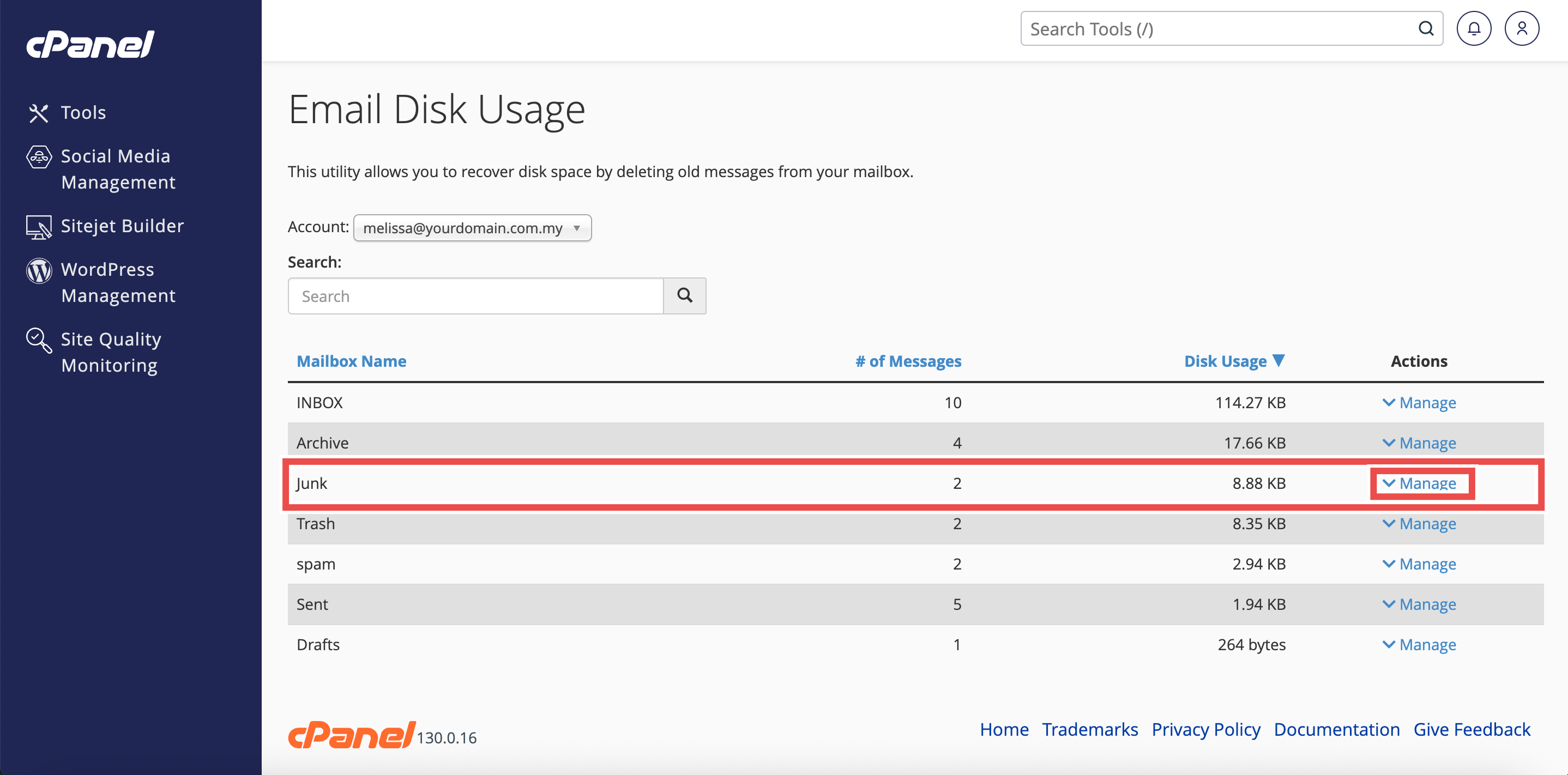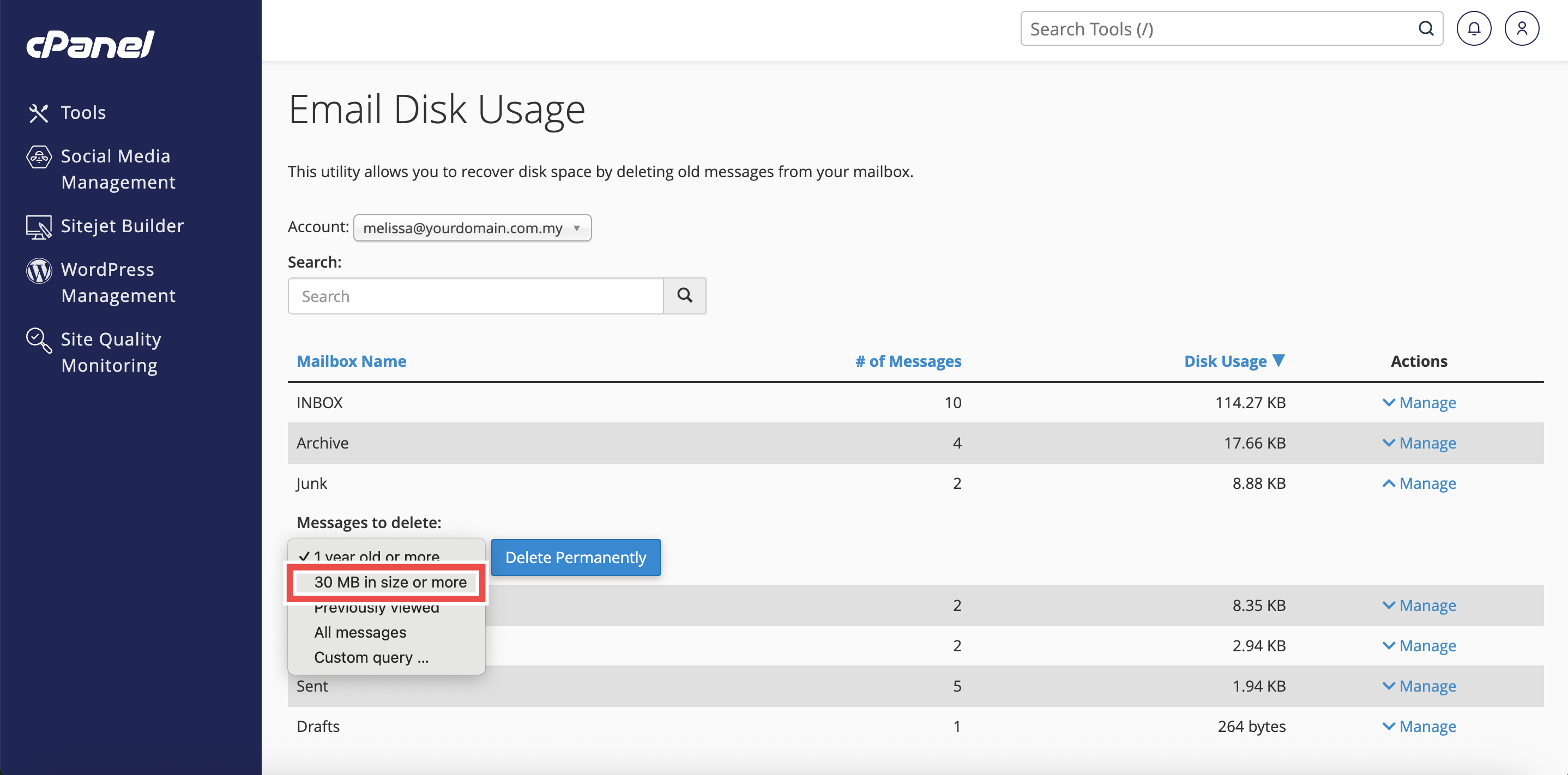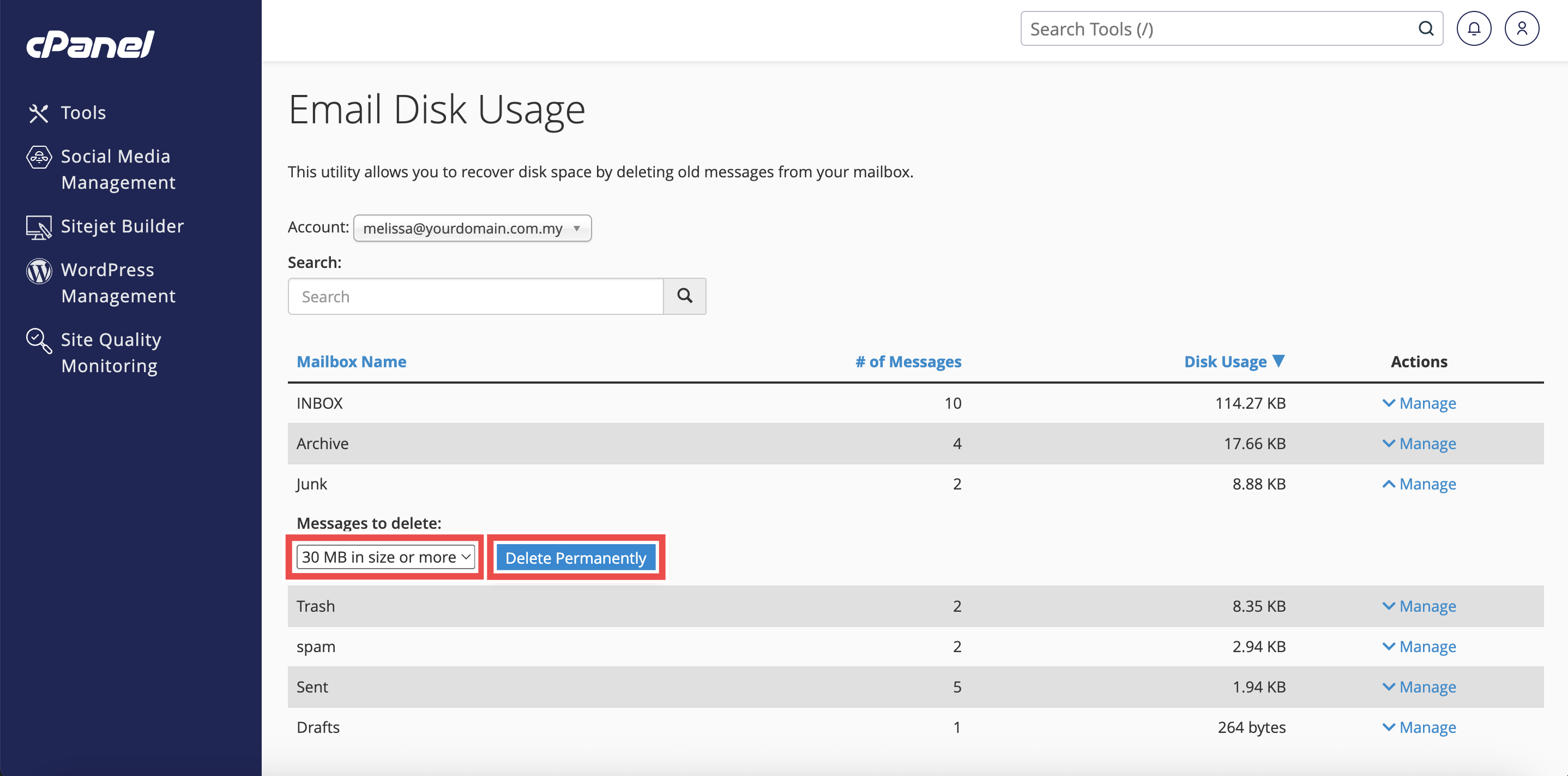 How to Delete Large Emails from Junk Folder using Email Disk Usage in cPanel