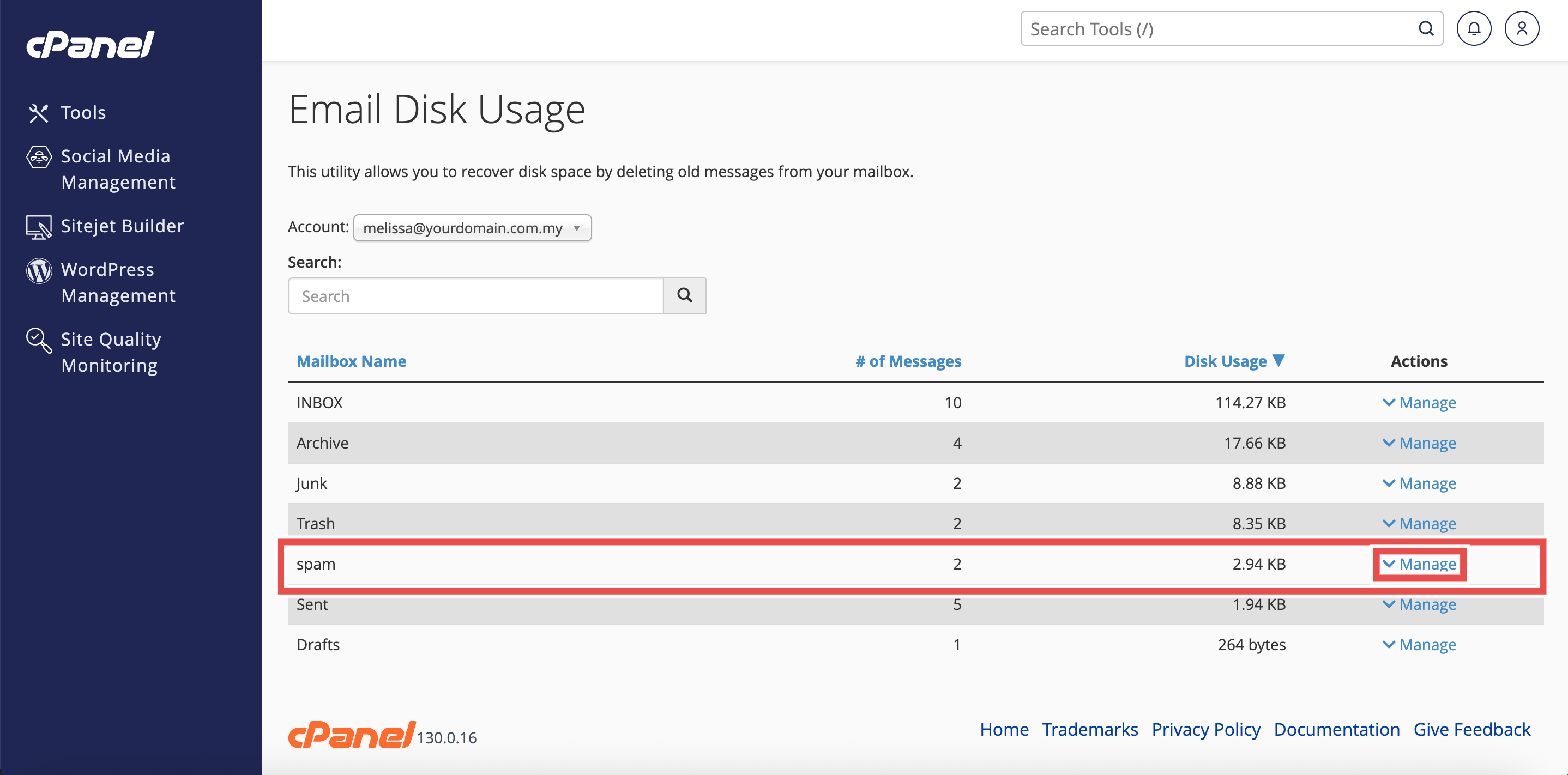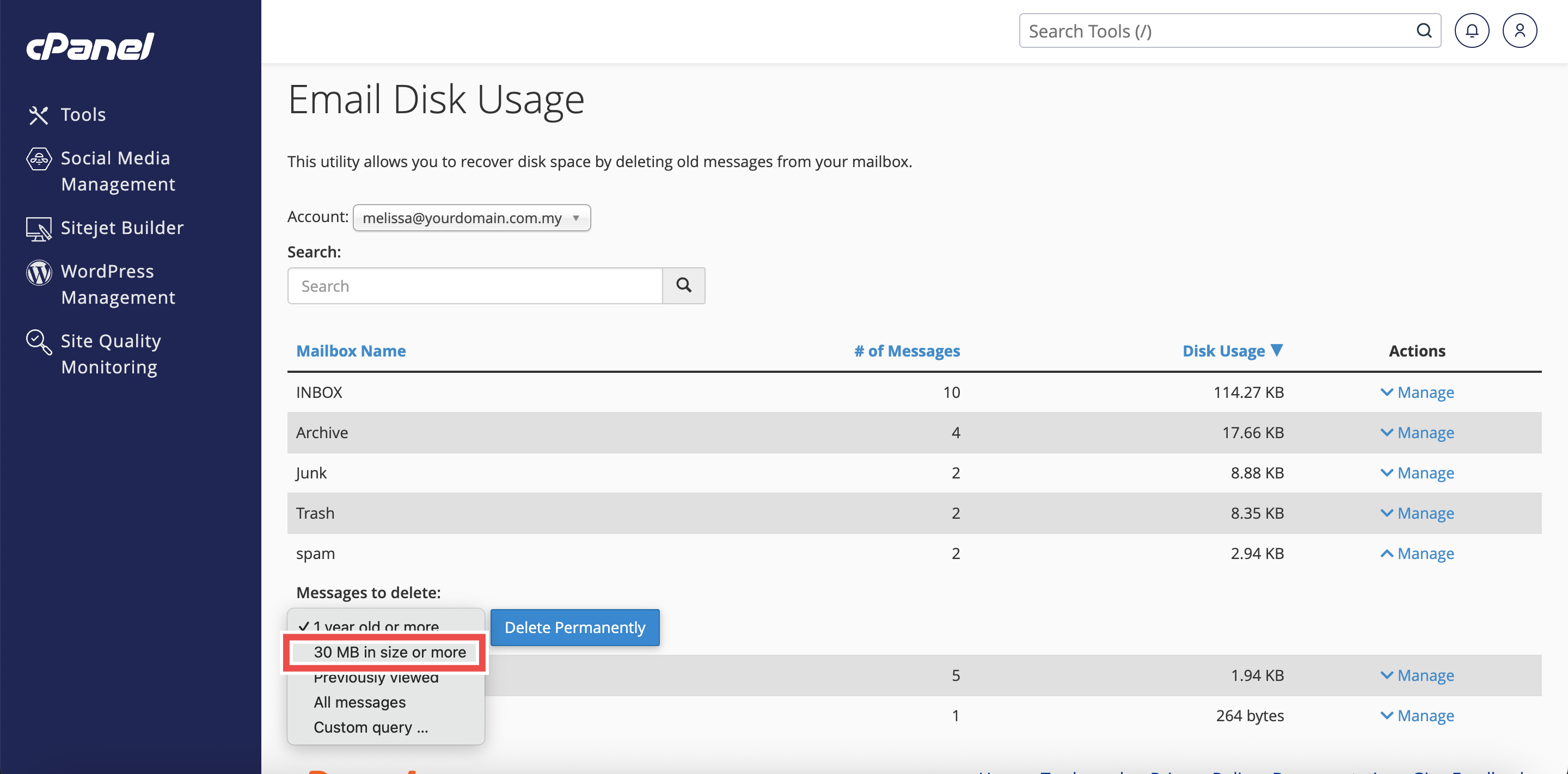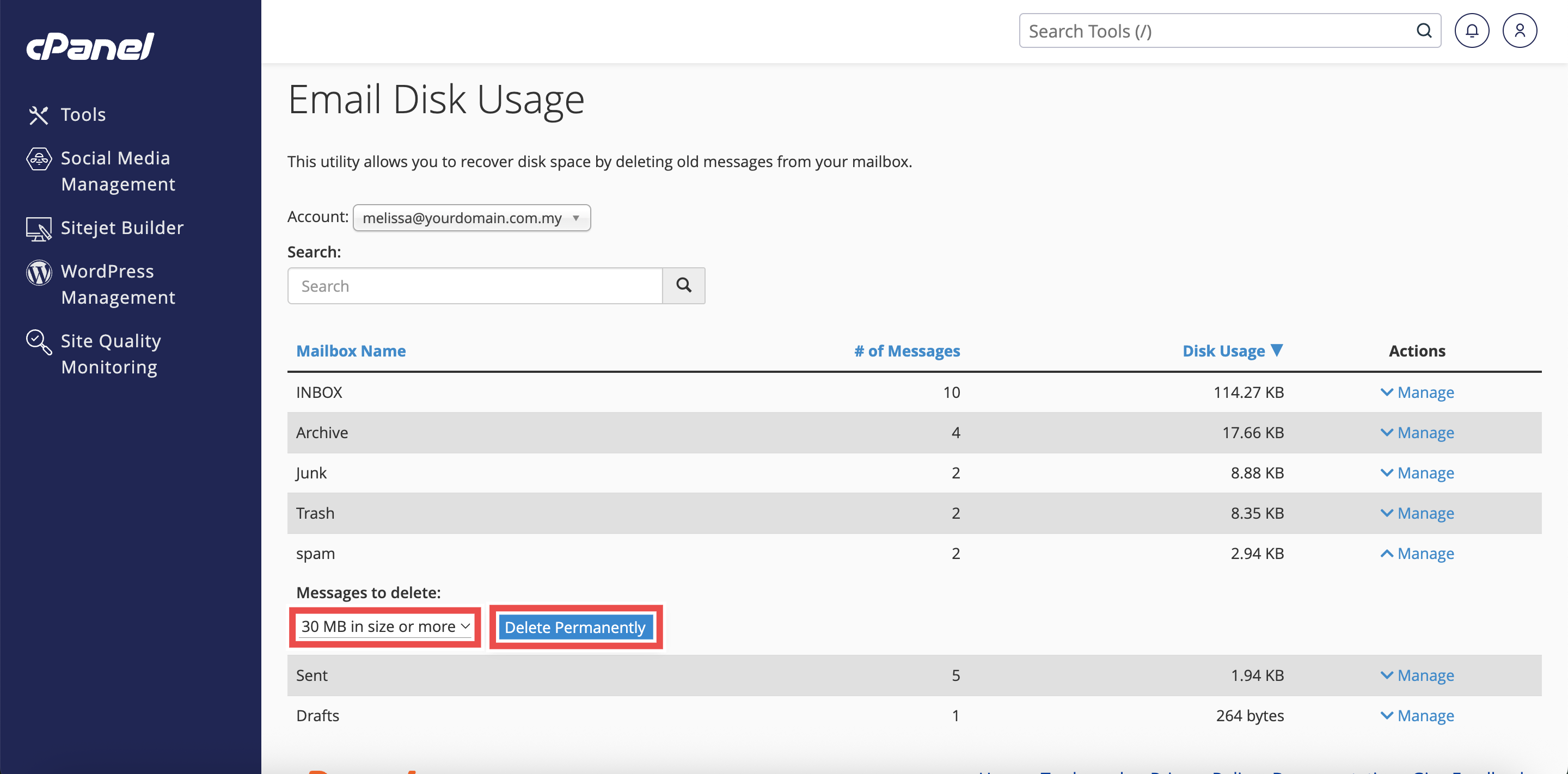 How to Delete Large Emails from Spam Folder using Email Disk Usage in cPanel