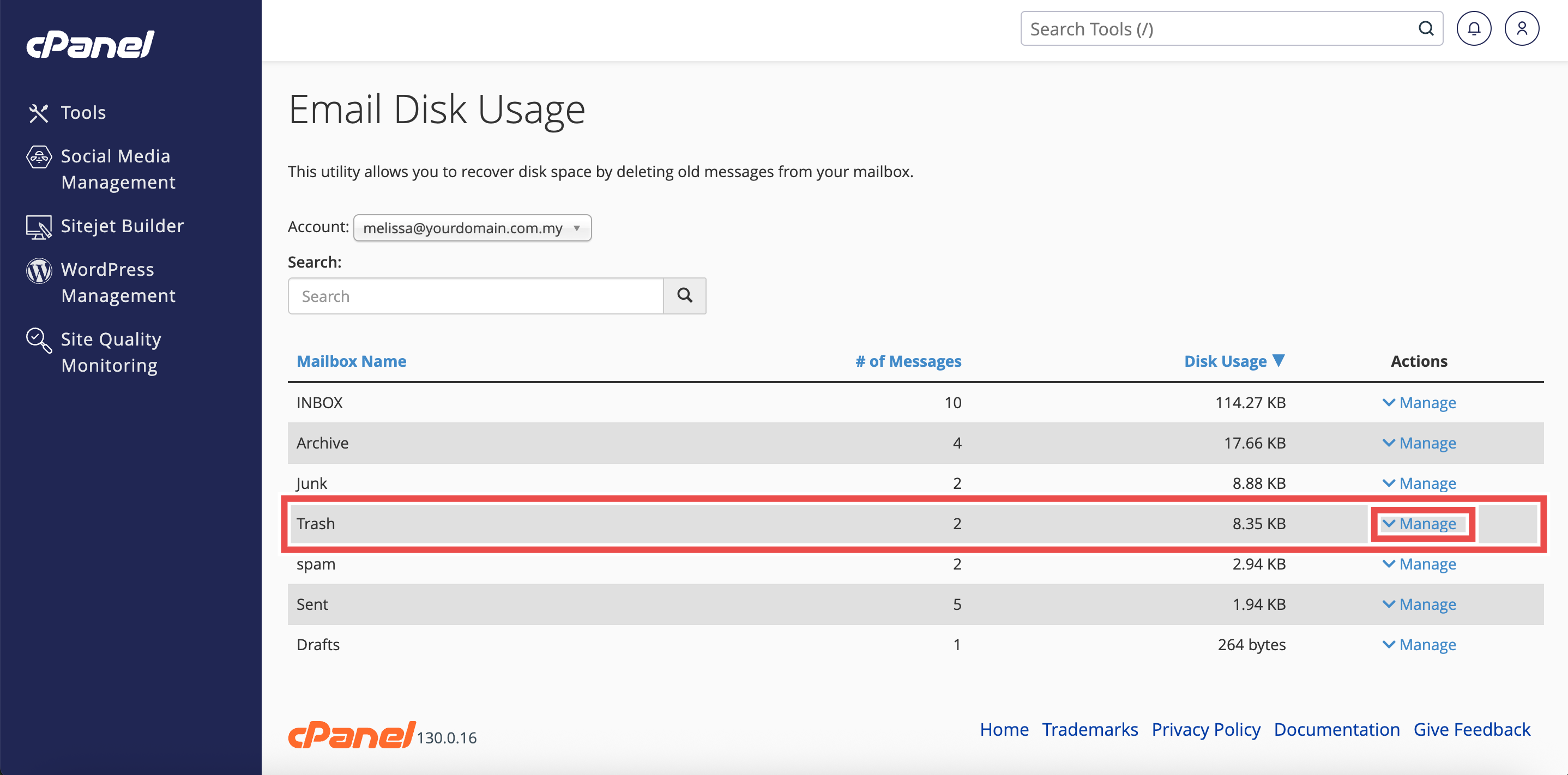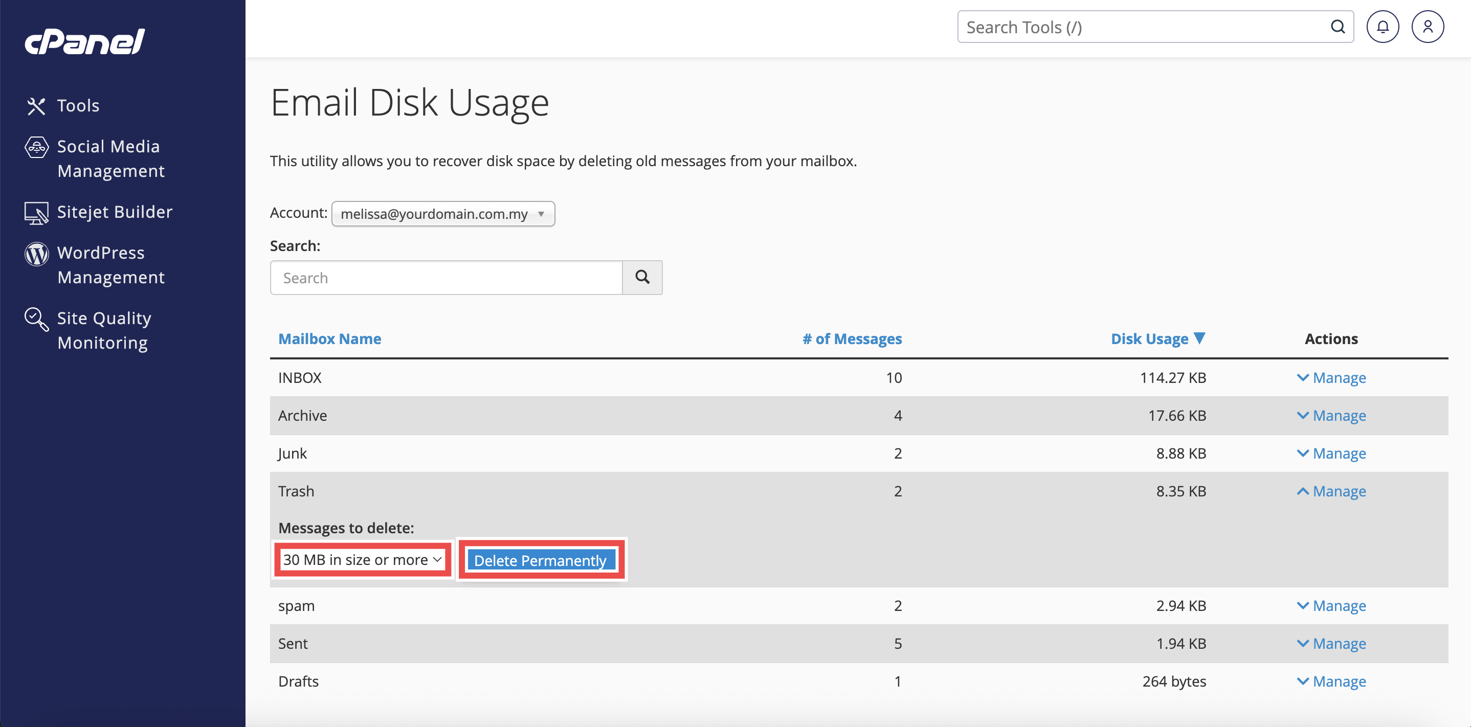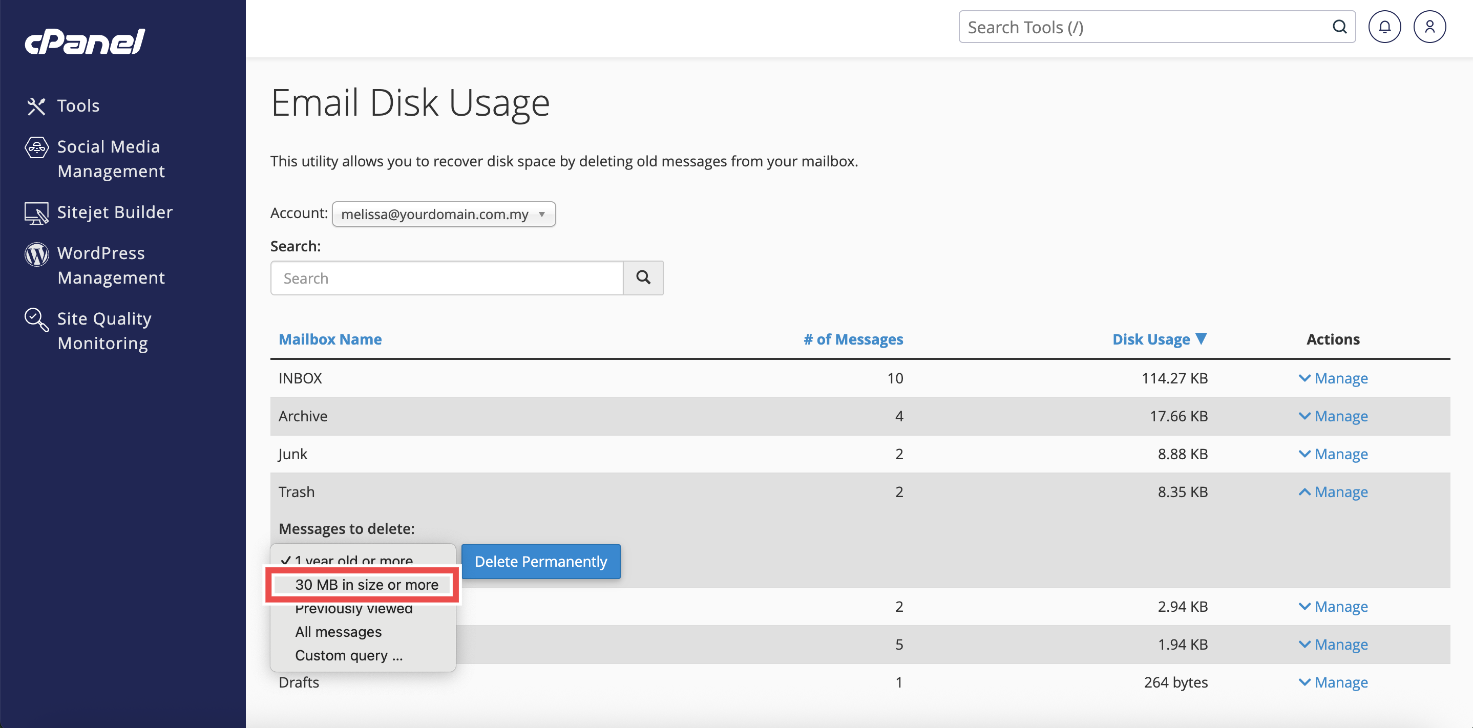 How to Delete Large Emails from Trash Folder using Email Disk Usage in cPanel