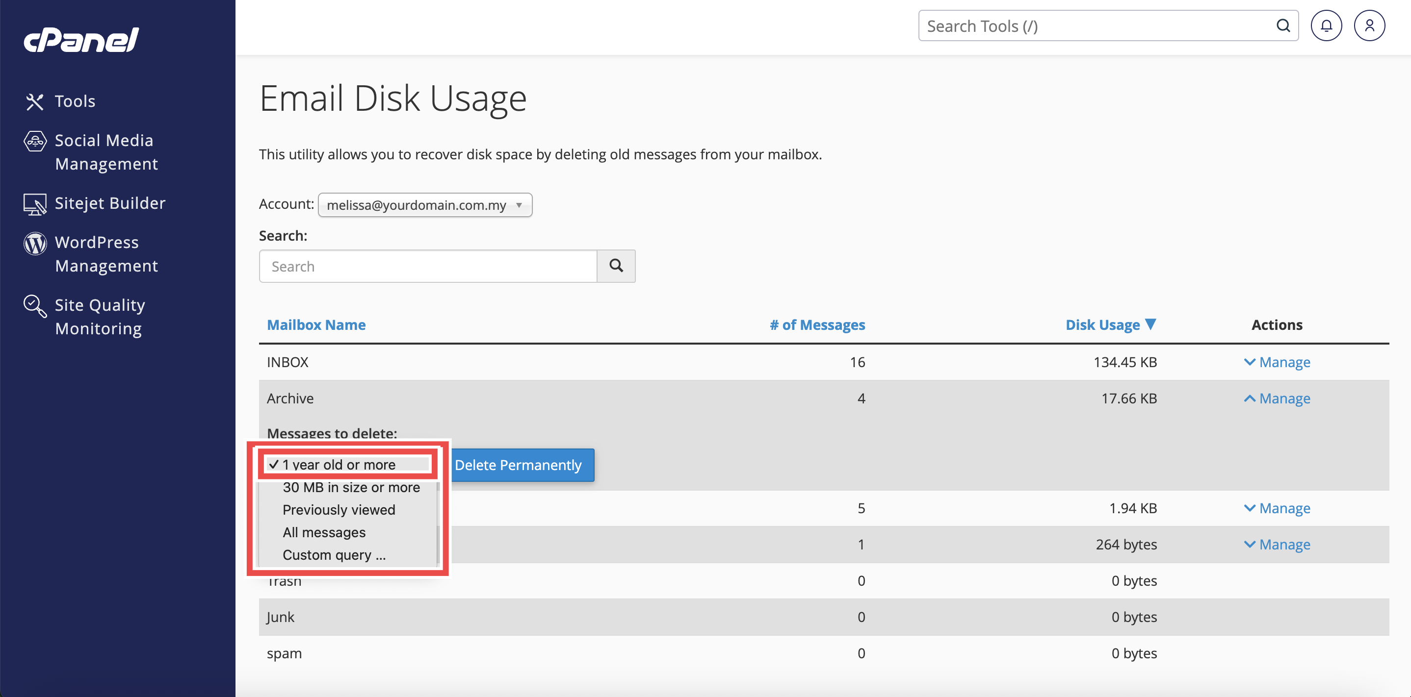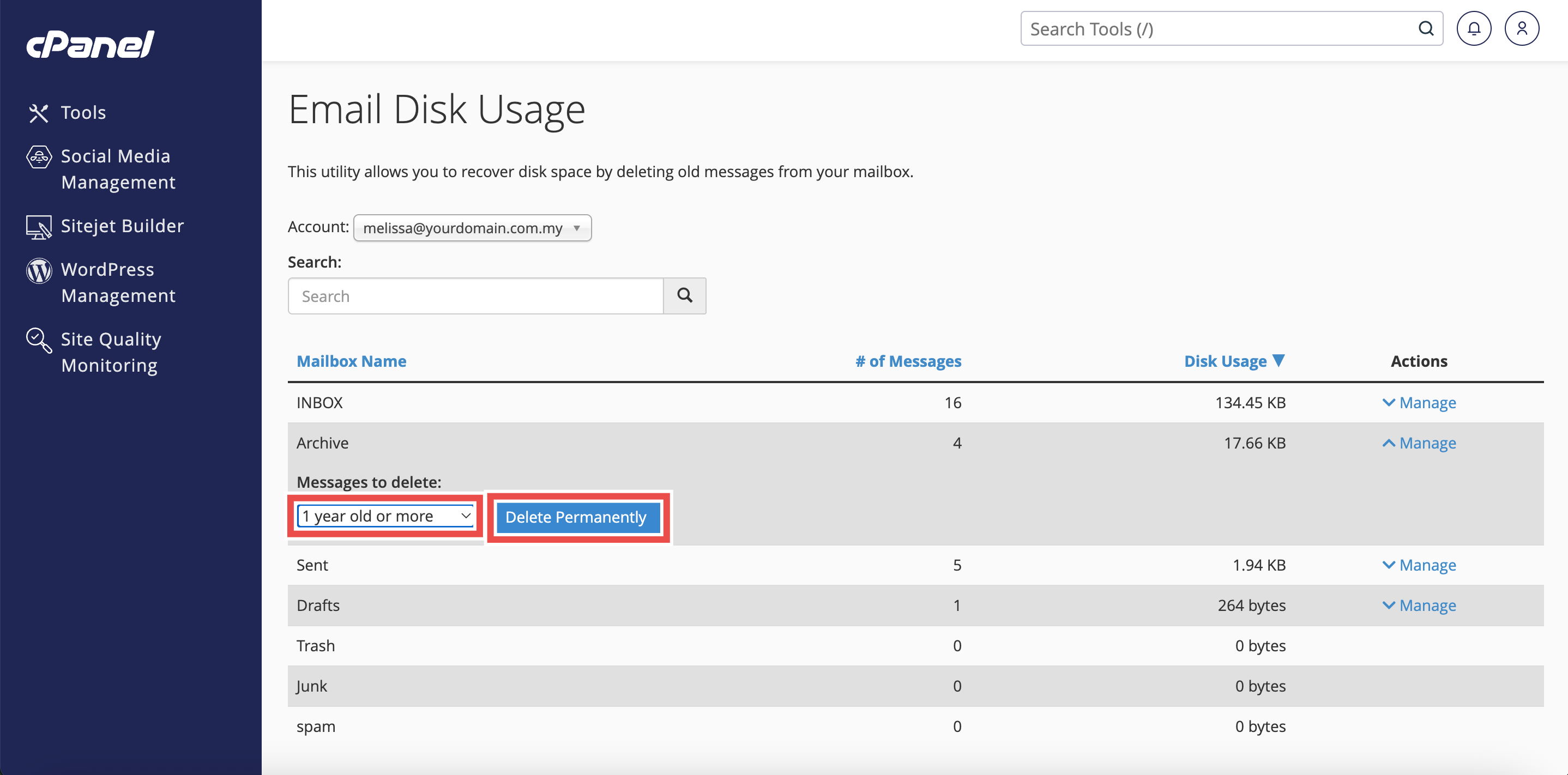 How to Delete Old Emails from Archive Folder using Email Disk Usage in cPanel
