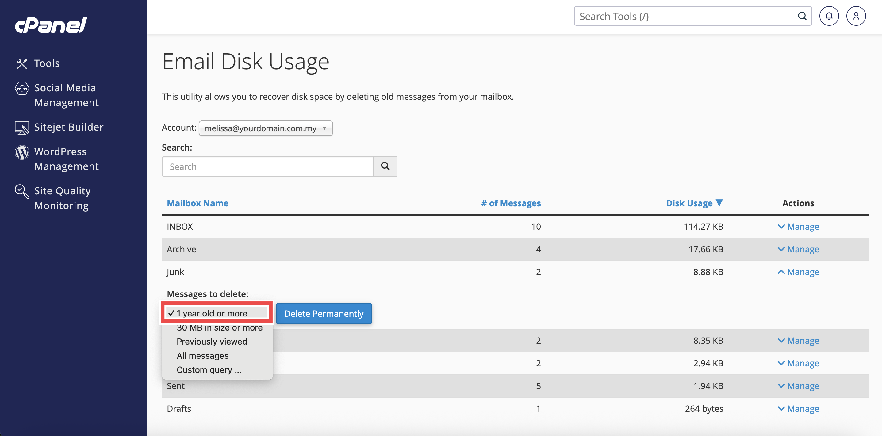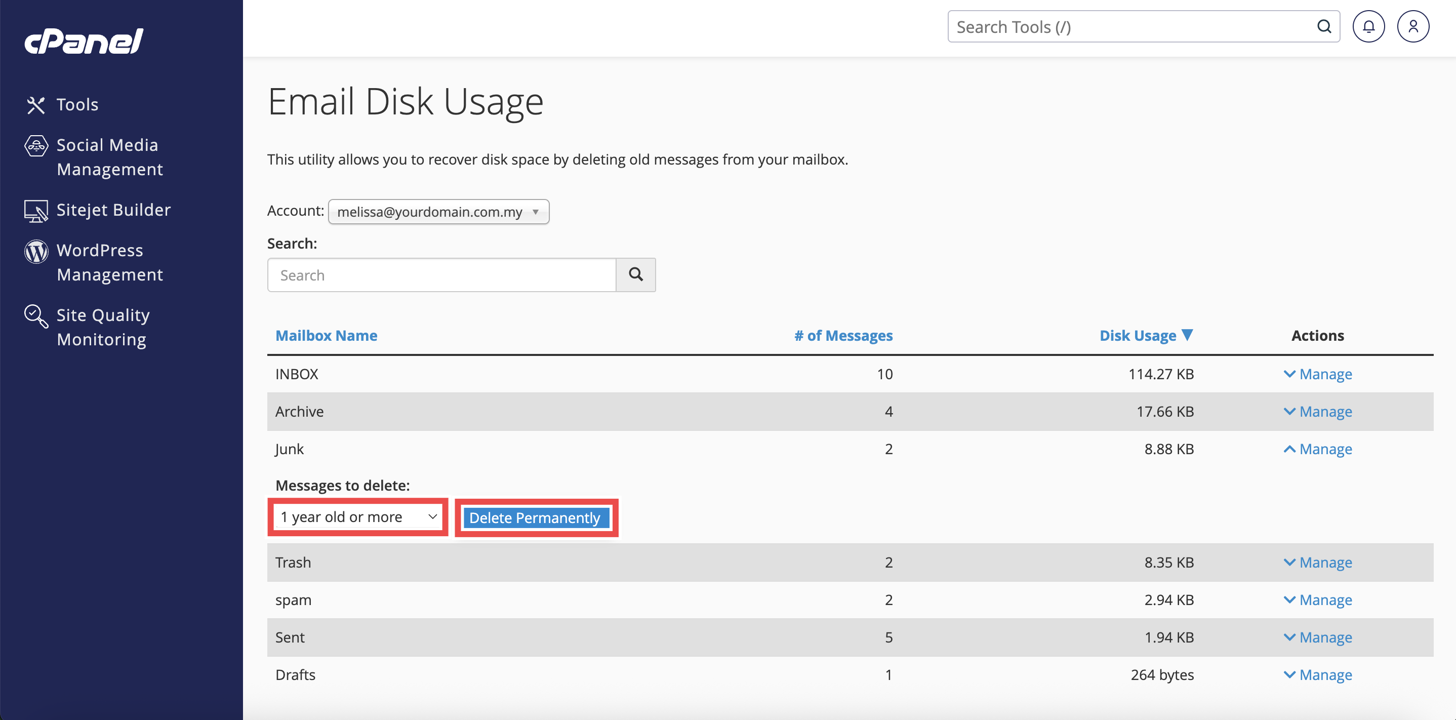 How to Delete Old Emails from Junk Folder using Email Disk Usage in cPanel