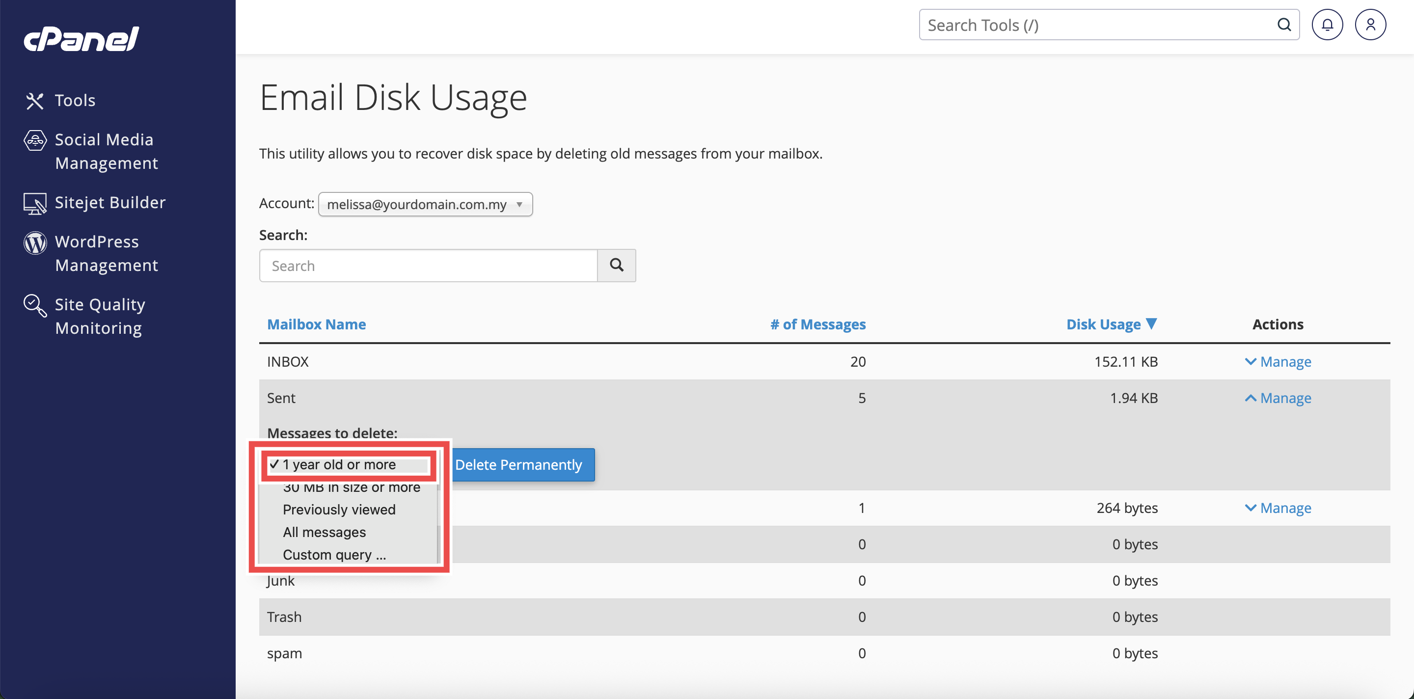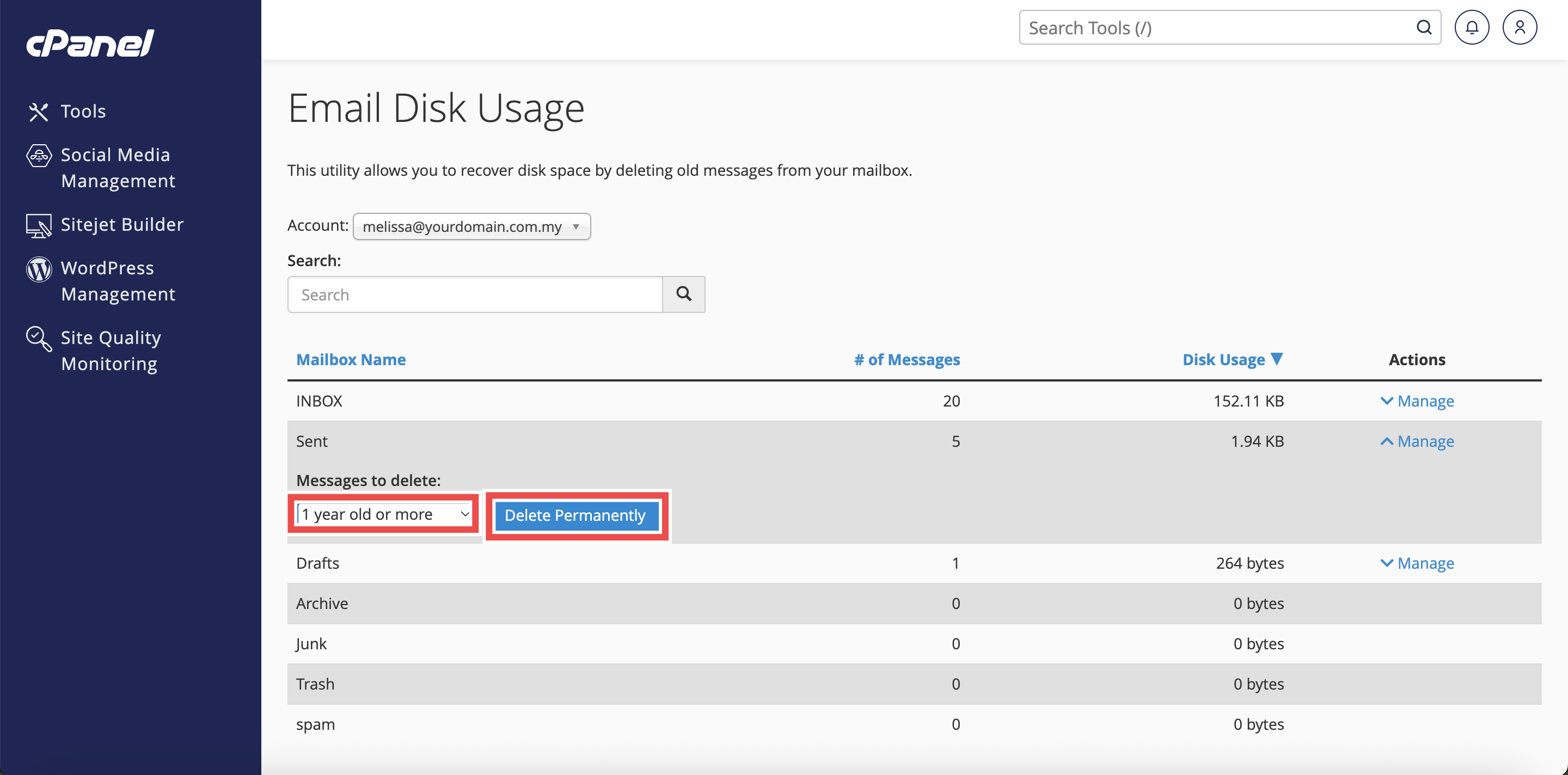 How to Delete Old Emails from Sent Folder using Email Disk Usage in cPanel