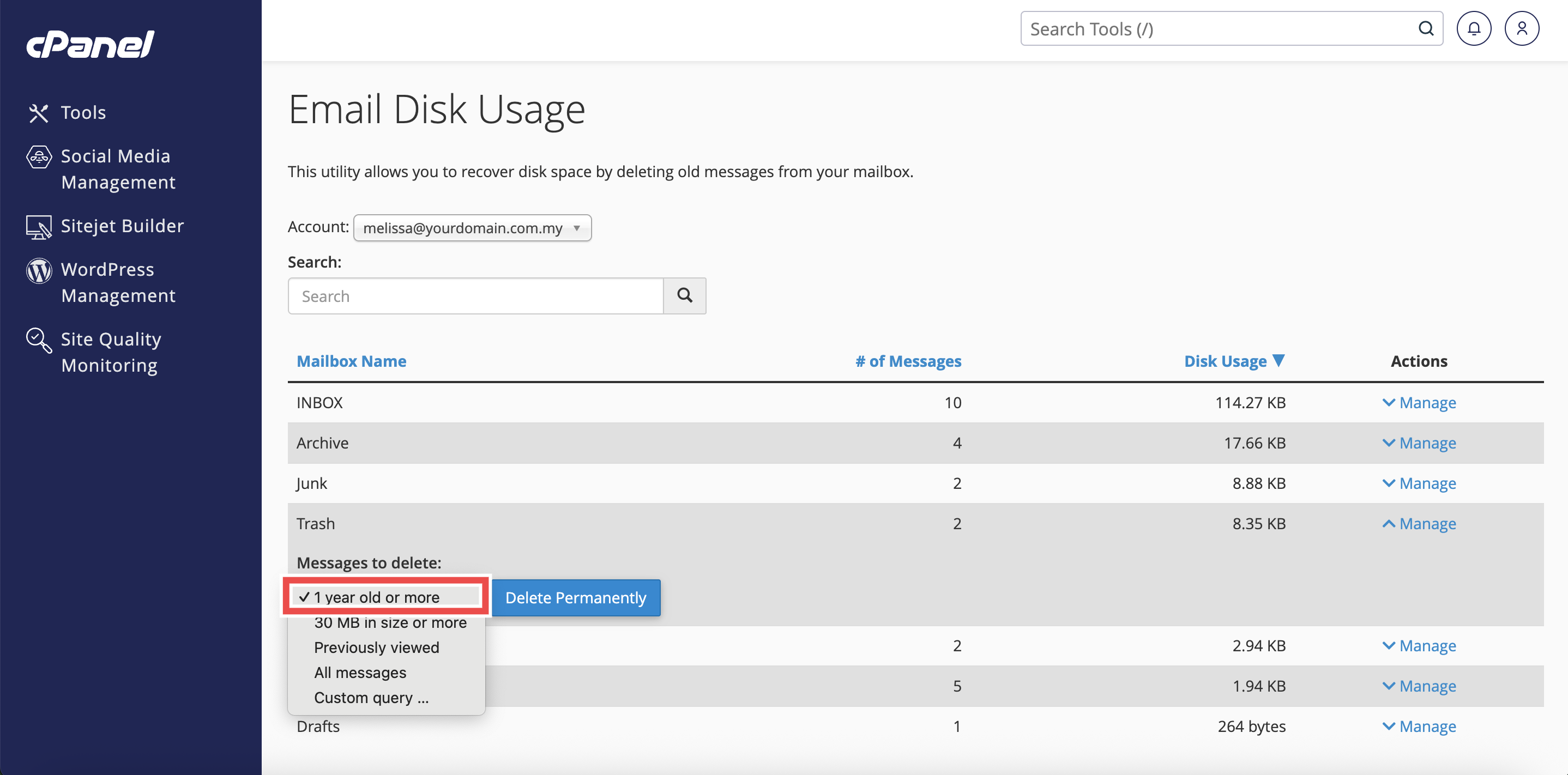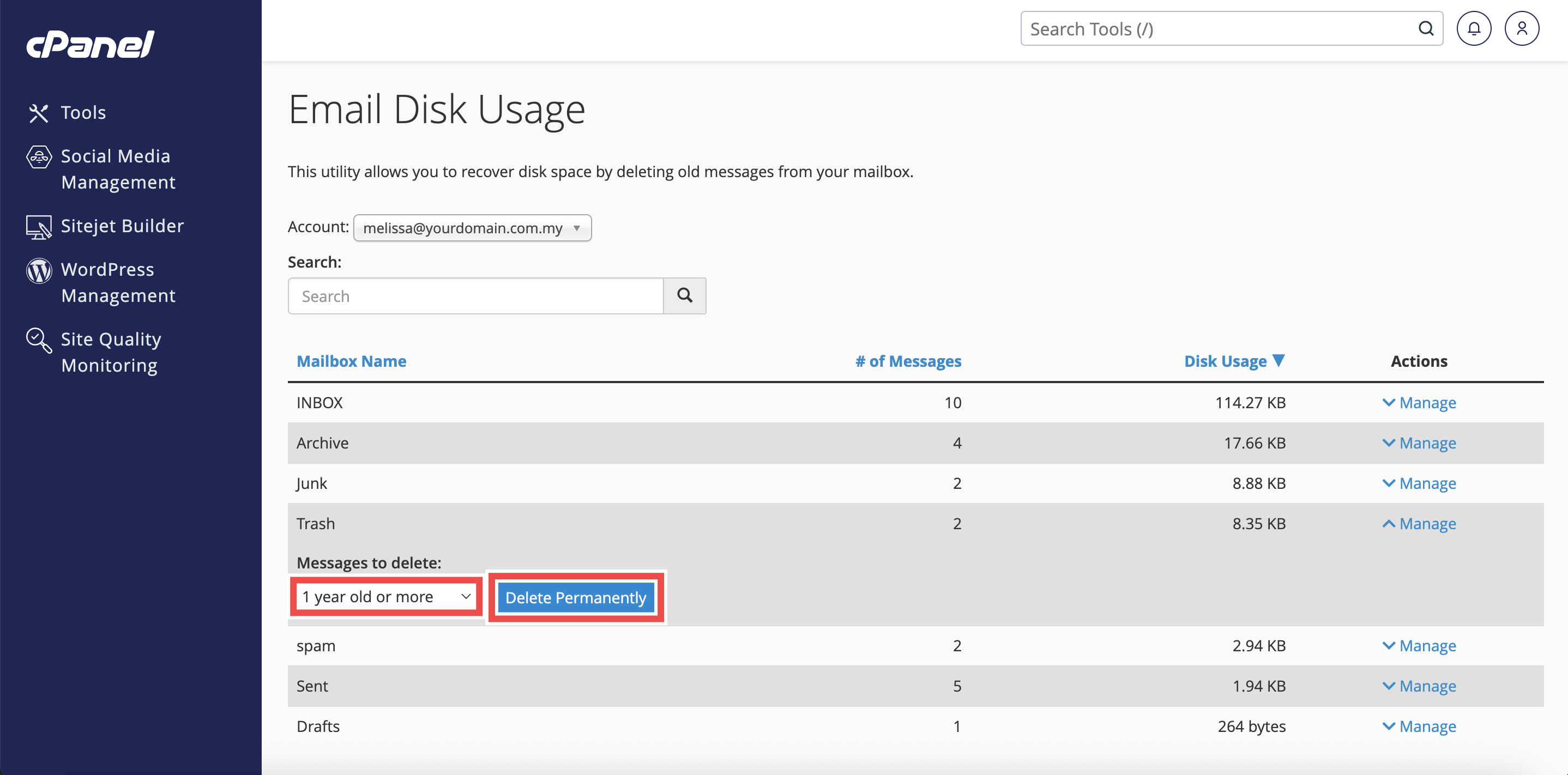 How to Delete Old Emails from Trash Folder using Email Disk Usage in cPanel