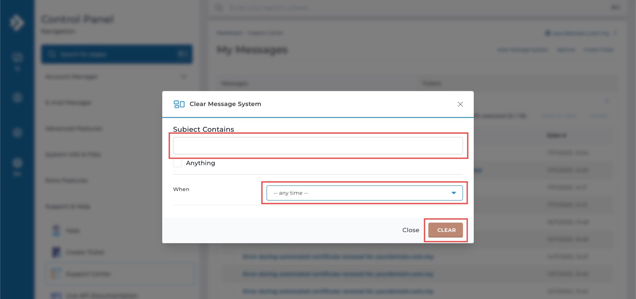 Clearing system messages using deletion criteria through DirectAdmin’s Message System interface is an efficient process for managing large volumes of notifications. Using subject-based or date-based filters allows targeted removal of specific message types or outdated alerts, helping maintain an organized and relevant message inbox without tedious manual selection.